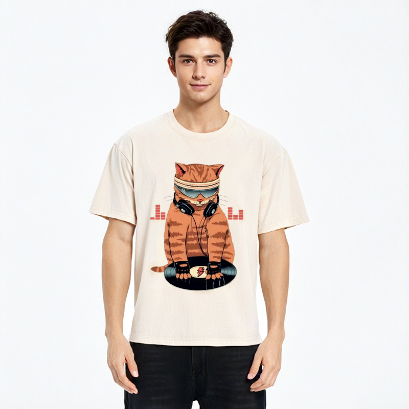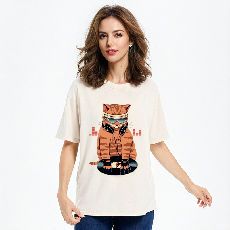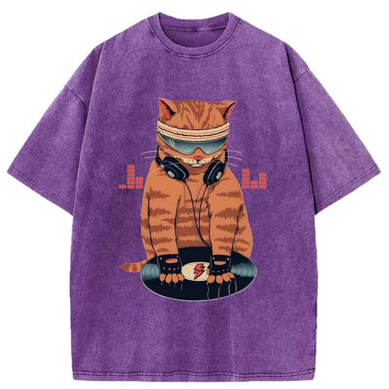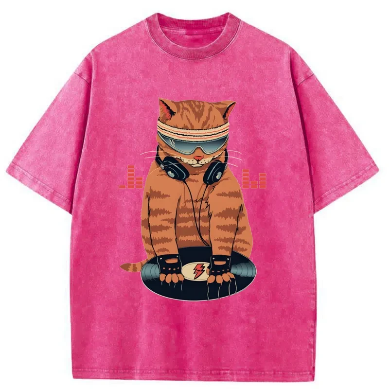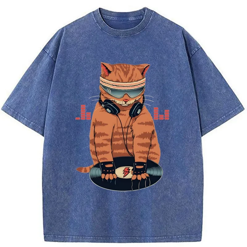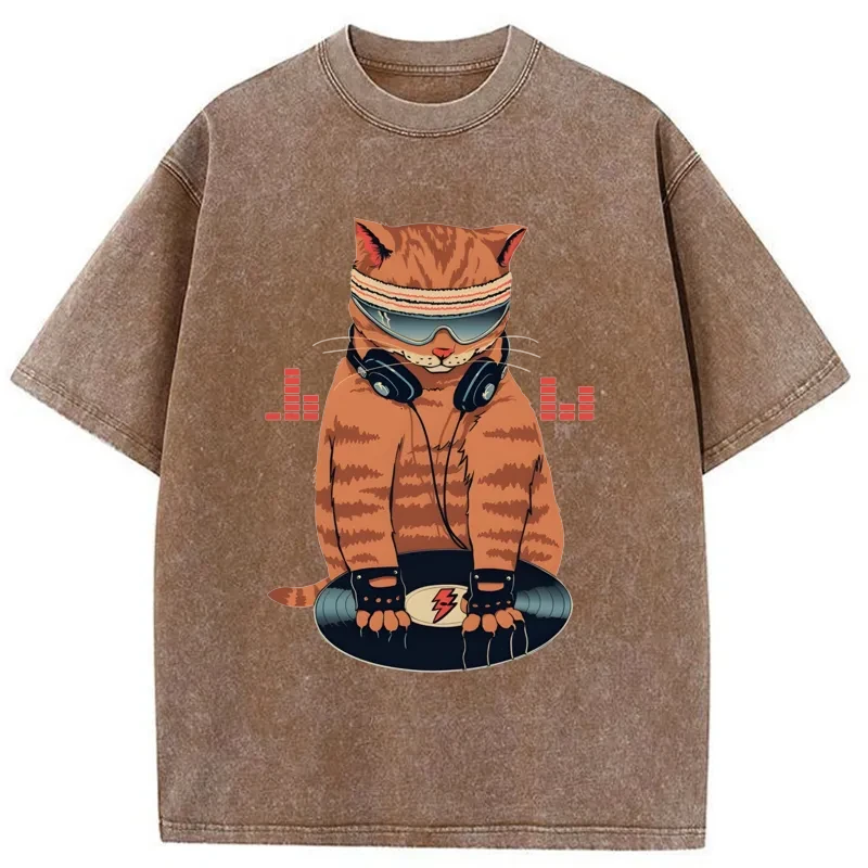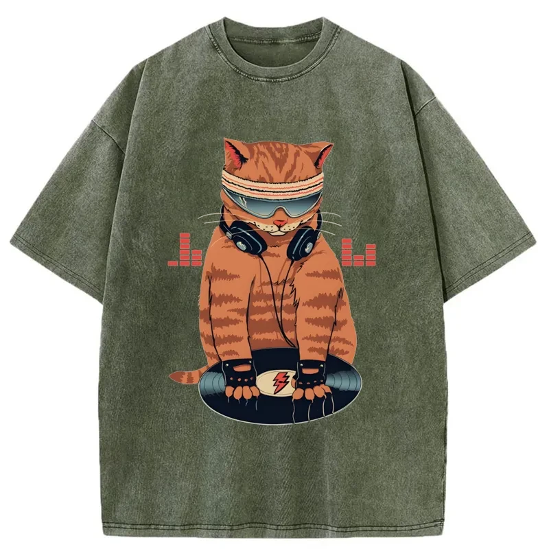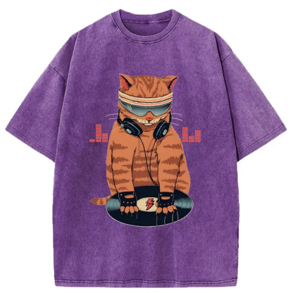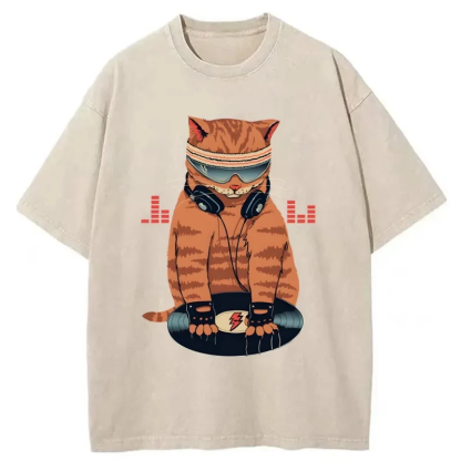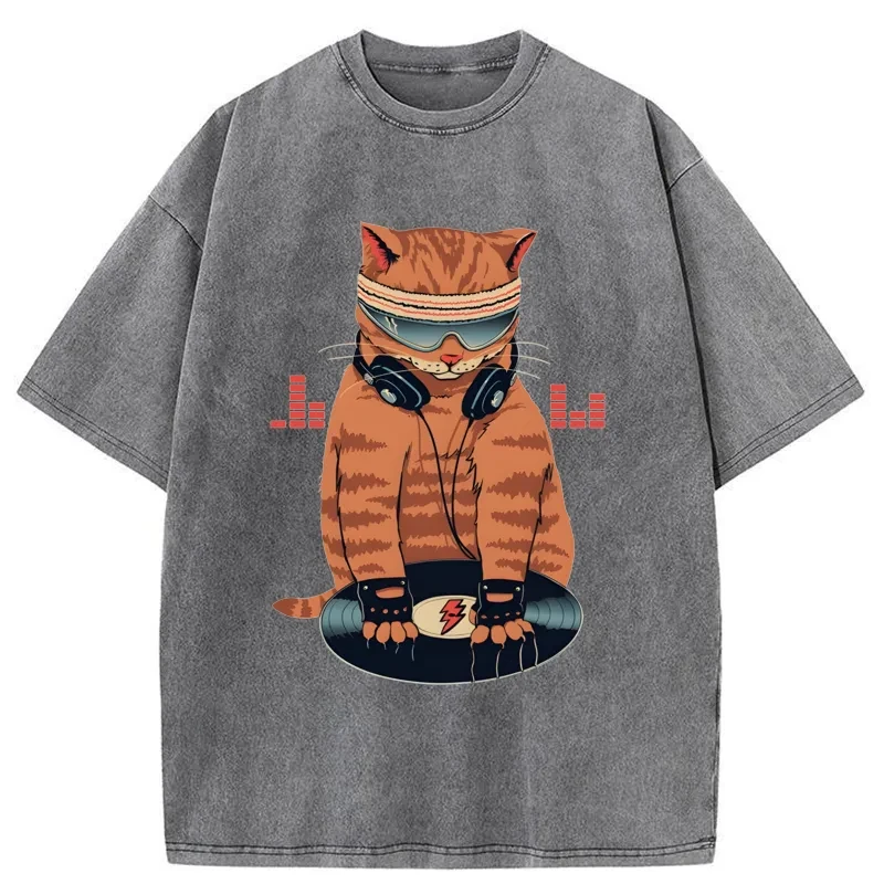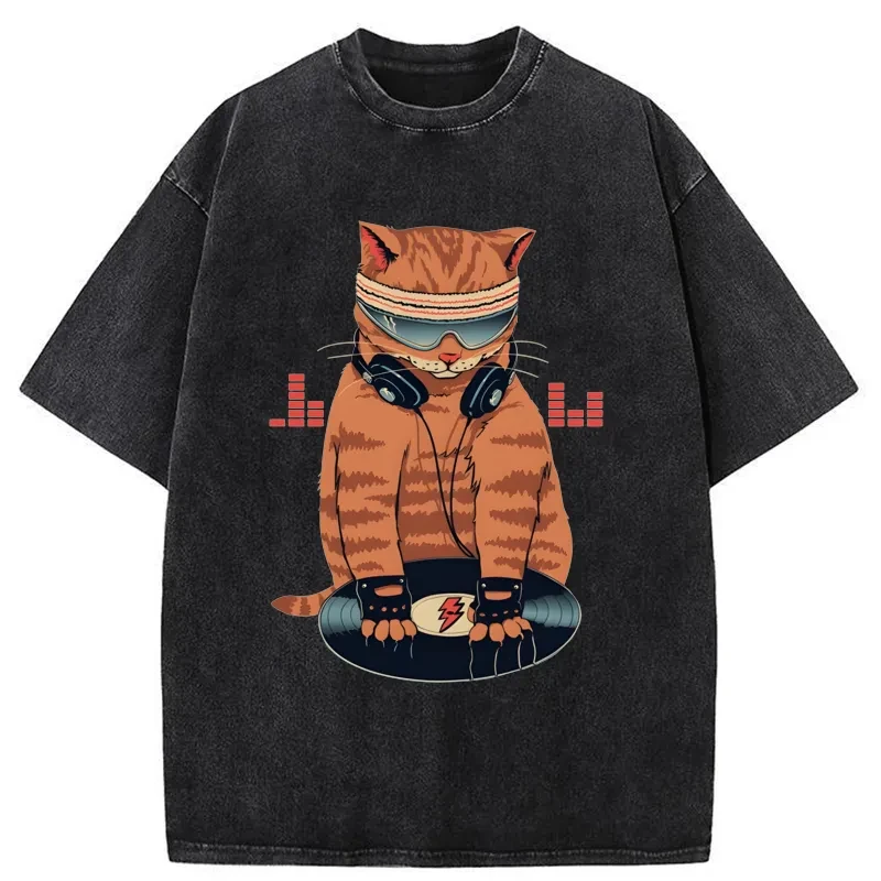 Tokyo-Assassin Funny Cat DJ Washed T-Shirt