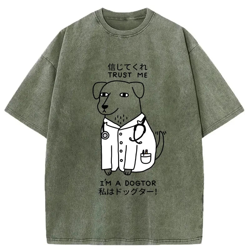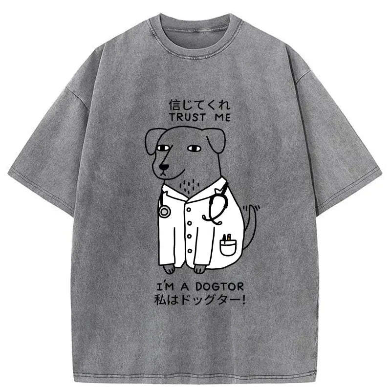 Tokyo-Assassin I'm A Dogtor Funny Japan Washed T-Shirt