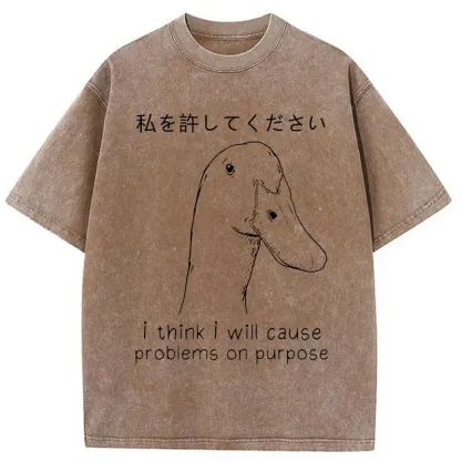 Tokyo-Assassin Stupid Goose Funny Washed T-Shirt