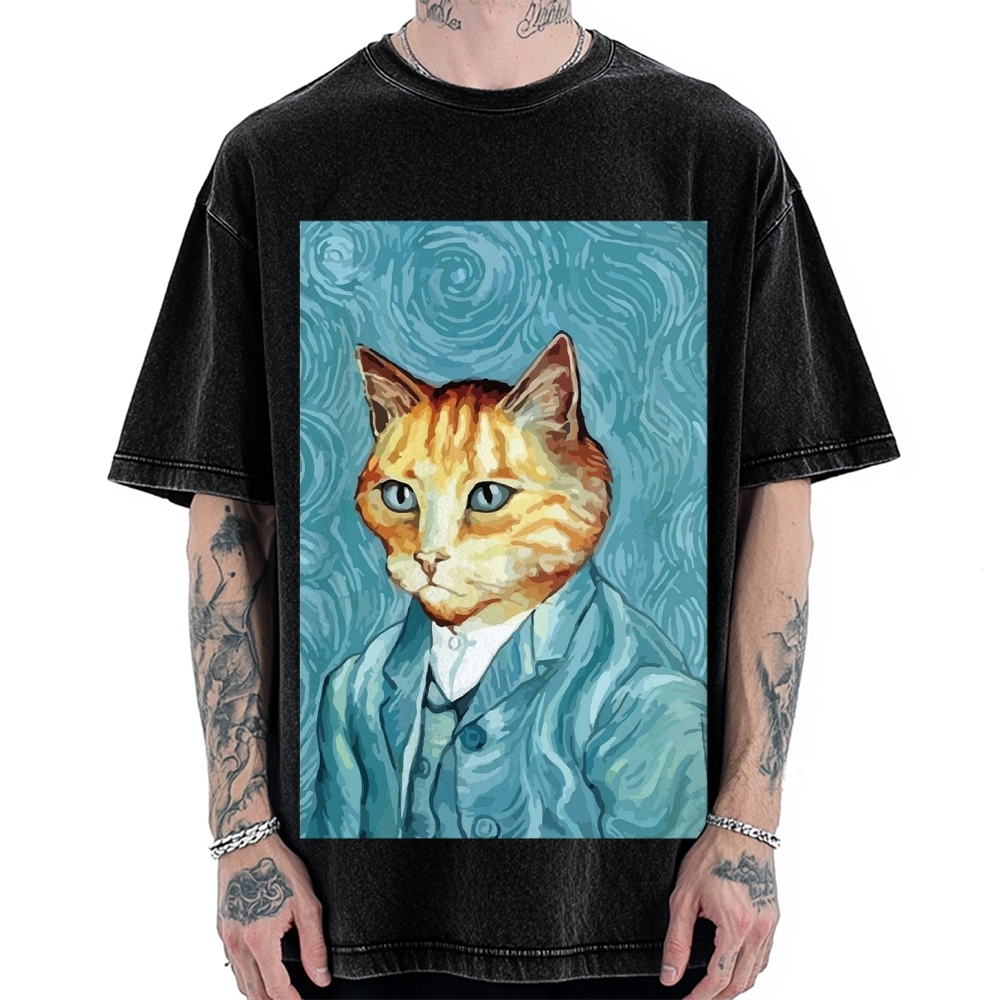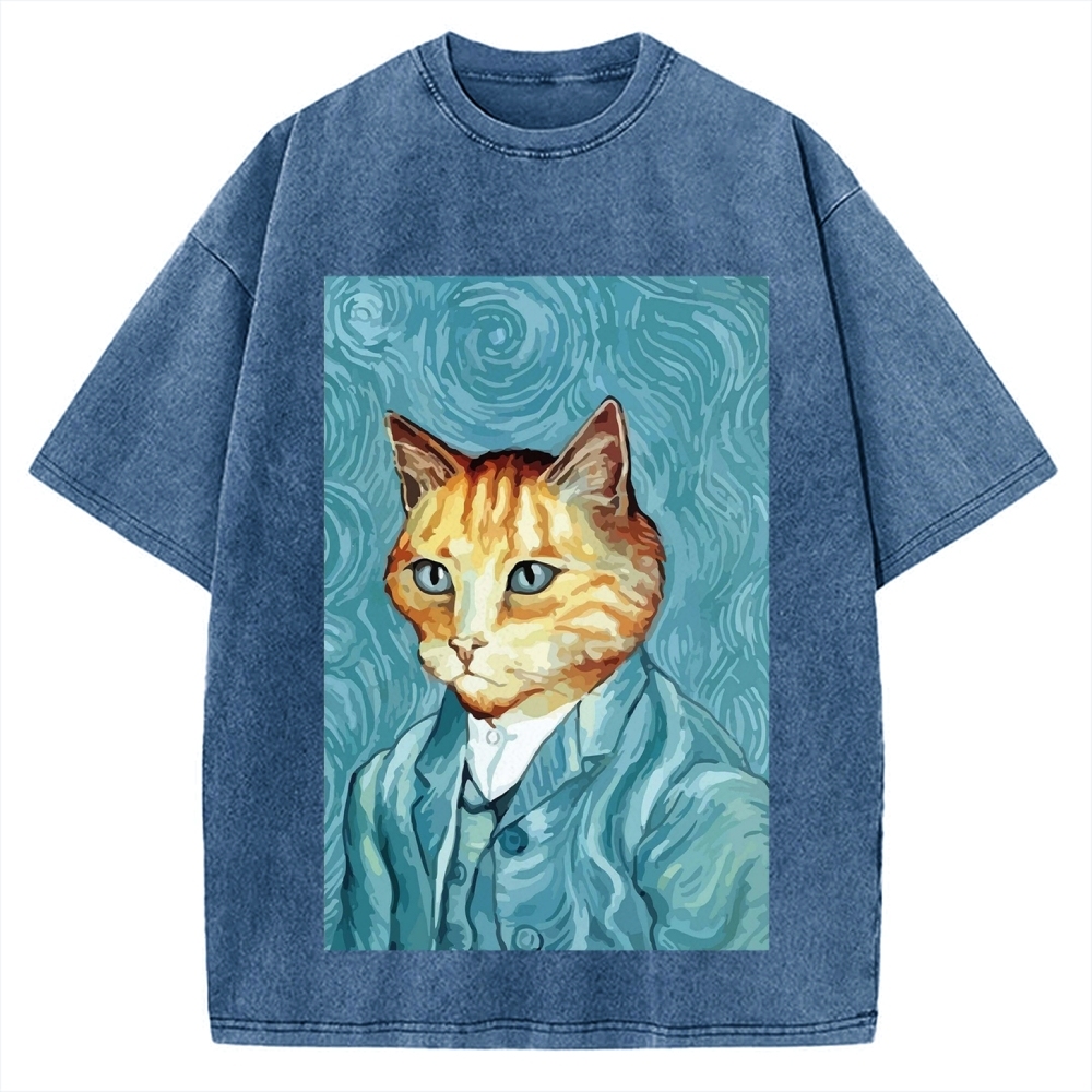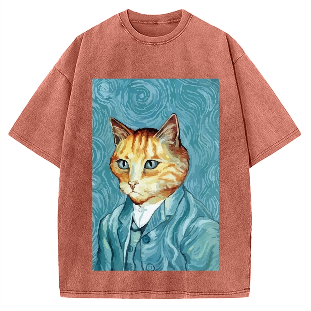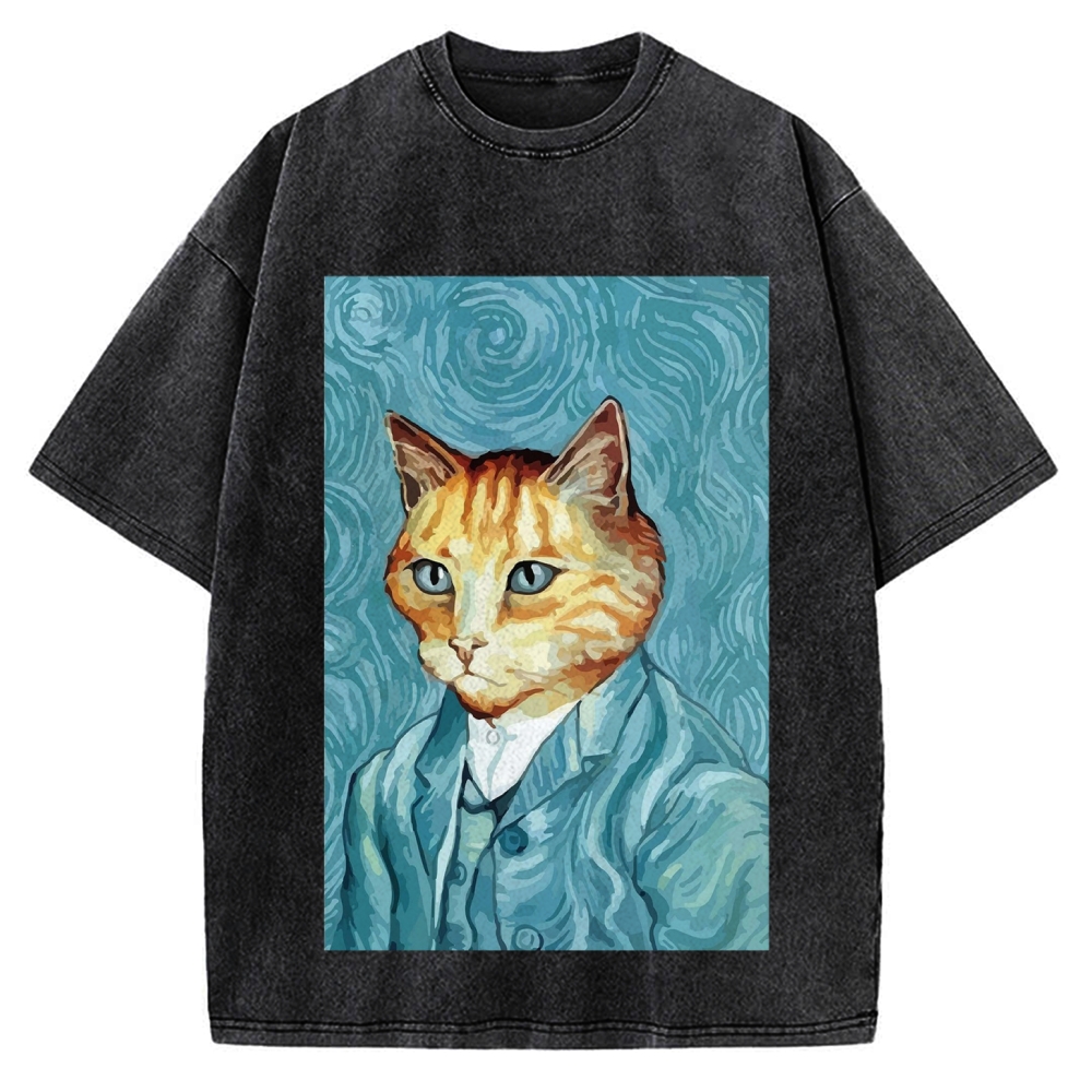 Tokyo-Assassin Van Gogh Cat Vintage Washed T-shirt
