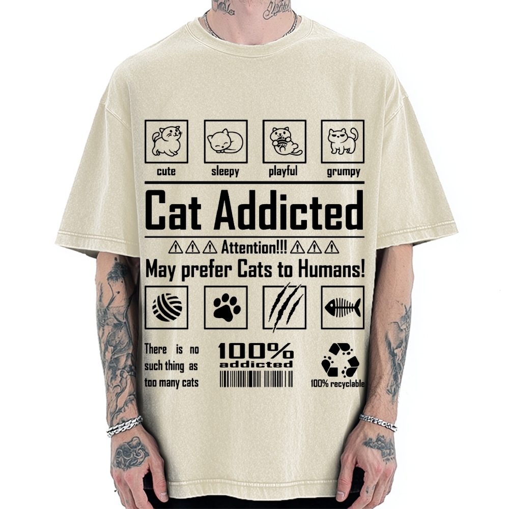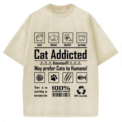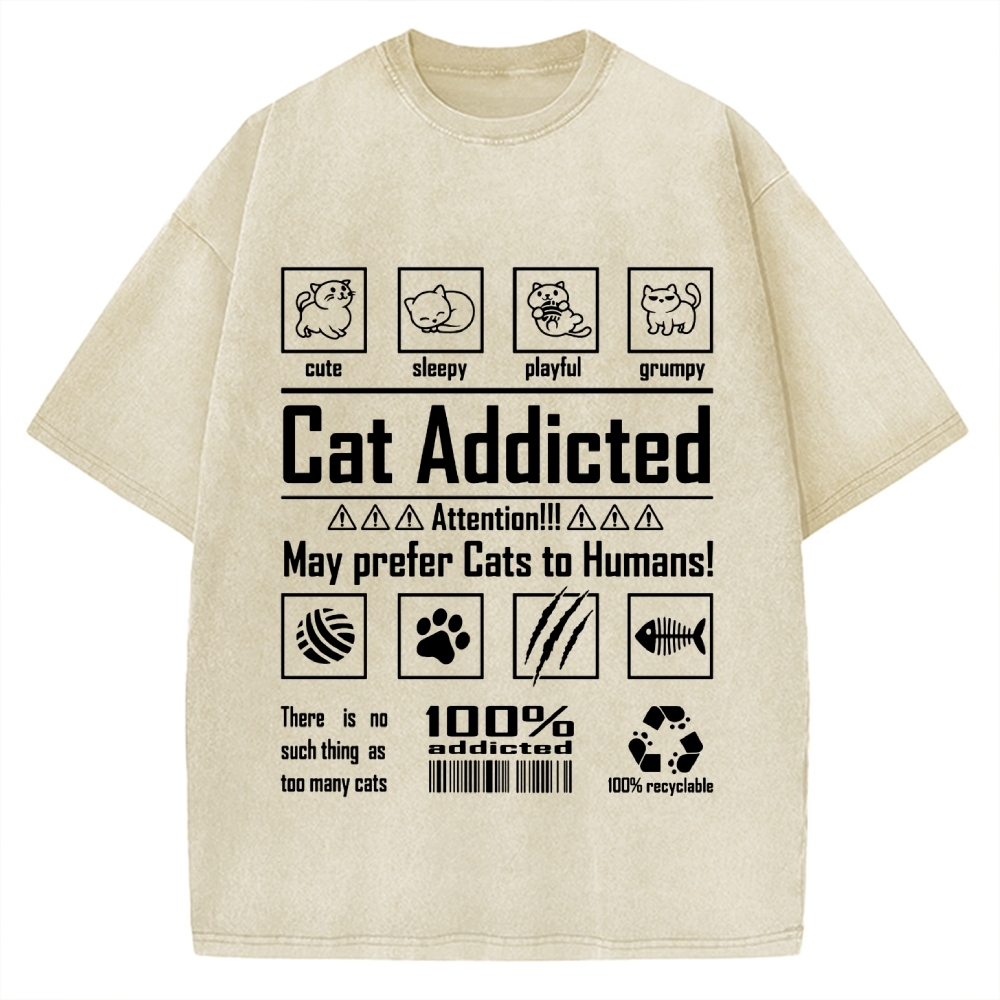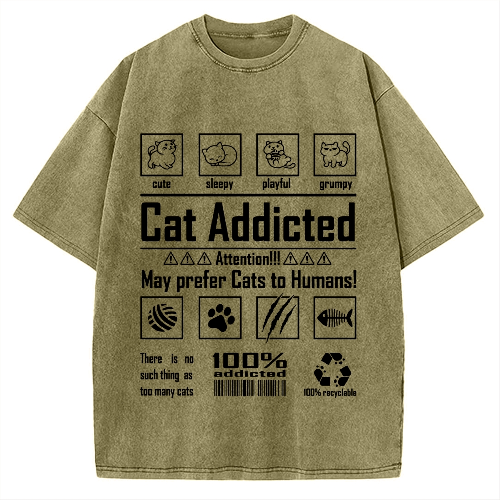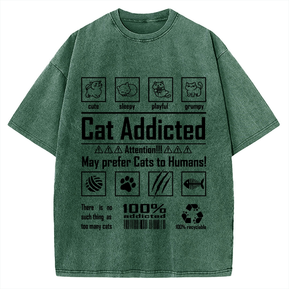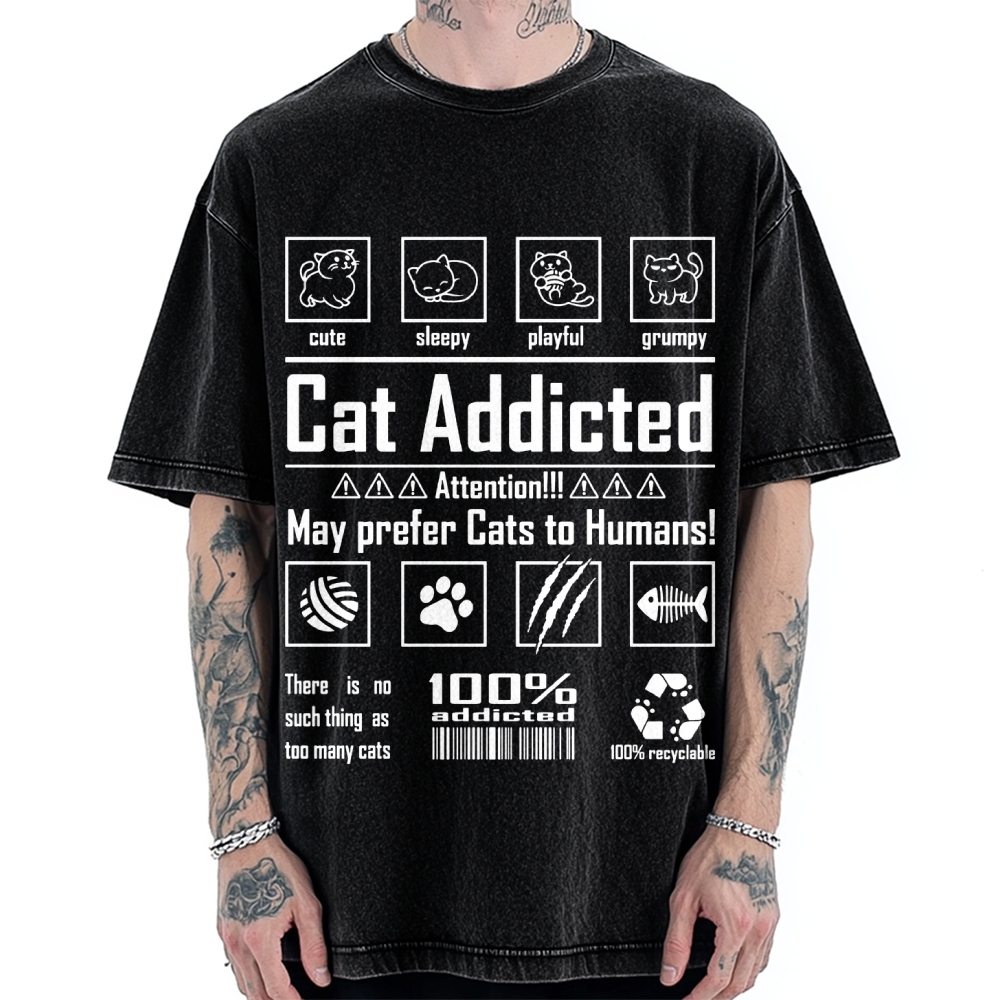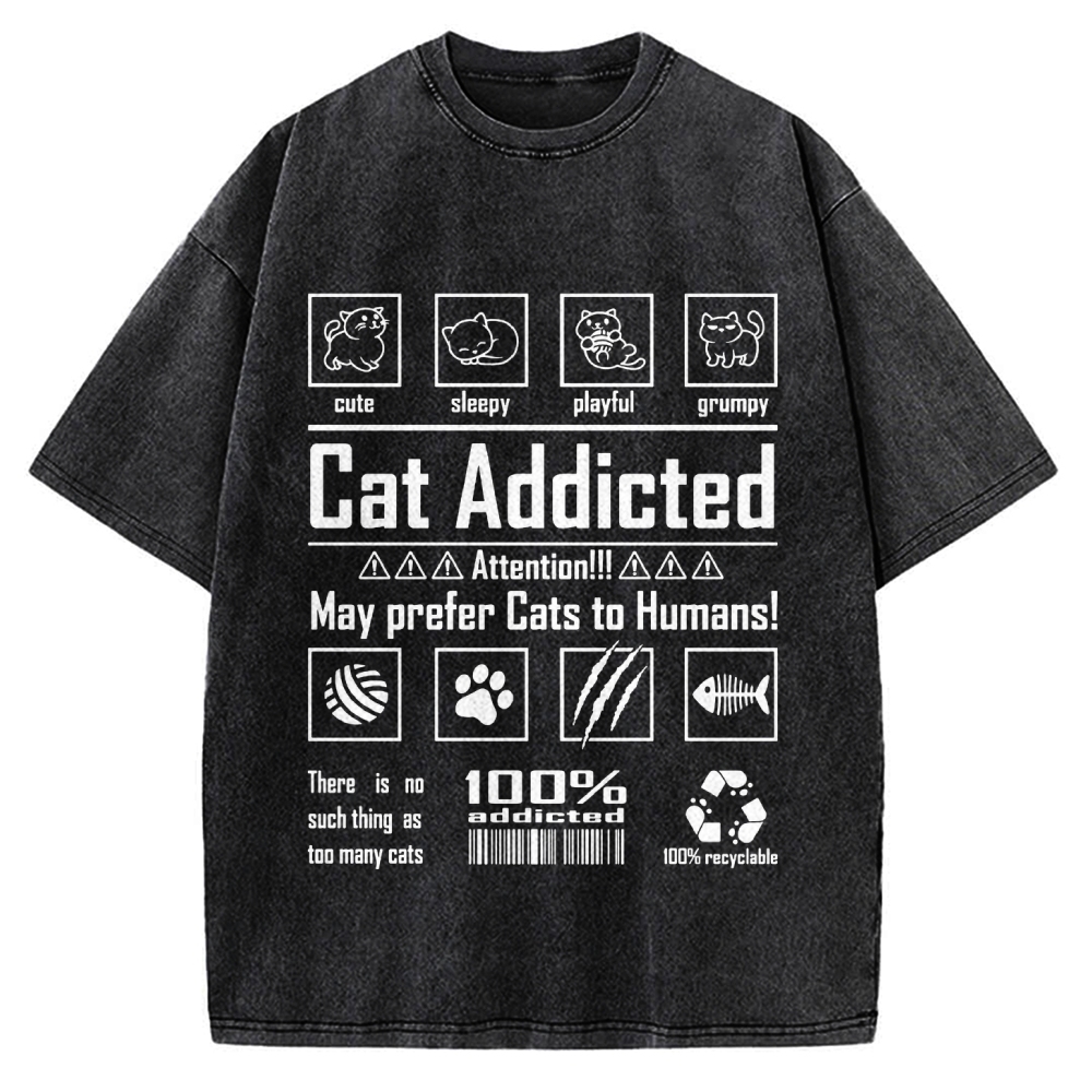 Tokyo-Assassin Cat Addicted Vintage Washed T-shirt