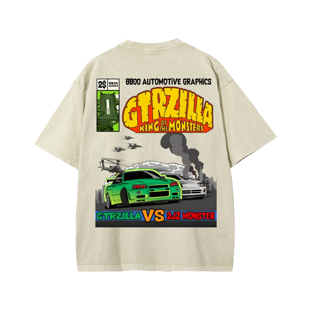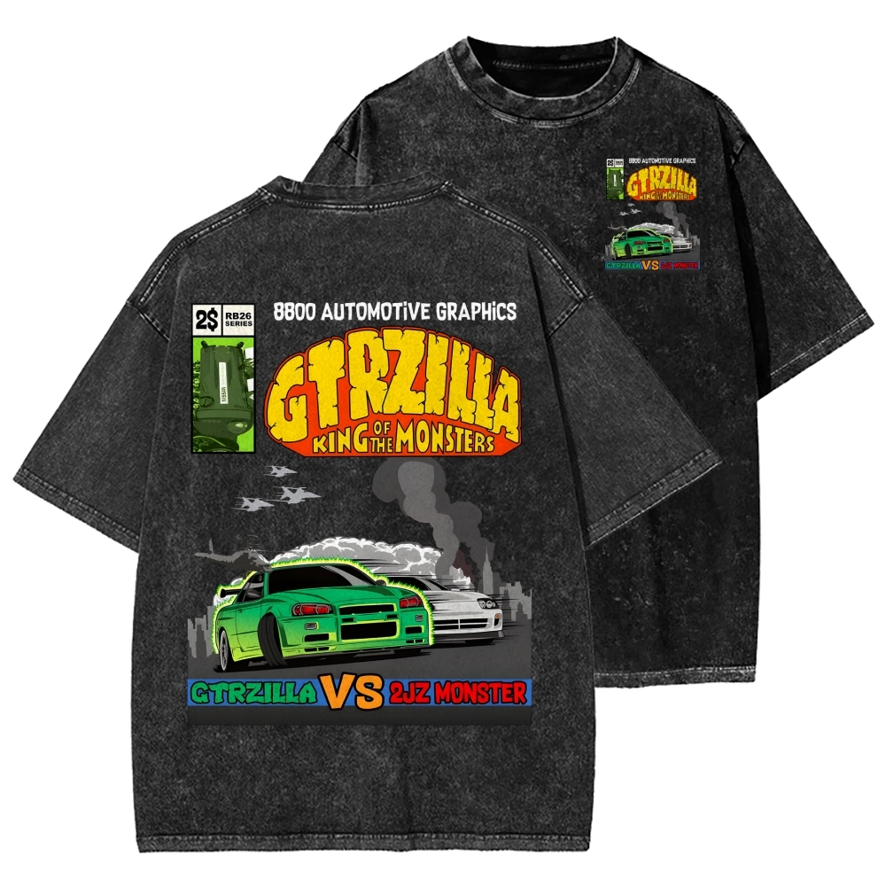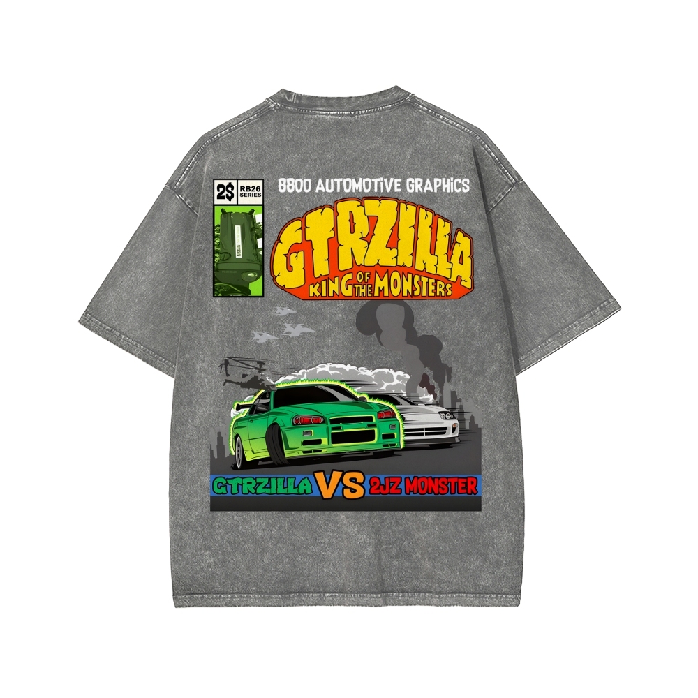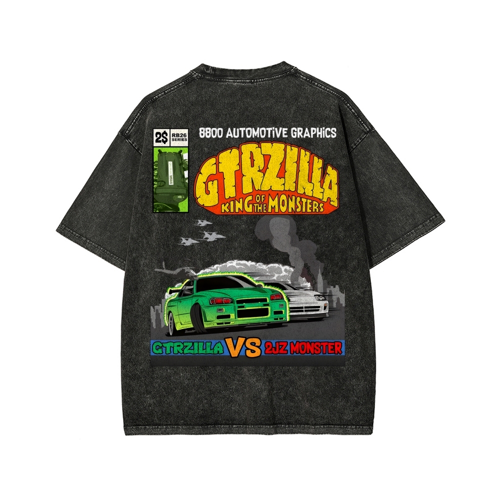Tokyo-Assassin GTRZILLA R34 Front And Back Printing Washed T-shirt