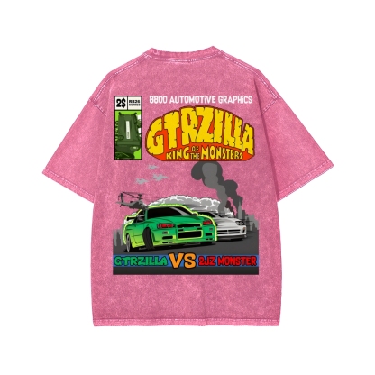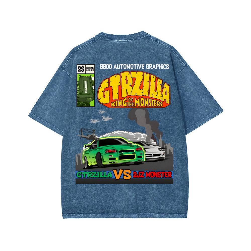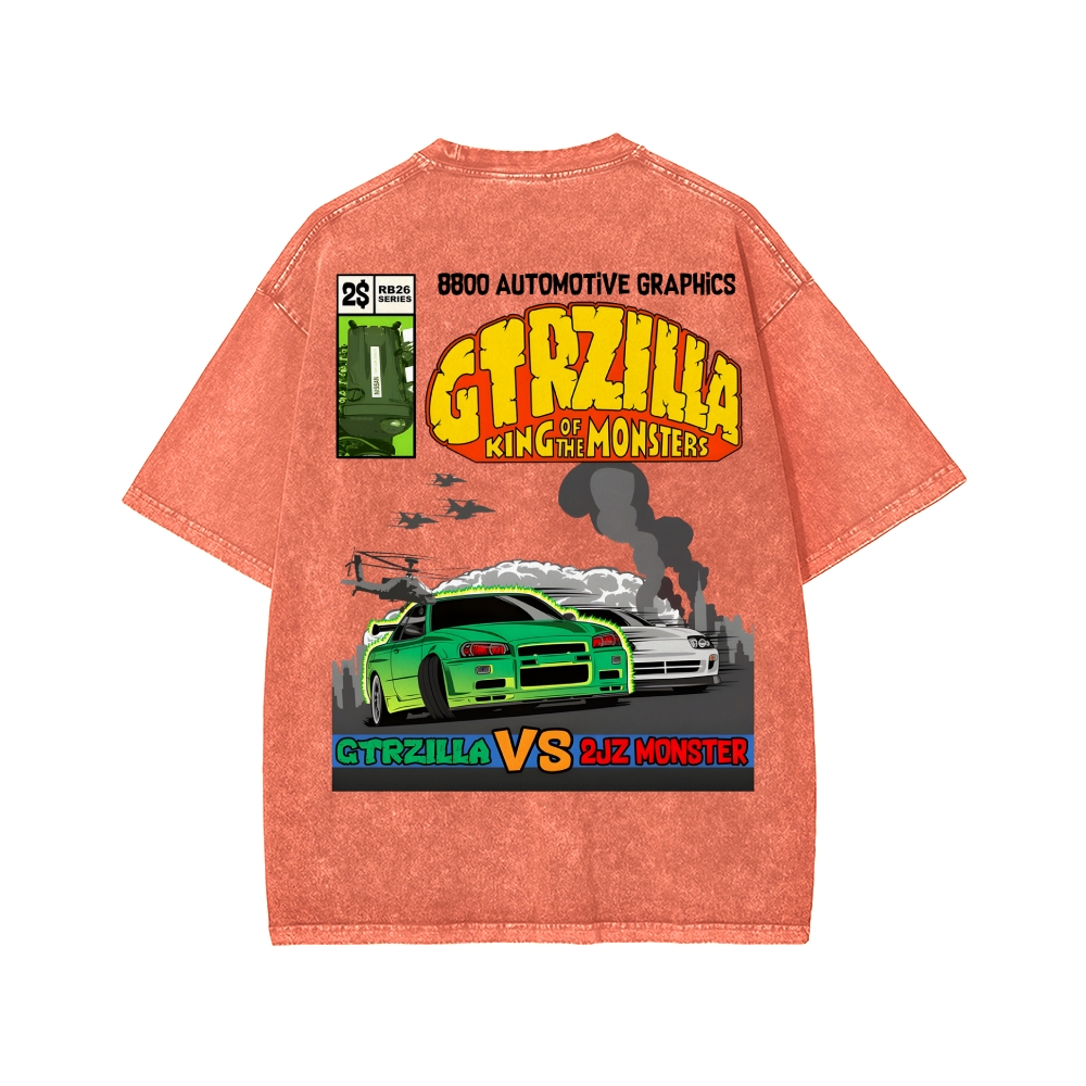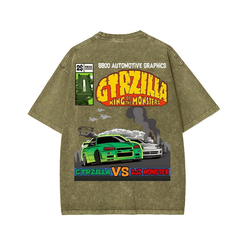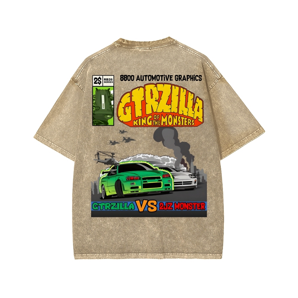 Tokyo-Assassin GTRZILLA R34 Front And Back Printing Washed T-shirt
