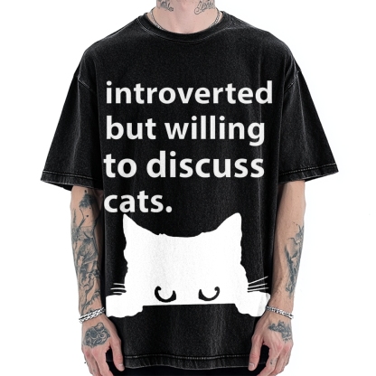Tokyo-Assassin Introverted But Willing To Discuss Cats Vintage Washed T-shirt