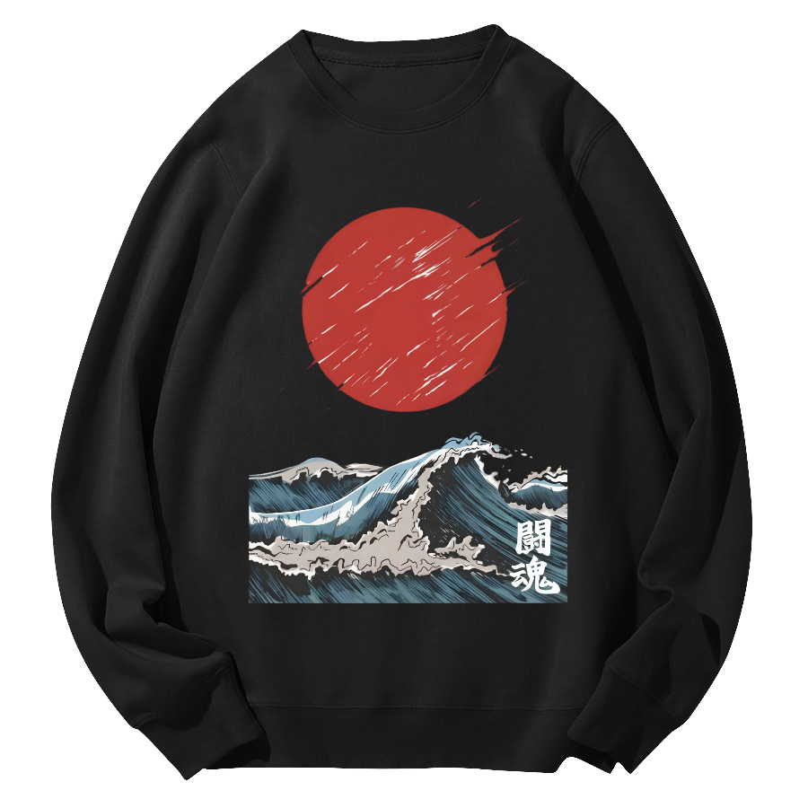 Tokyo-Assassin Japan's Huge Waves Rise at Sunrise Round Neck Sweatshirt