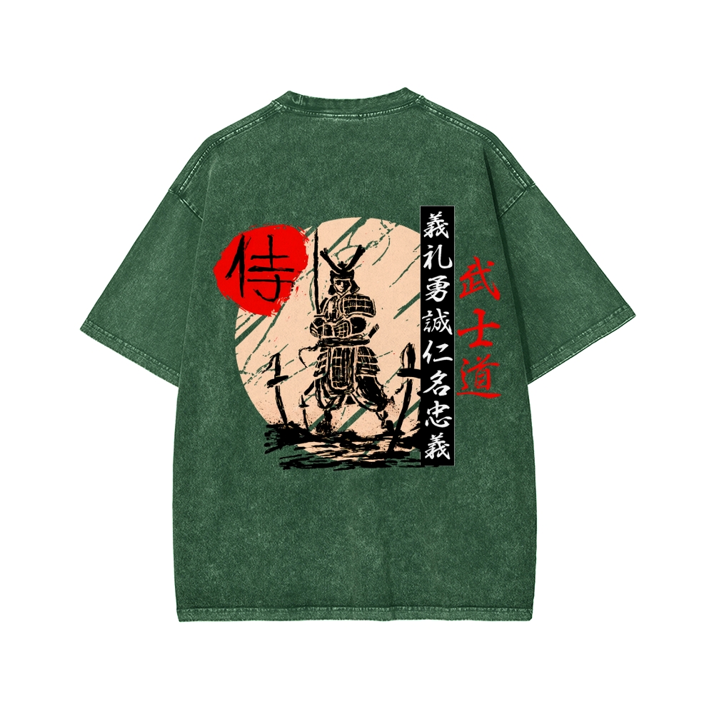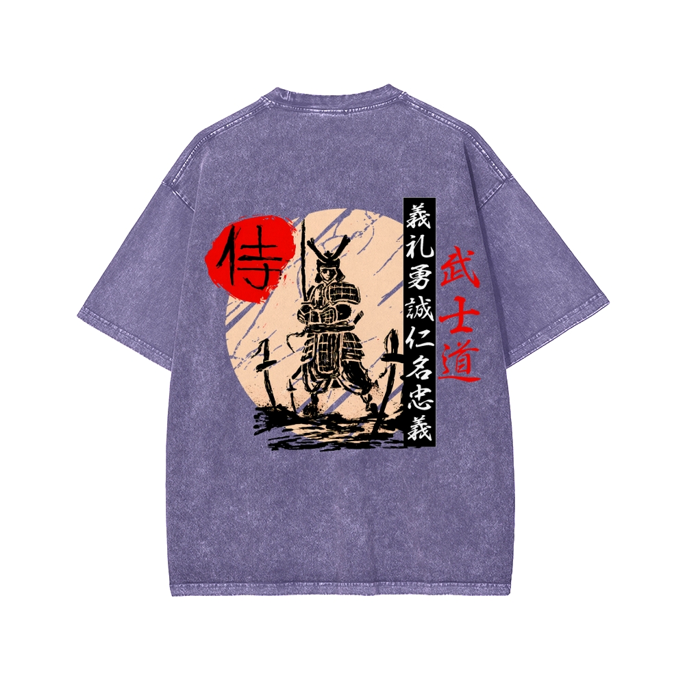 Tokyo-Assassin Japanese Samurai Warrior Bushido kanji Front And Back Printing Washed T-shirt