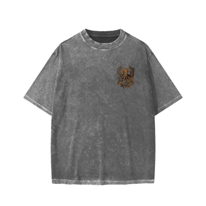 Tokyo-Assassin Octopus Front And Back Printing Washed T-shirt