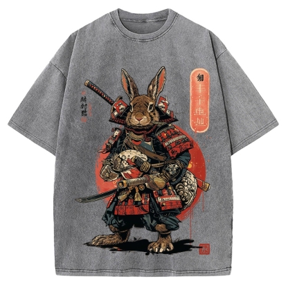 Tokyo-Assassin Rabbit Samurai Vintage Washed T-shirt