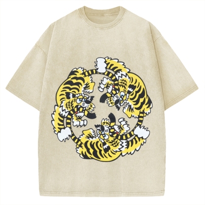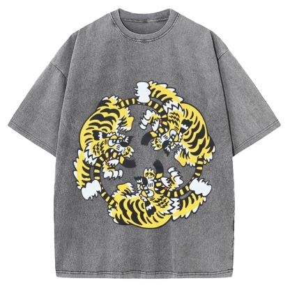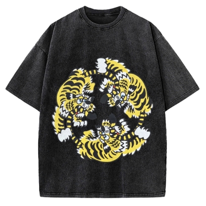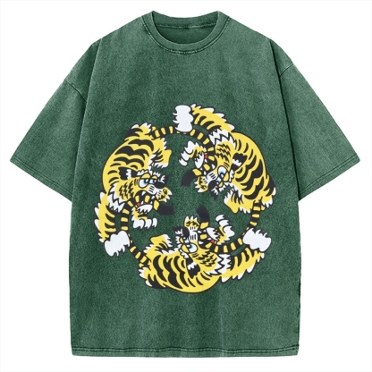 Tokyo-Assassin Three Tigers Japanese Art Vintage Washed T-shirt