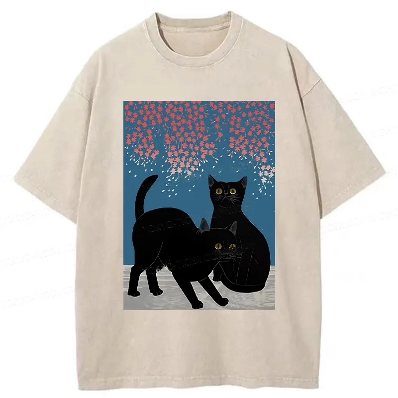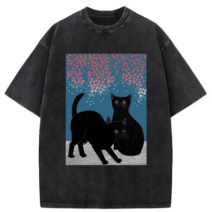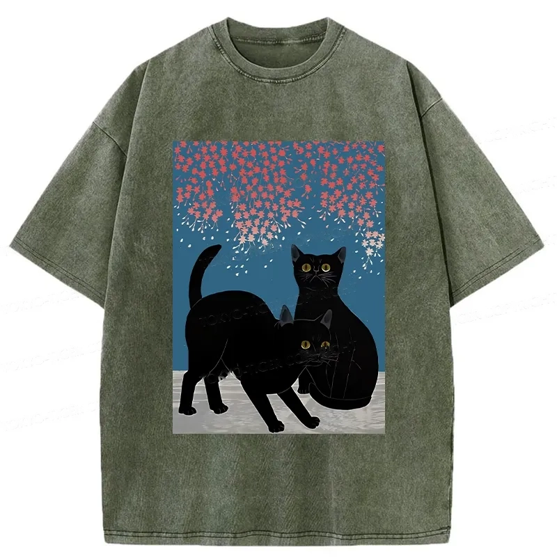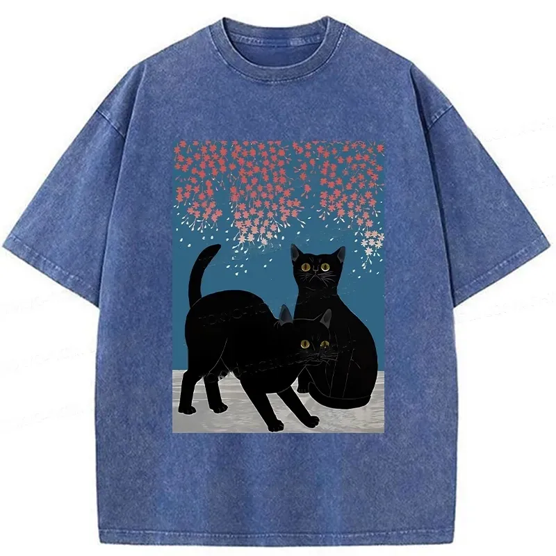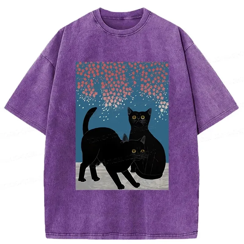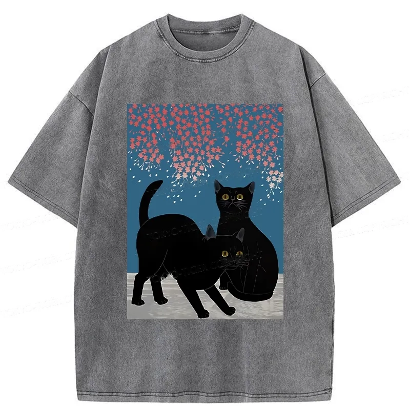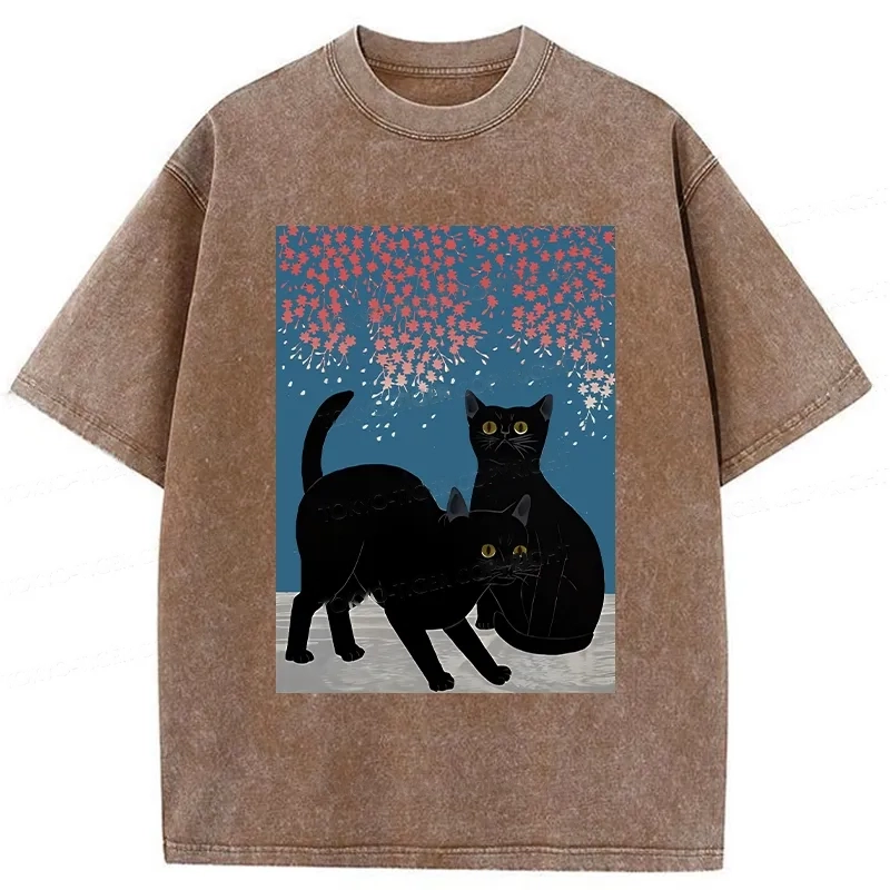 Tokyo-Assassin Black Cat Under The Sakura Washed T-Shirt