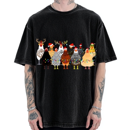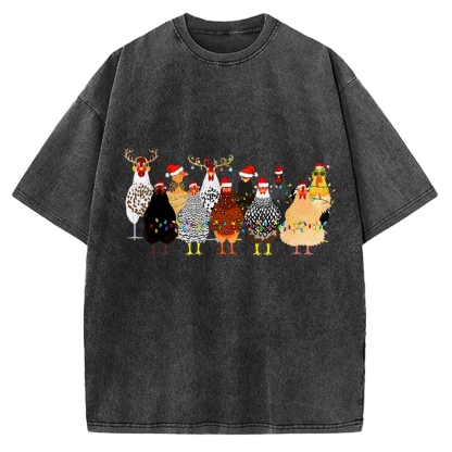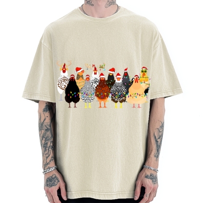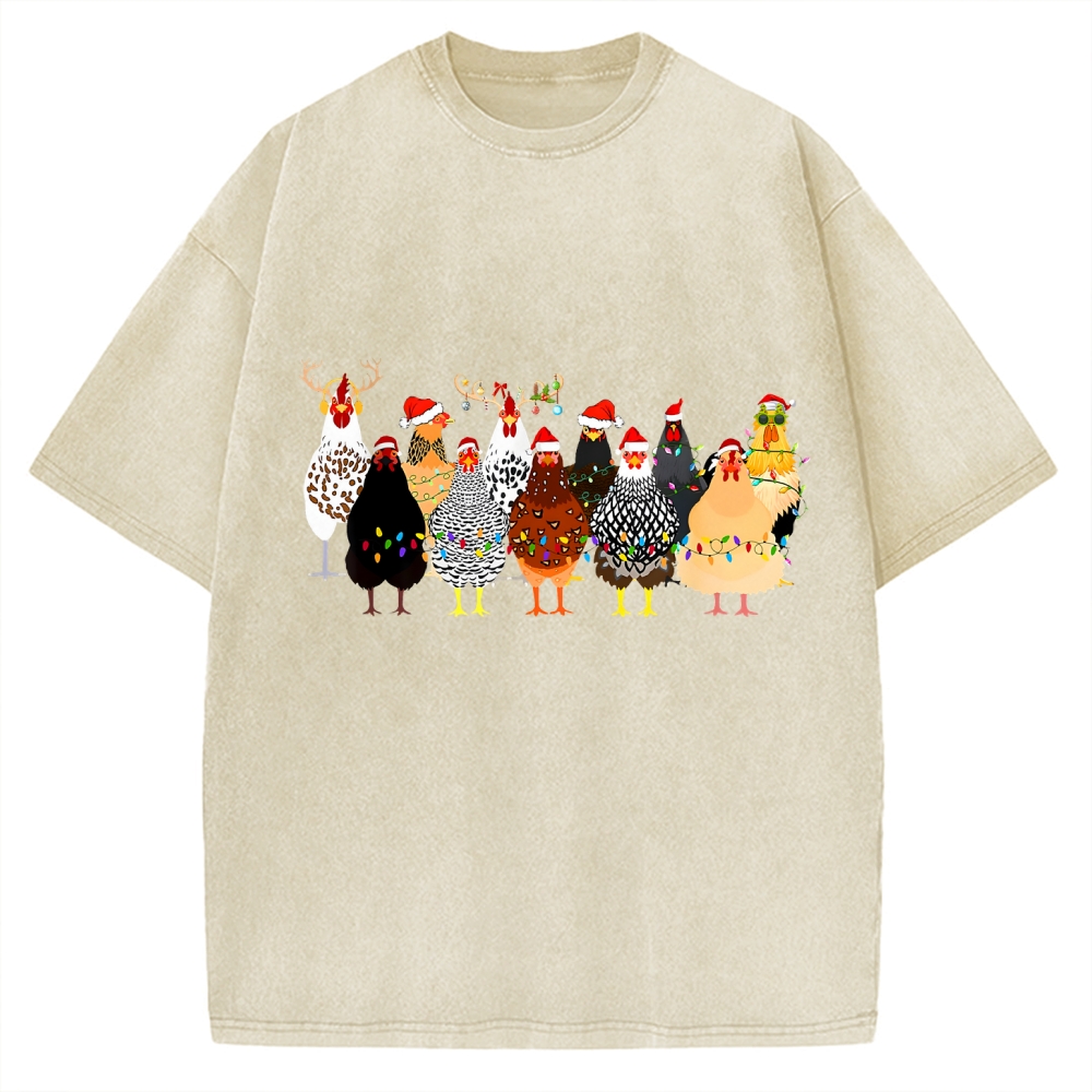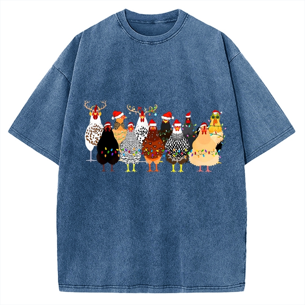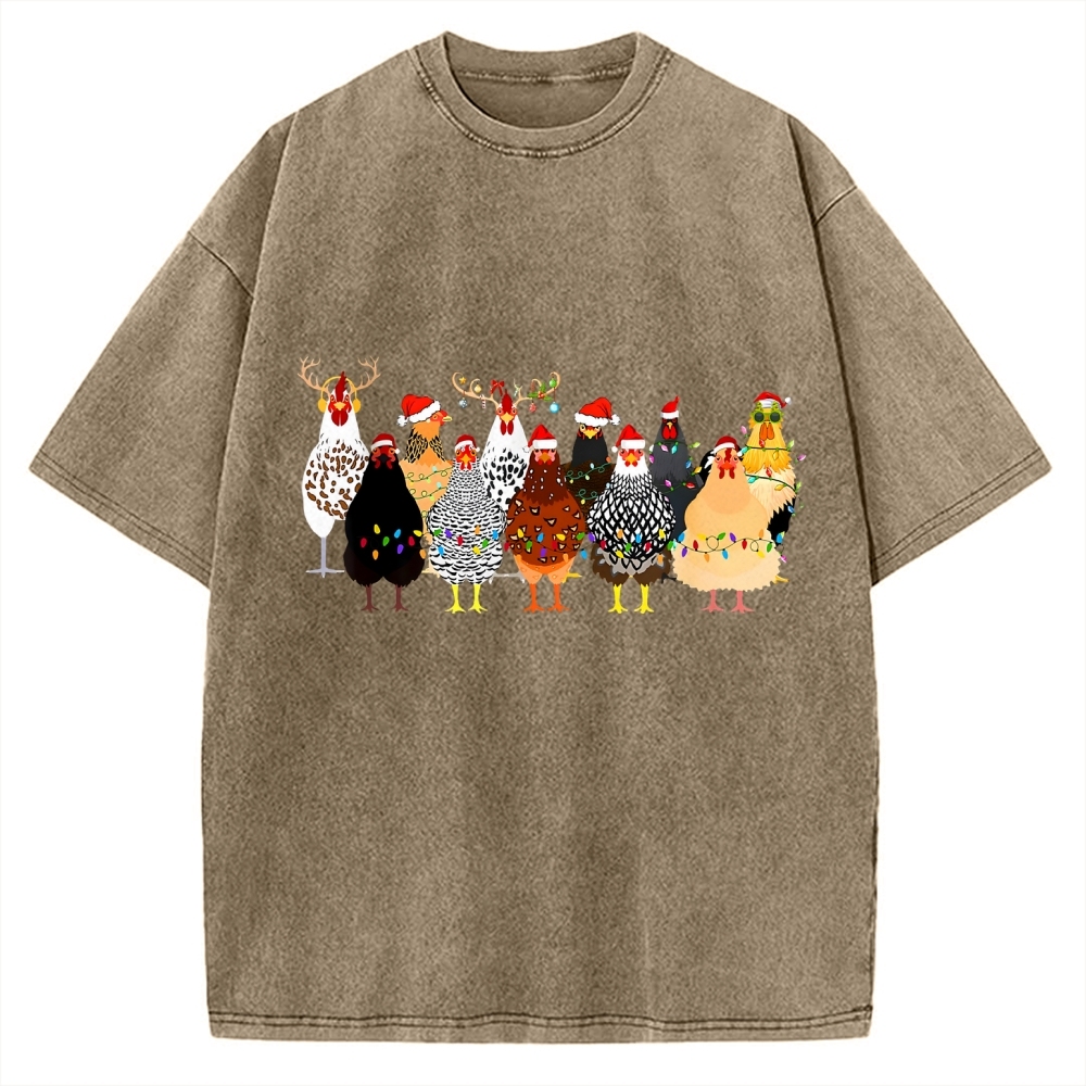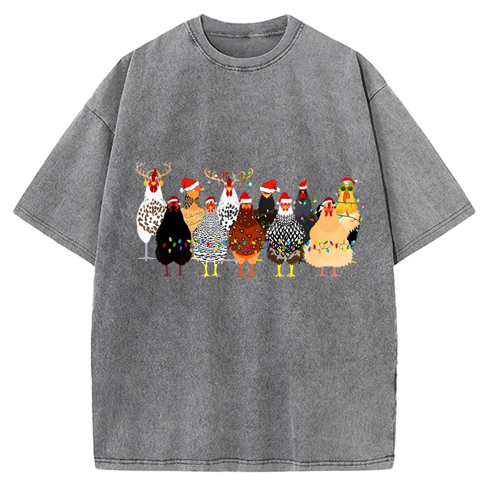 Tokyo-Assassin A Flock Of Christmas Chickens Vintage Washed T-shirt