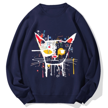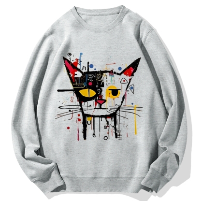 Tokyo-Assassin Abstract Art Cat Cotton Sweatshirt