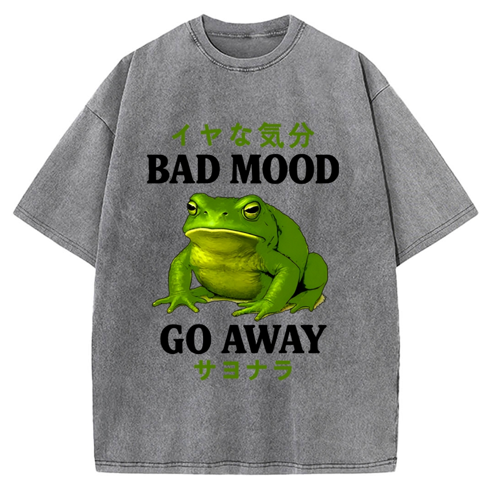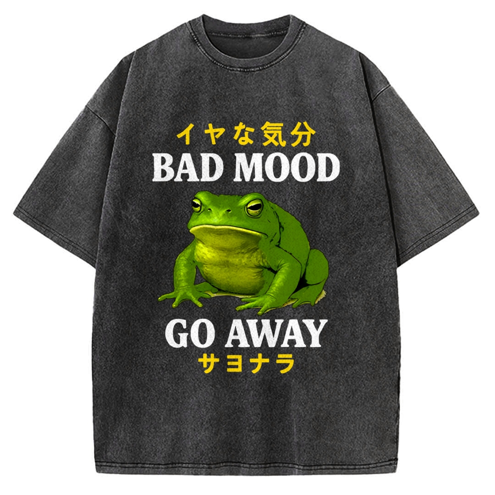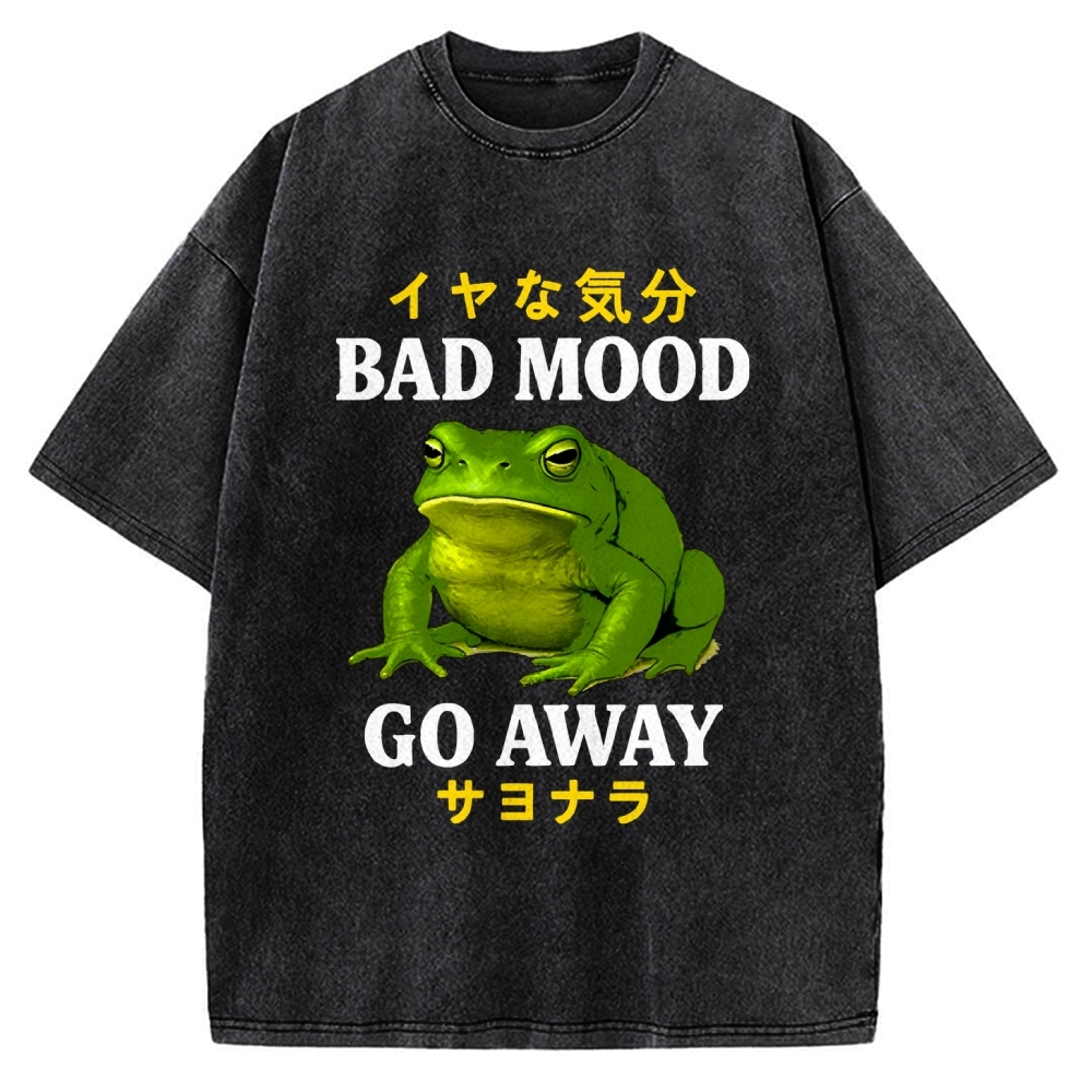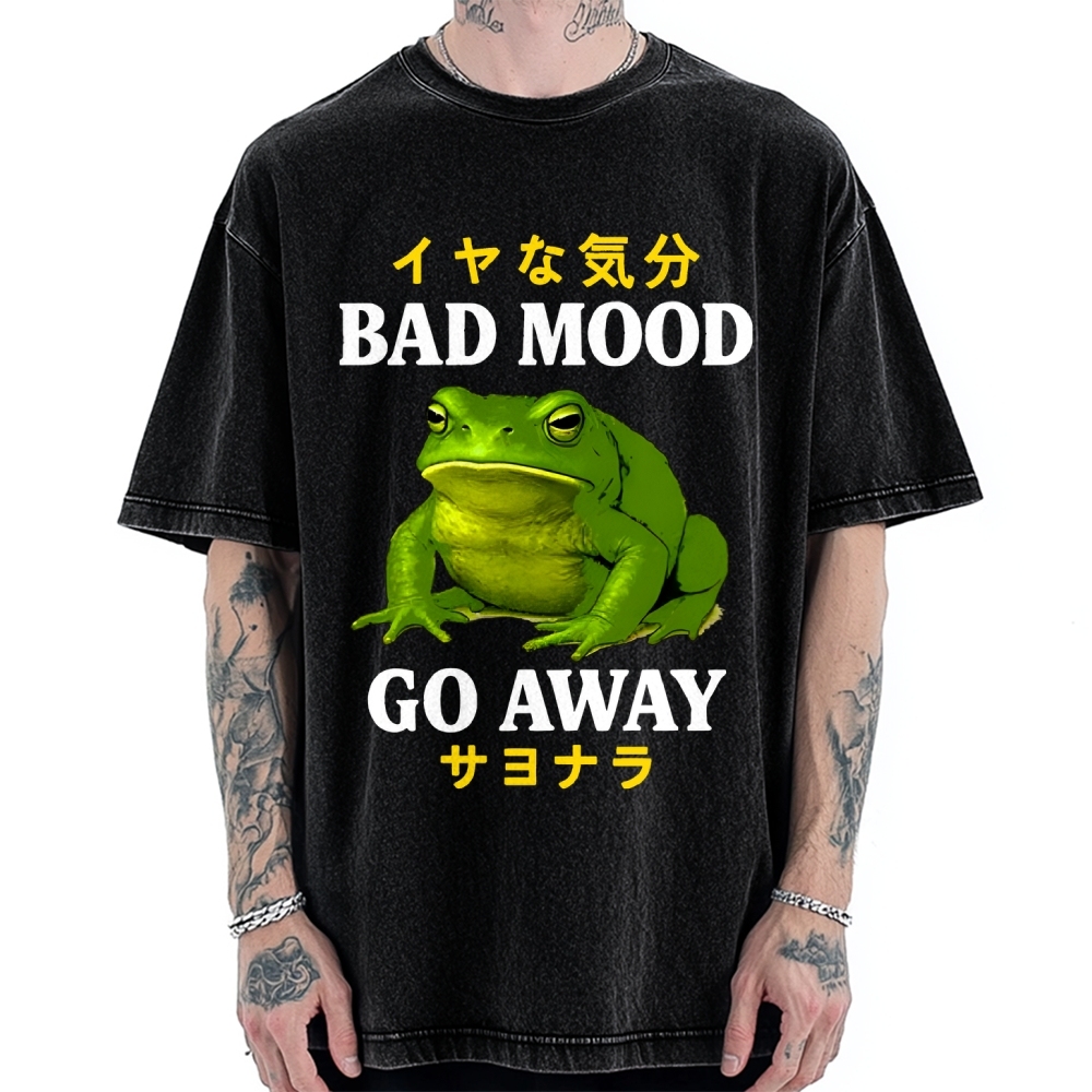 Tokyo-Assassin Bad Mood Go Away Japanese Funny Frog Vintage Washed T-shirt