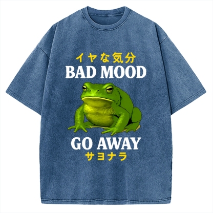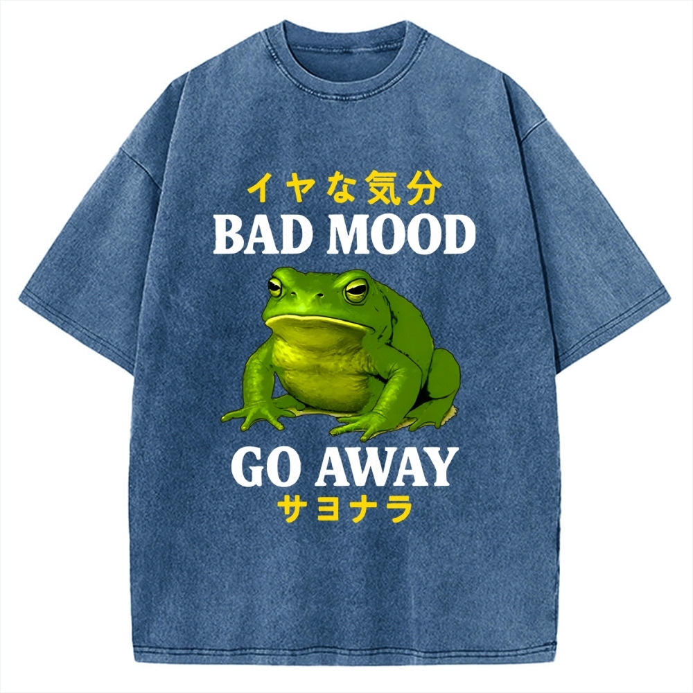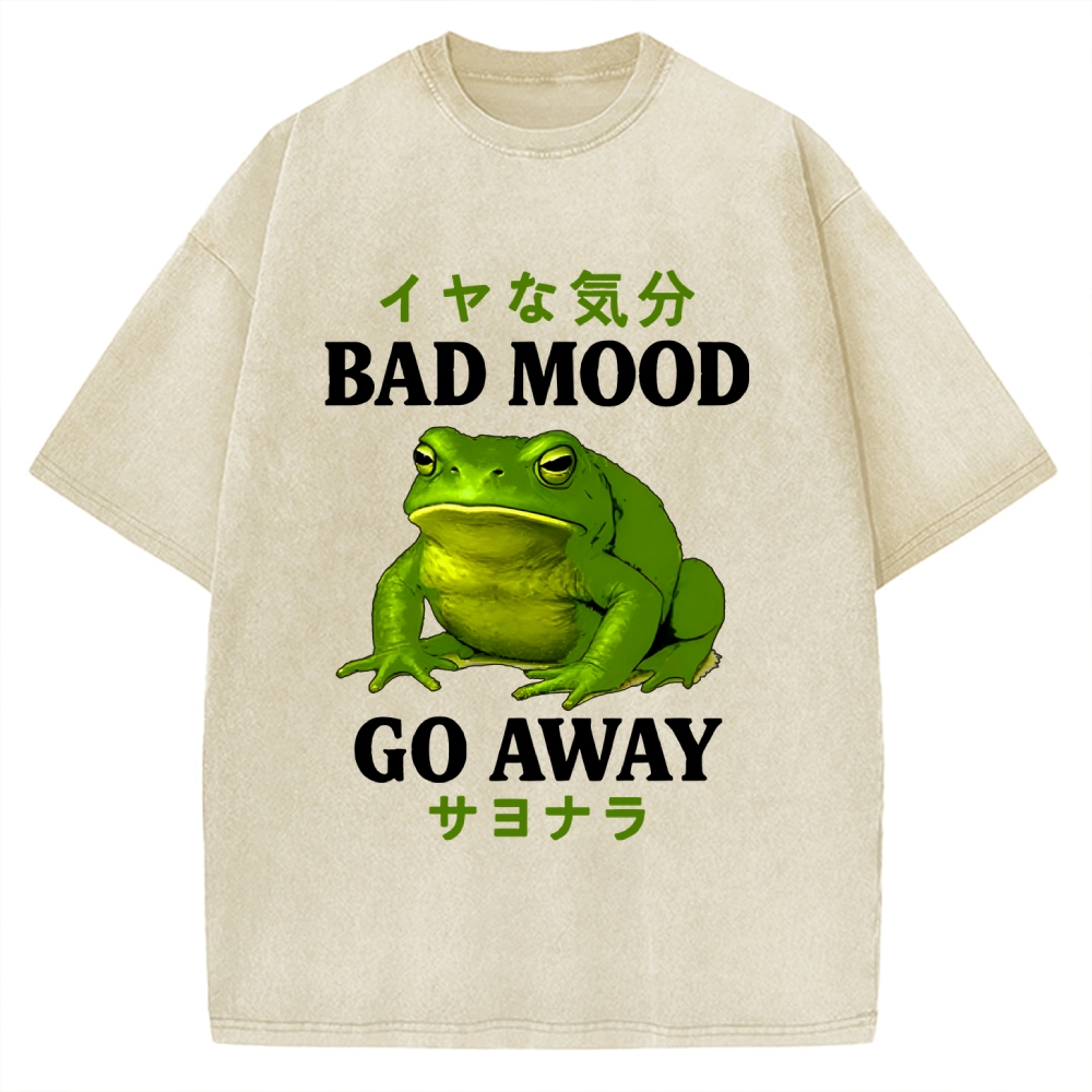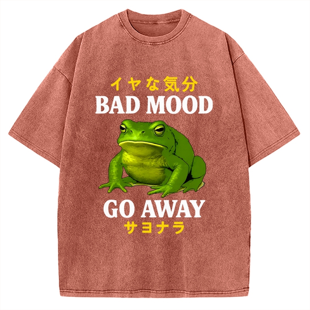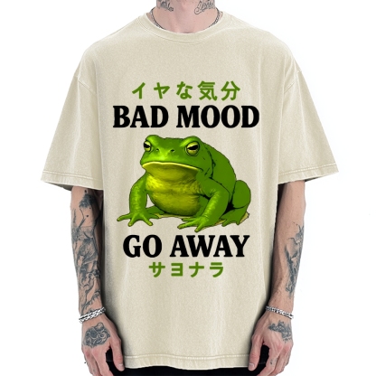 Tokyo-Assassin Bad Mood Go Away Japanese Funny Frog Vintage Washed T-shirt