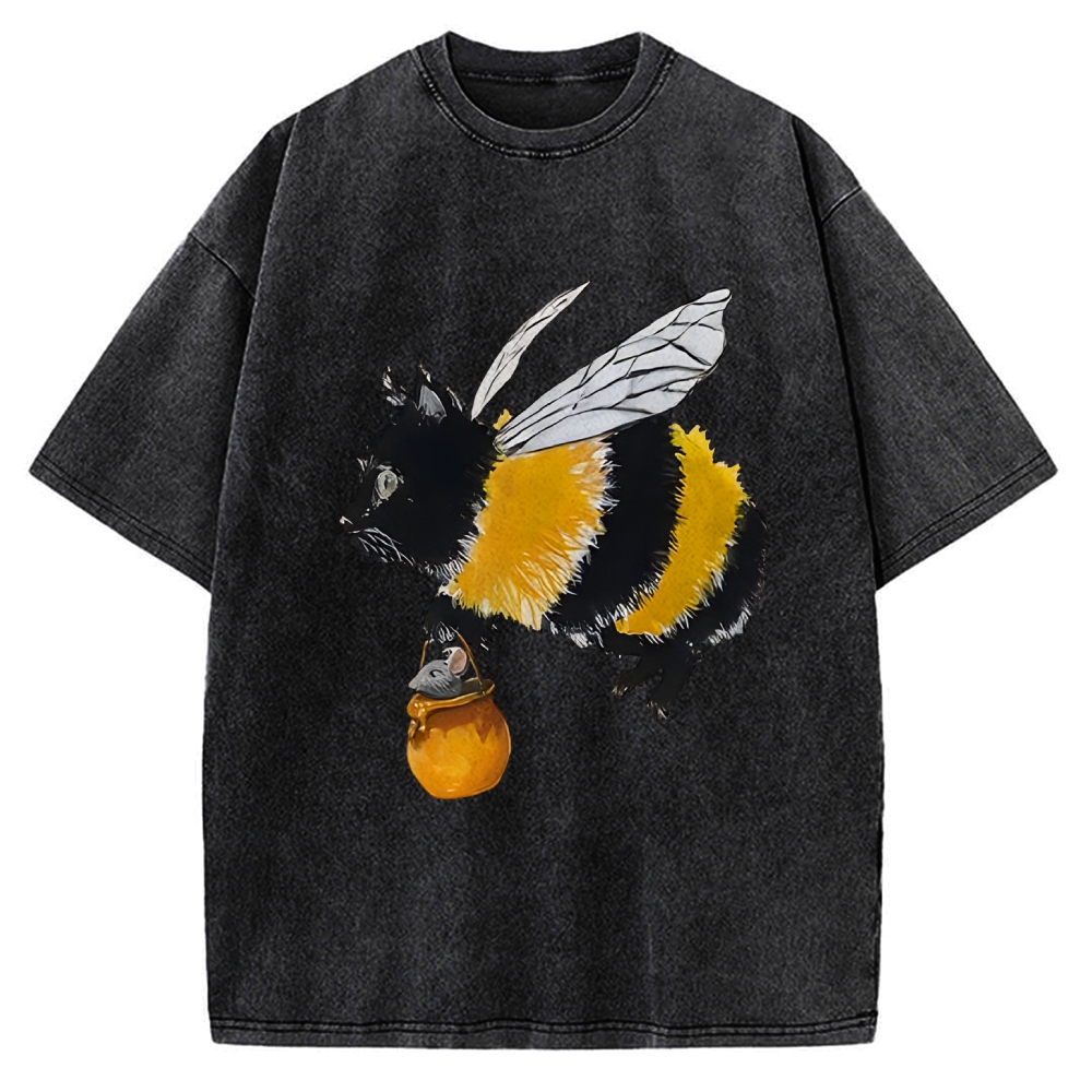 Tokyo-Assassin Catbee Funny Vintage Washed T-shirt