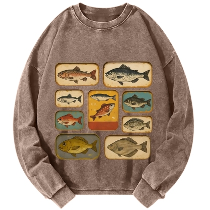 Tokyo-Assassin Fish Stamp Vintage Washed Sweatshirts