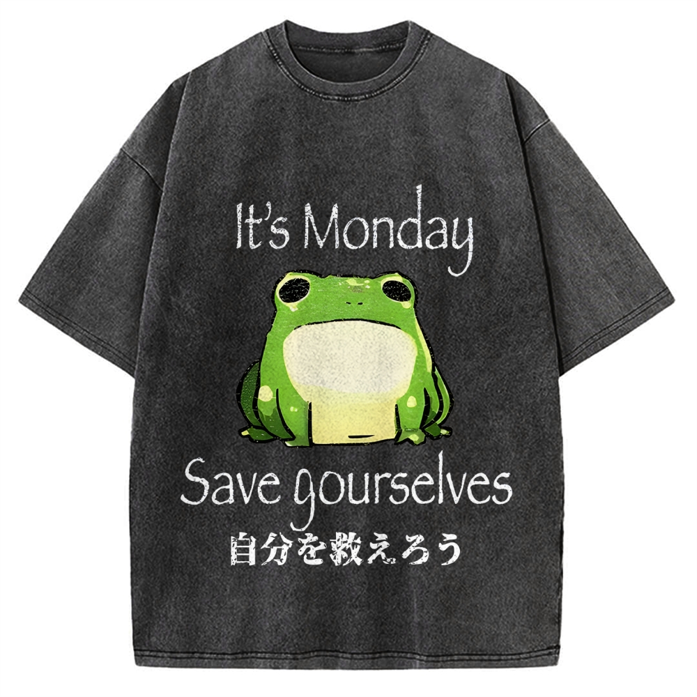 Tokyo-Assassin Funny frog it’s monday save yourselves Vintage Washed T-shirt