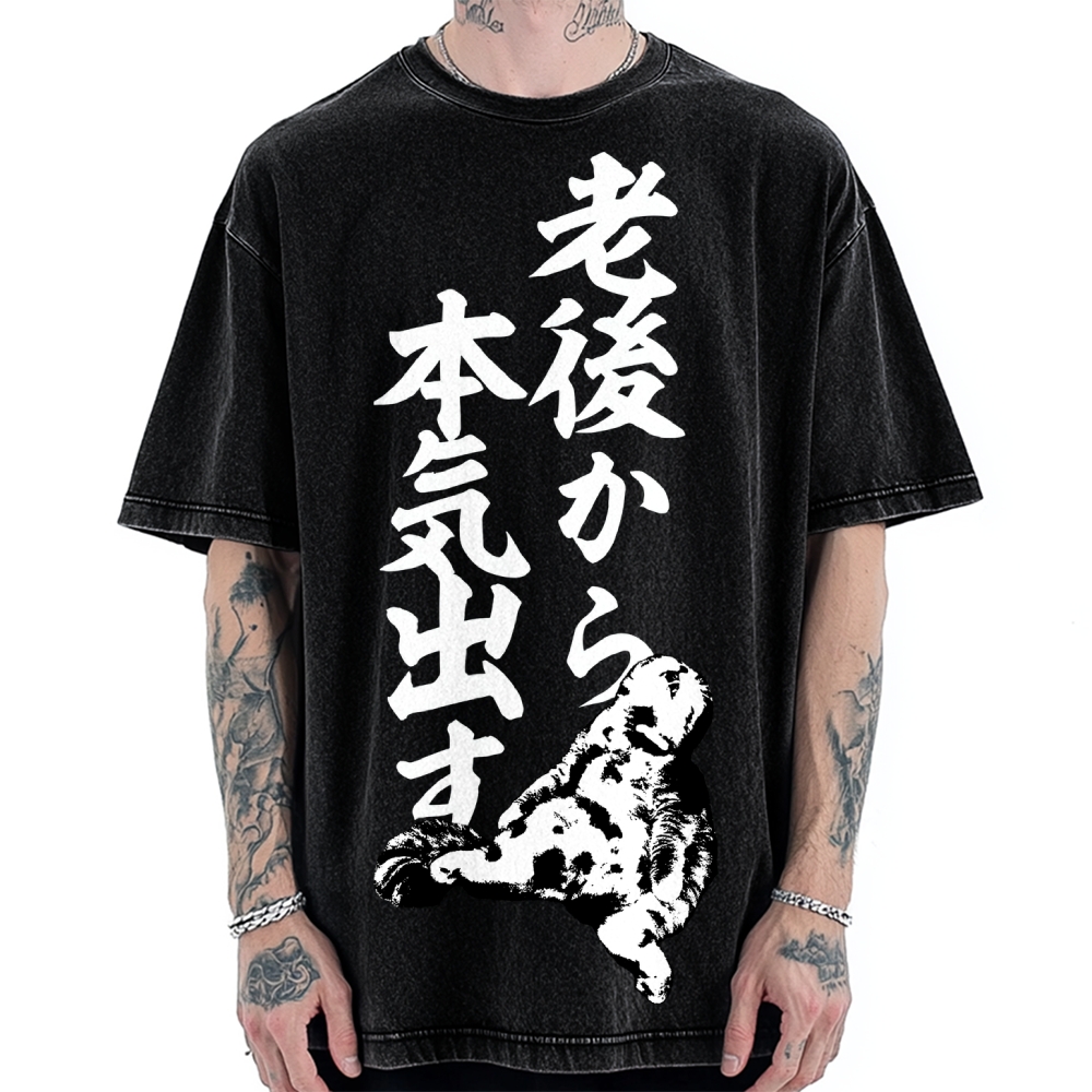 Tokyo-Assassin Get serious in old age Funny Cat Vintage Washed T-shirt