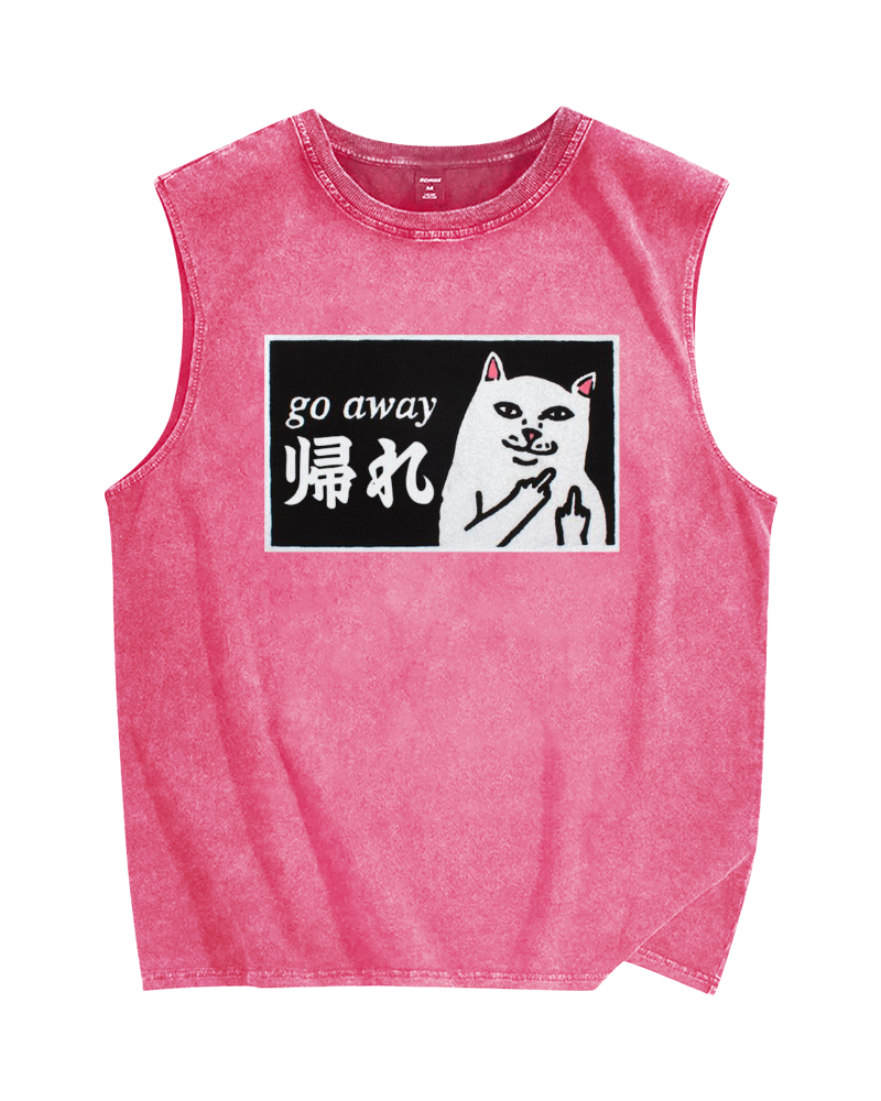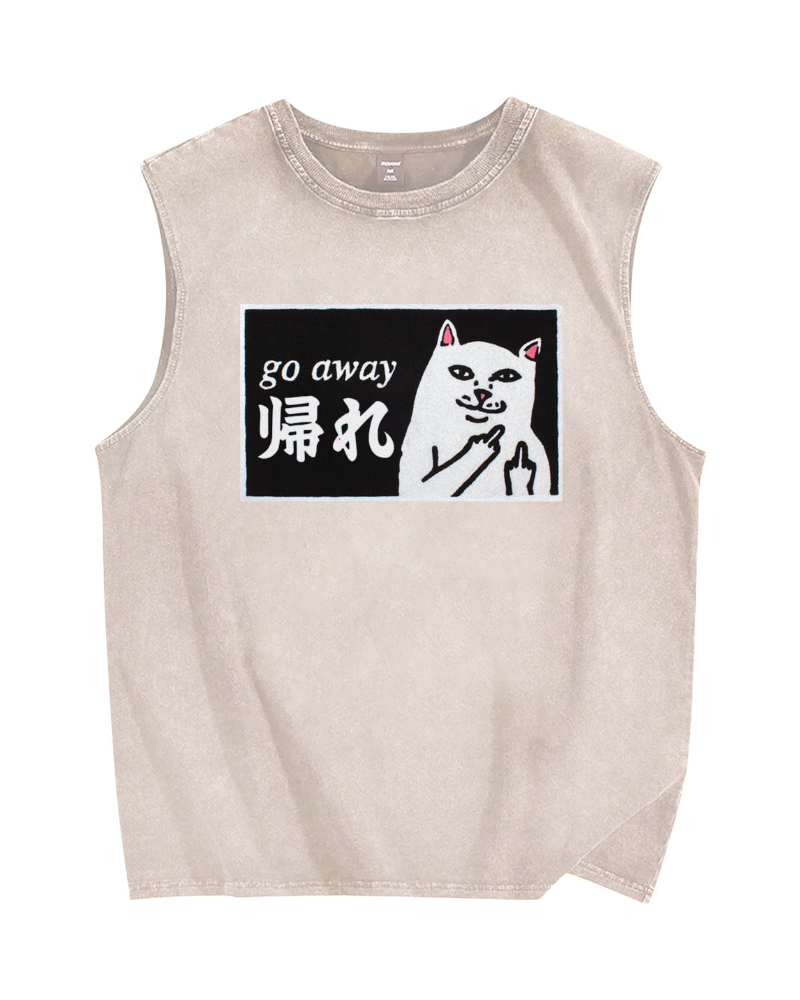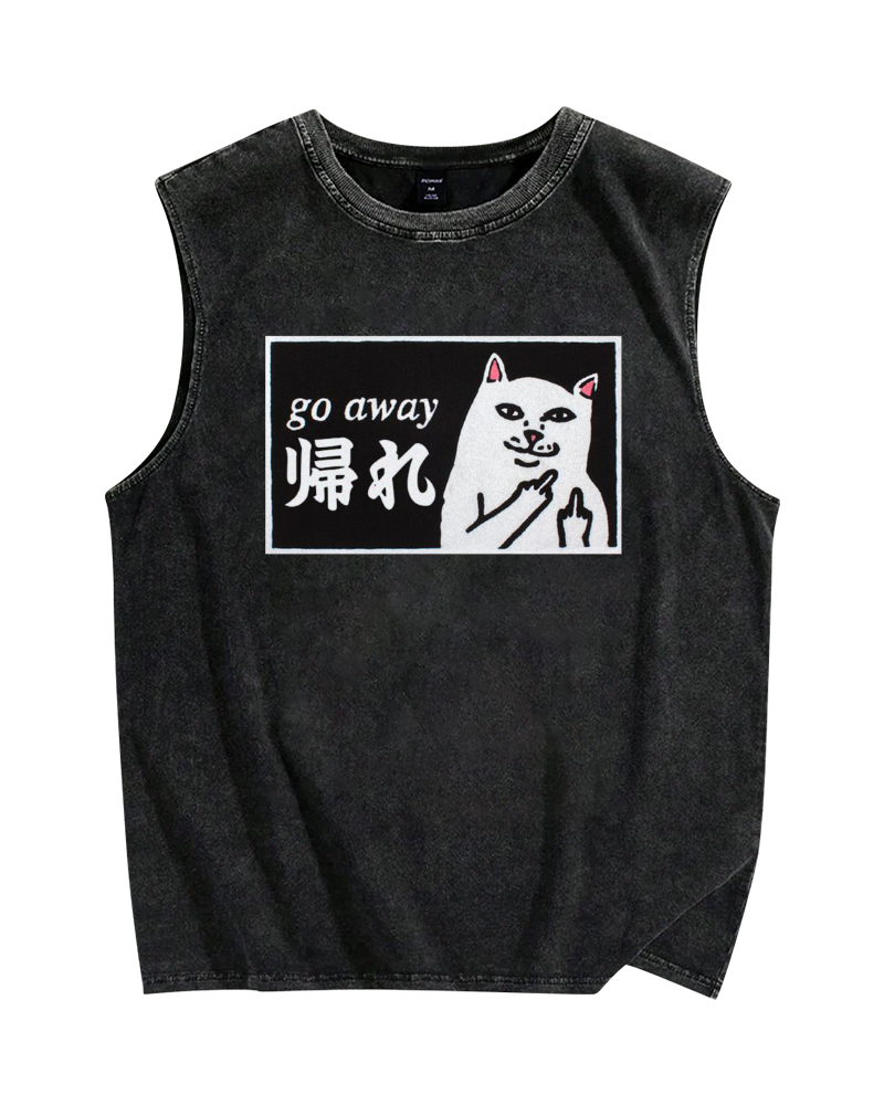 Tokyo-Assassin Go Away White Cat Vintage Distressed Washed Tank Top