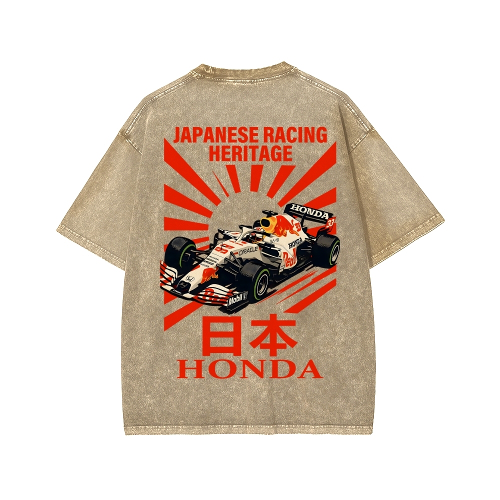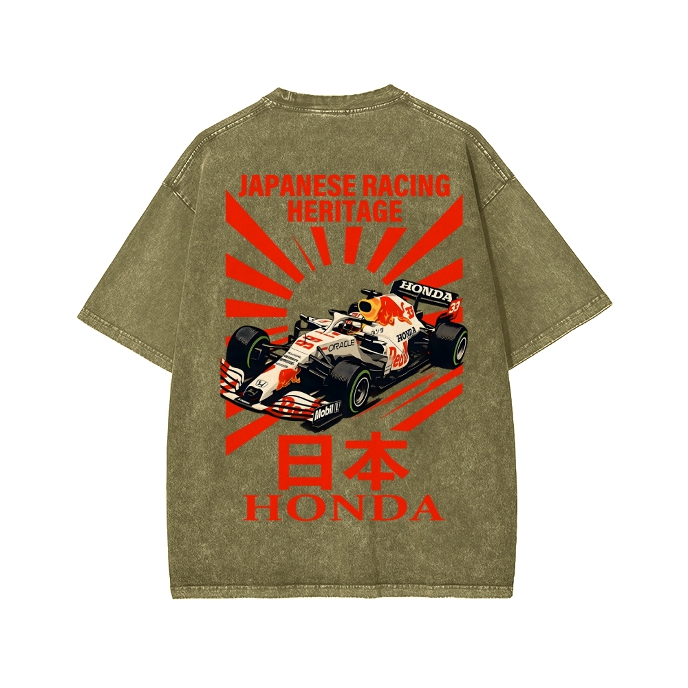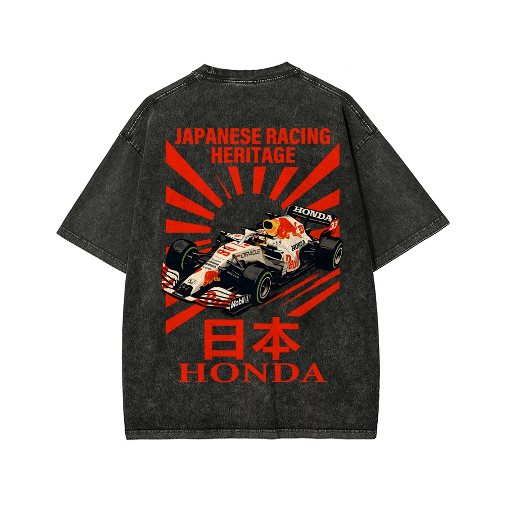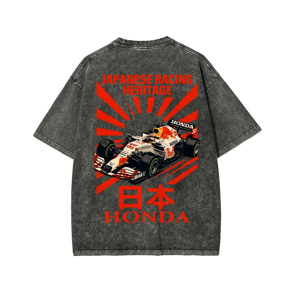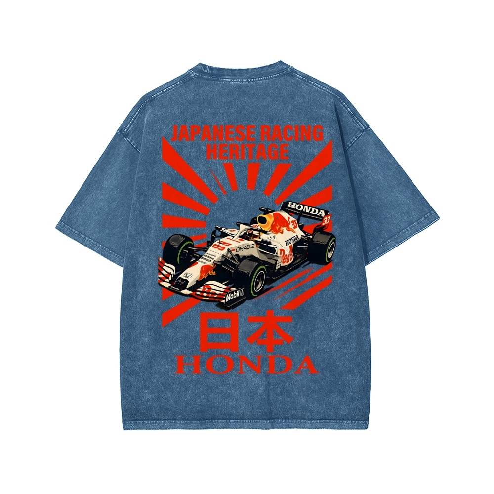 Tokyo-Assassin Honda Red Bull F1 Front And Back Printing Washed T-shirt