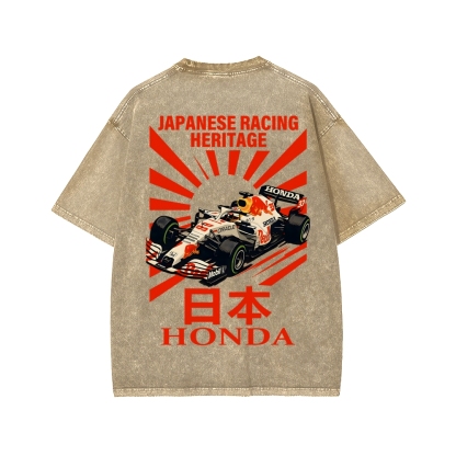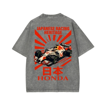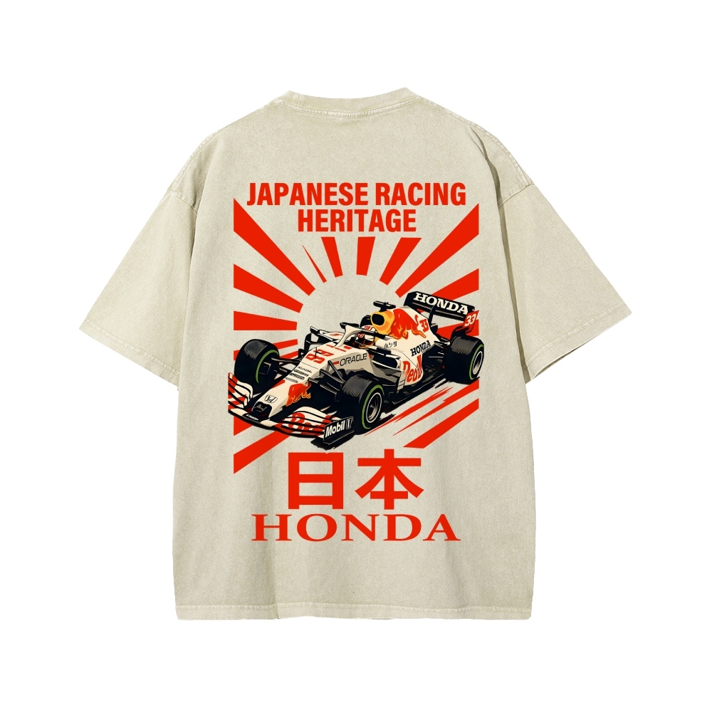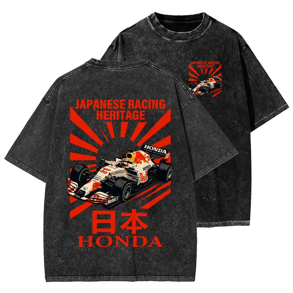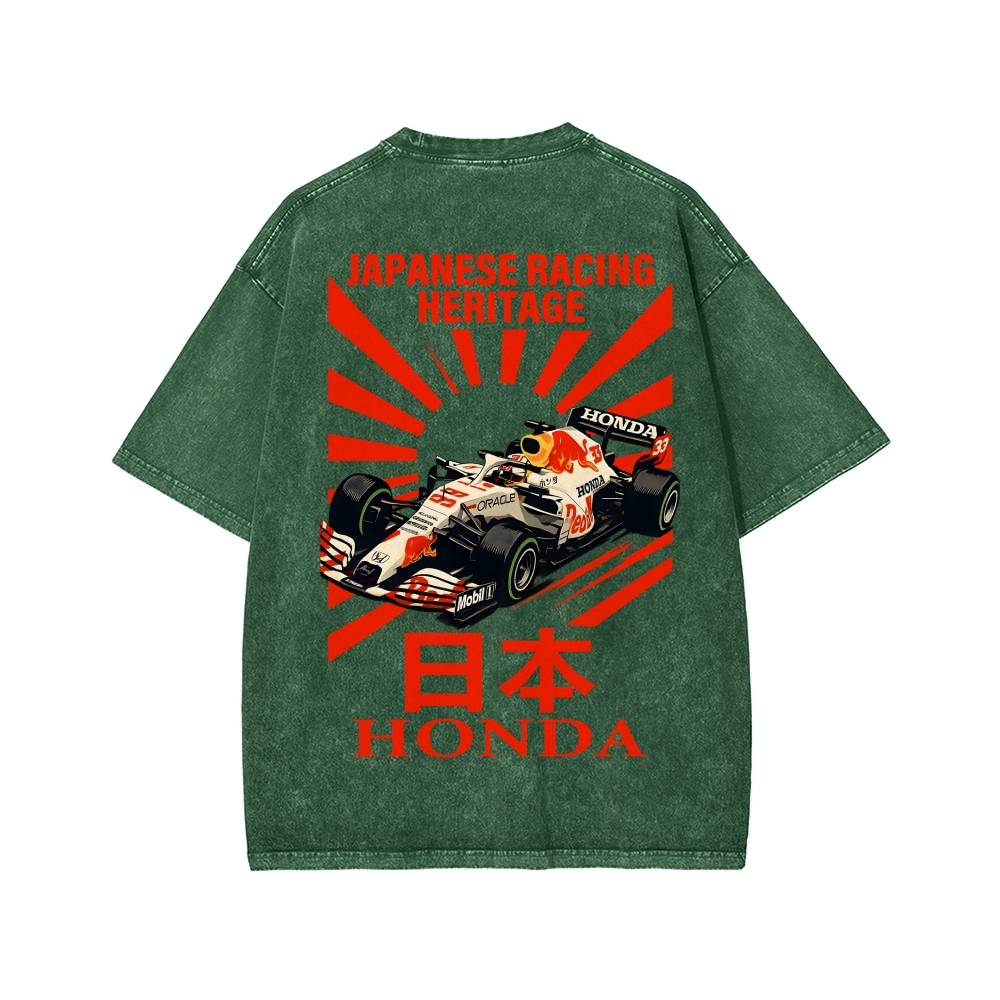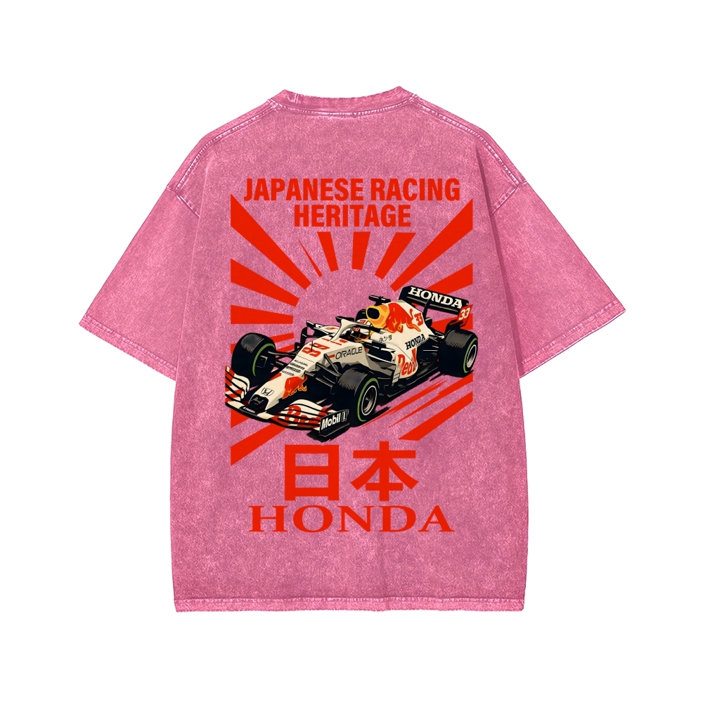 Tokyo-Assassin Honda Red Bull F1 Front And Back Printing Washed T-shirt