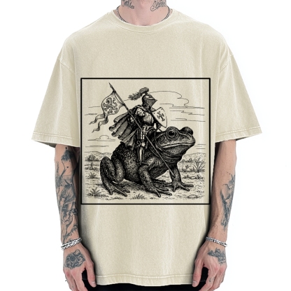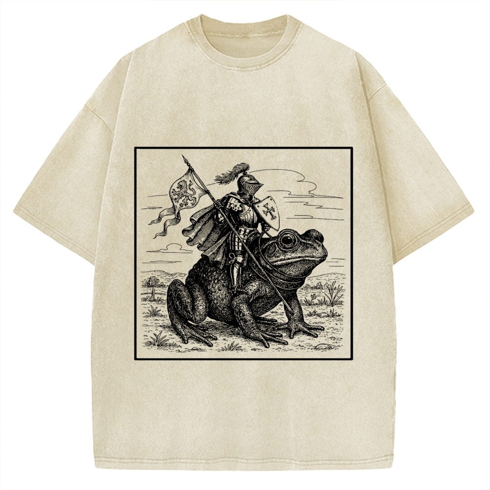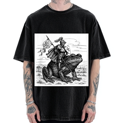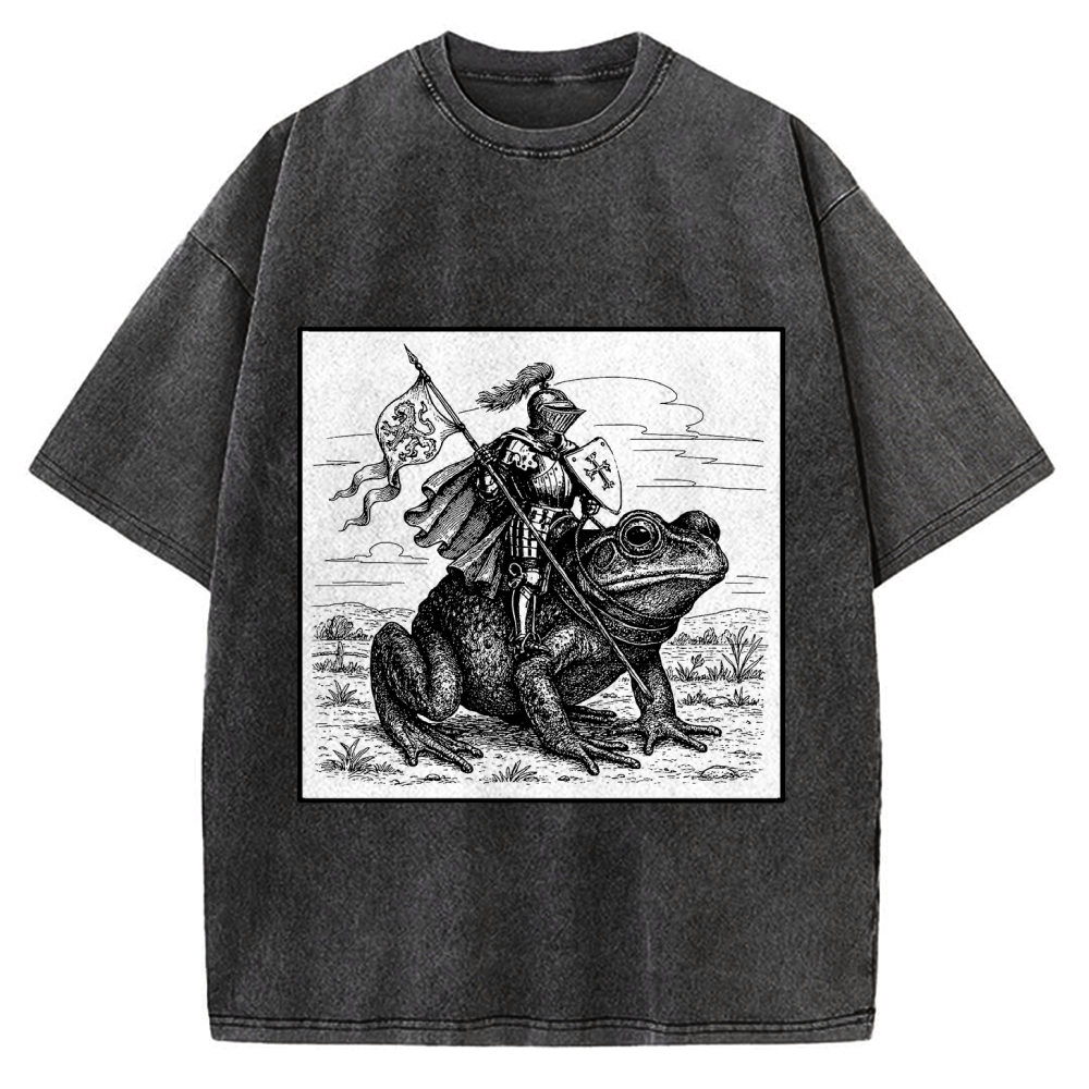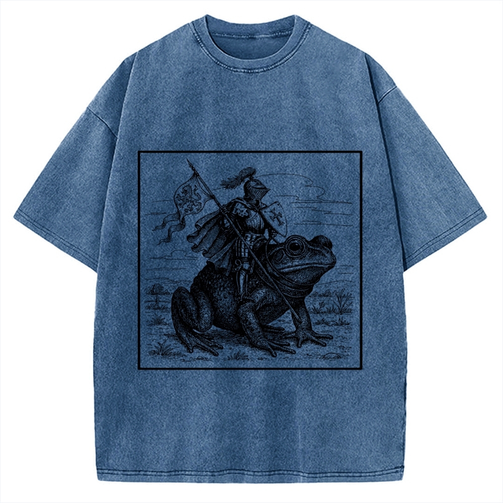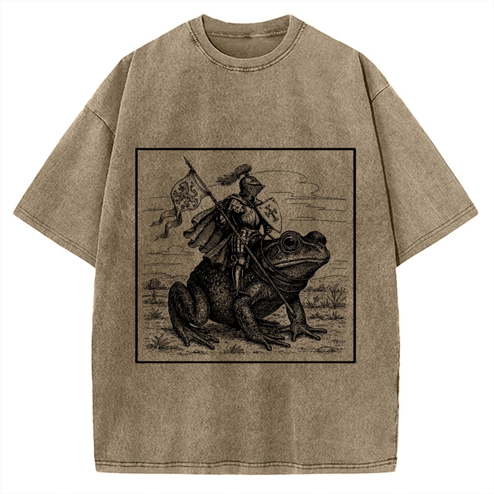 Tokyo-Assassin Medieval Knight Frog Meme Renaissance Fair Frog Knight Rider Funny Medieval Vintage Washed T-shirt