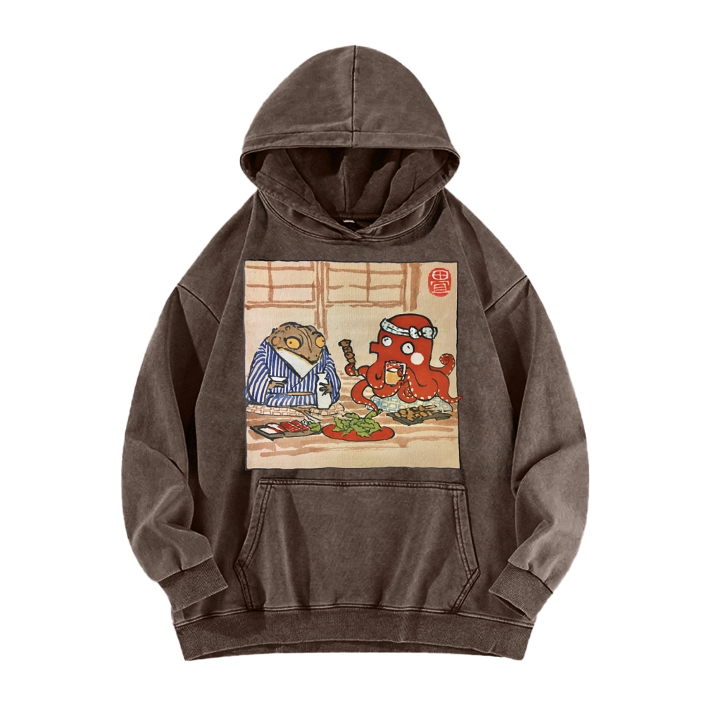 Tokyo-Assassin Monster Gathering Funny Vintage Washed Hoodie