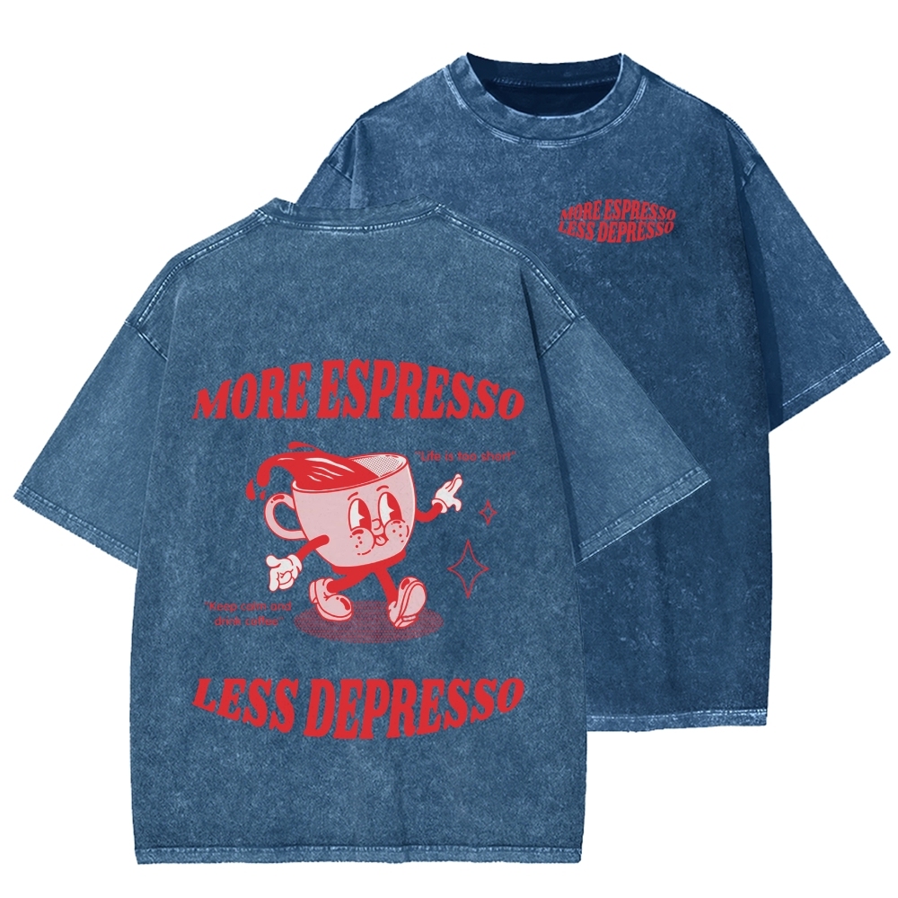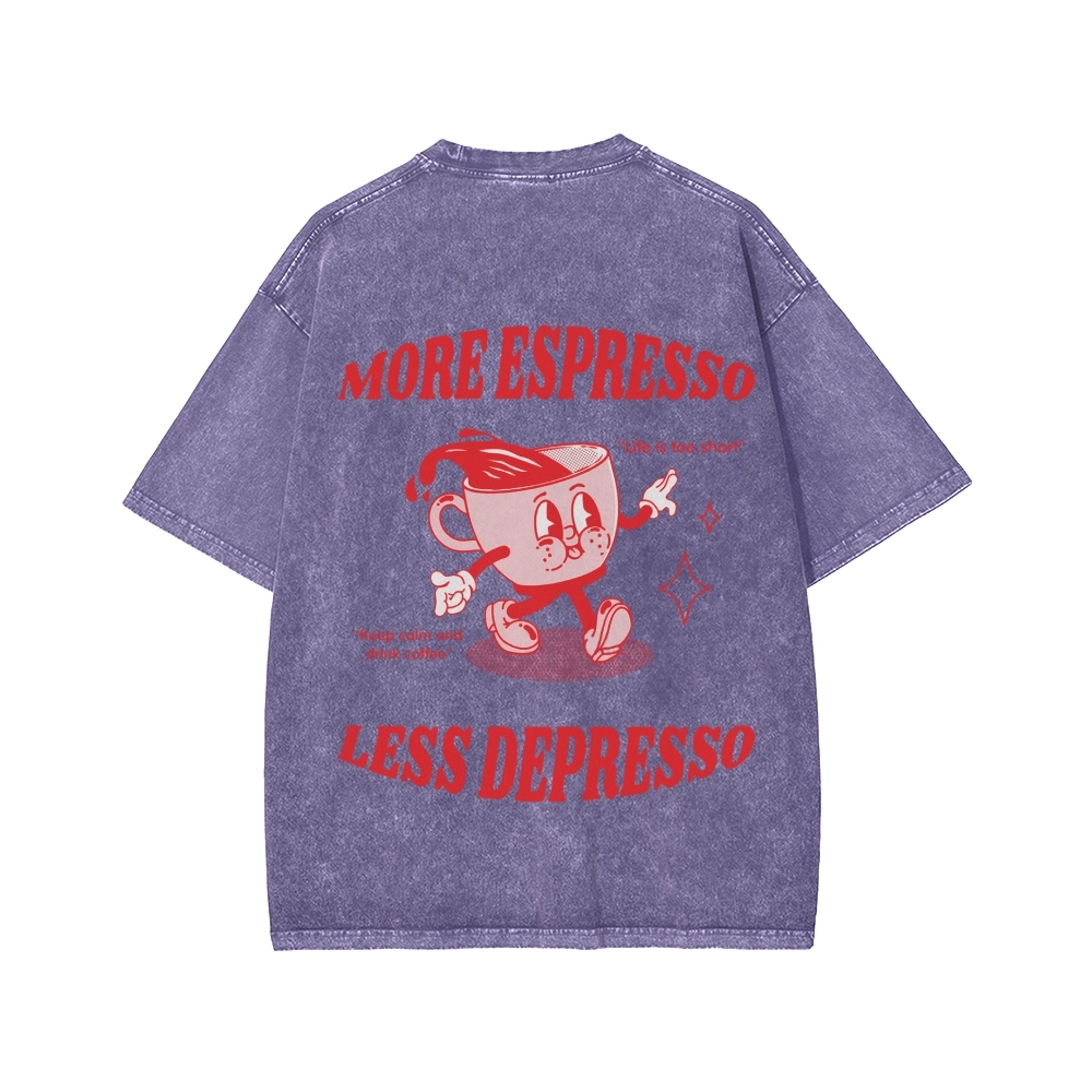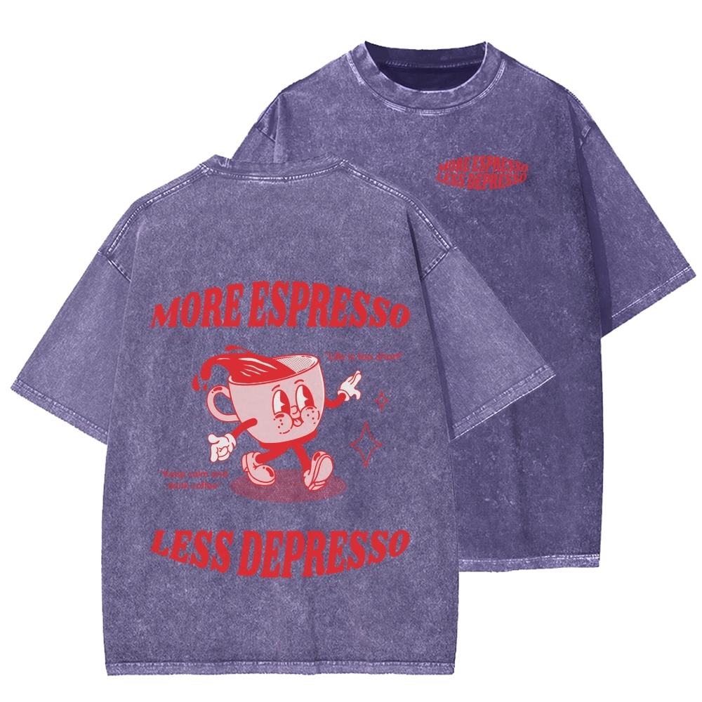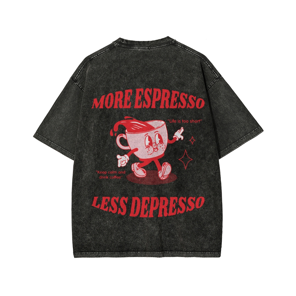 Tokyo-Assassin More Espresso Less Depresso Funny Coffee Front And Back Printing Washed T-shirt