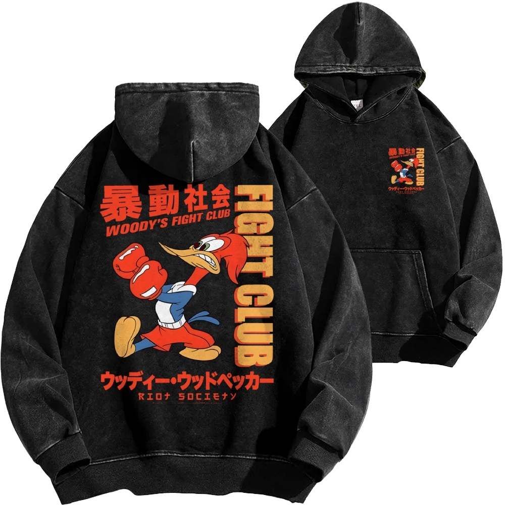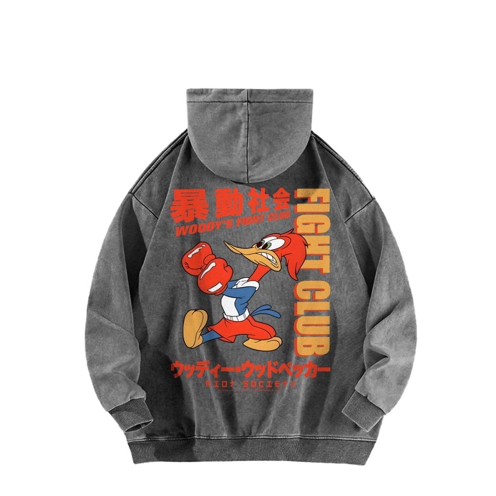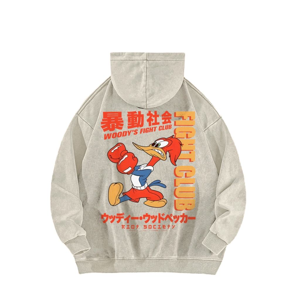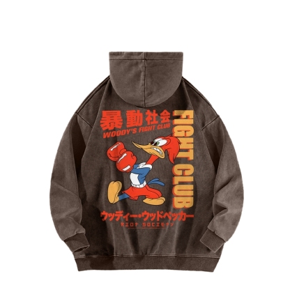 Tokyo-Assassin Riot Society Front And Back Printing Vintage Washed Hoodie