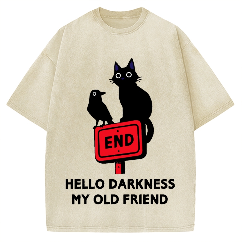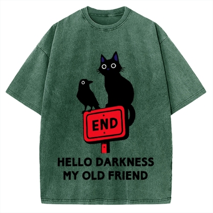 Tokyo-Assassin Black cat and crow hello darkness my old friend Vintage Washed T-shirt
