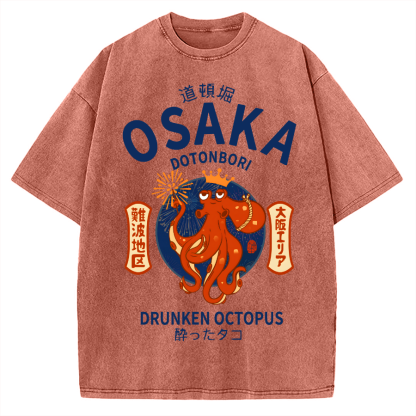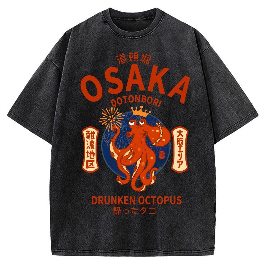 Tokyo-Assassin Osaka Dotonbori Drunken Octopus Vintage Wash Japanese Vintage Washed T-shirt