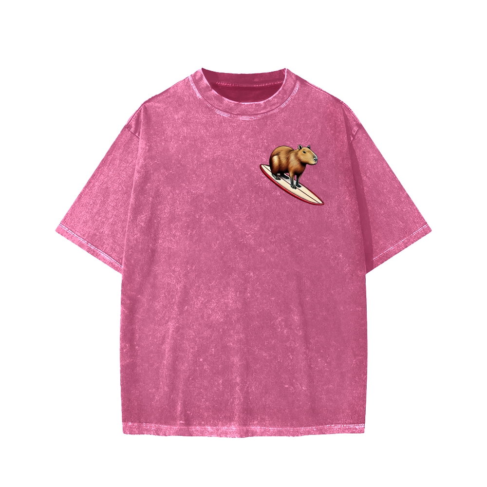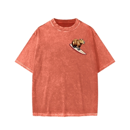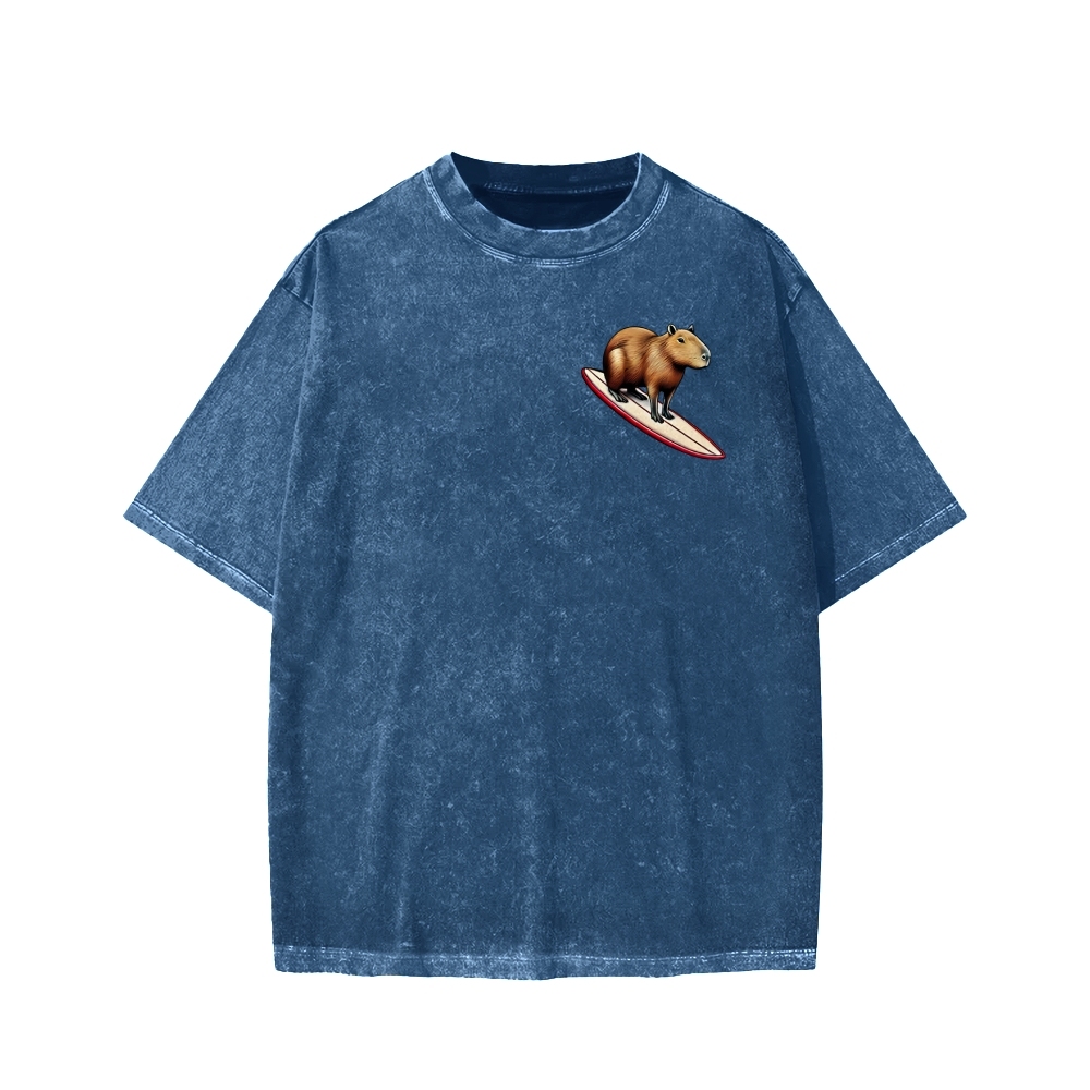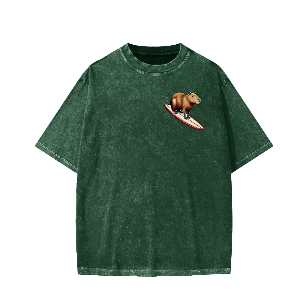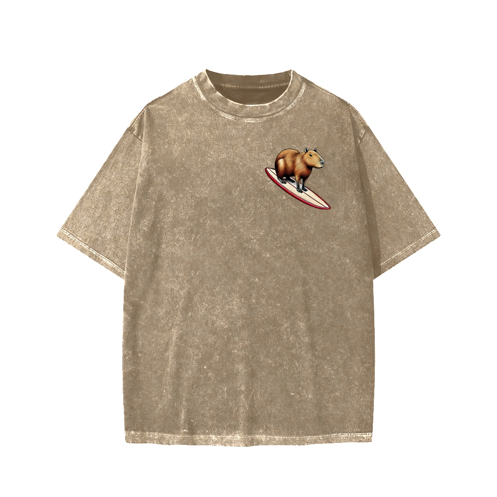 Tokyo-Assassin Capybara Kanagawa Wave Surf Japanese Art Printing Front And Back Printing Washed T-shirt