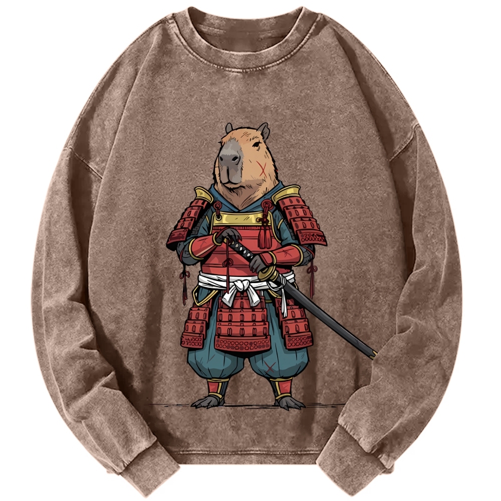 Tokyo-Assassin Capybara Samurai Vintage Washed Sweatshirts