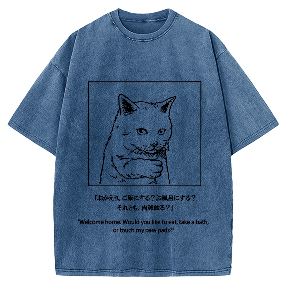 Tokyo-Assassin Cat welcome home would you like to eat take a bath or touch my paw pads Vintage Washed T-shirt