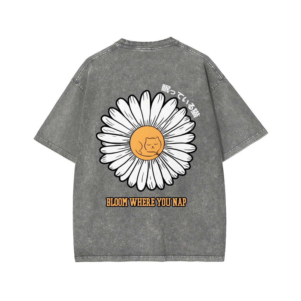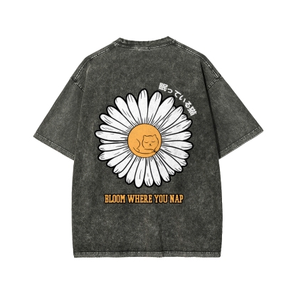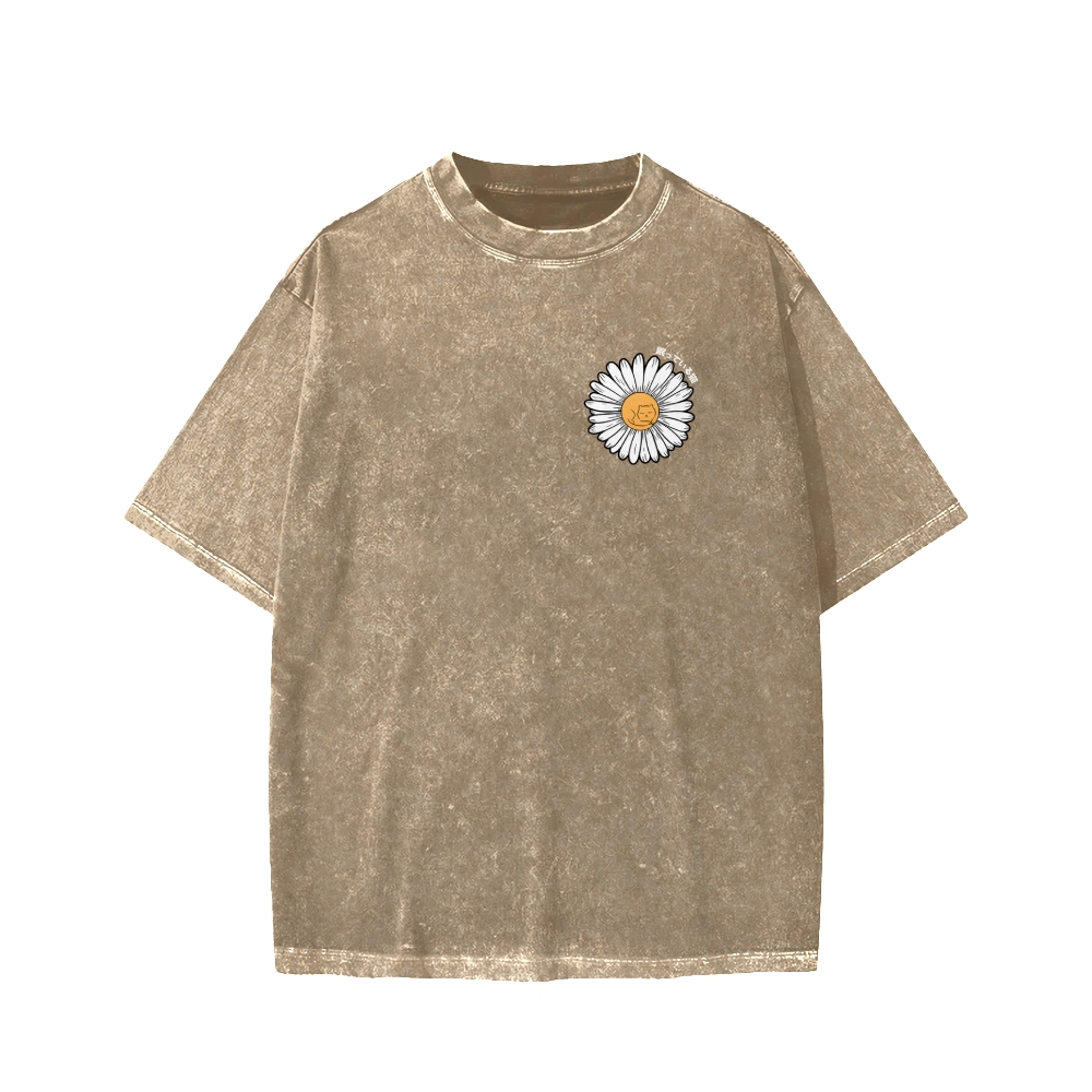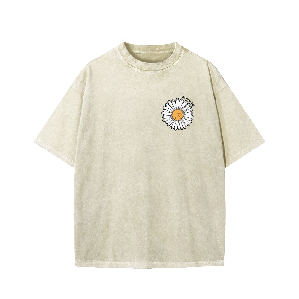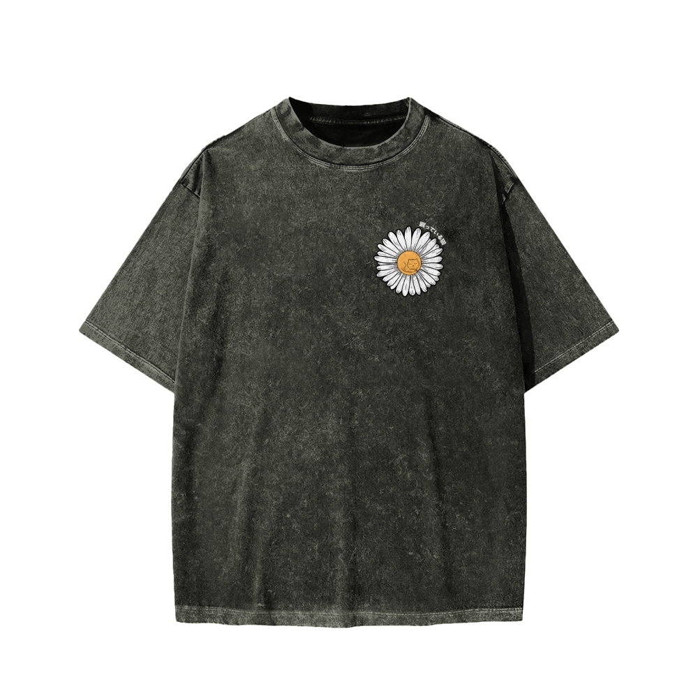 Tokyo-Assassin Daisy Cat Front And Back Printing Washed T-shirt