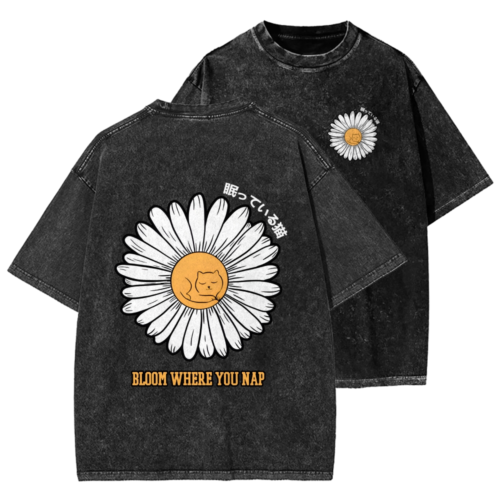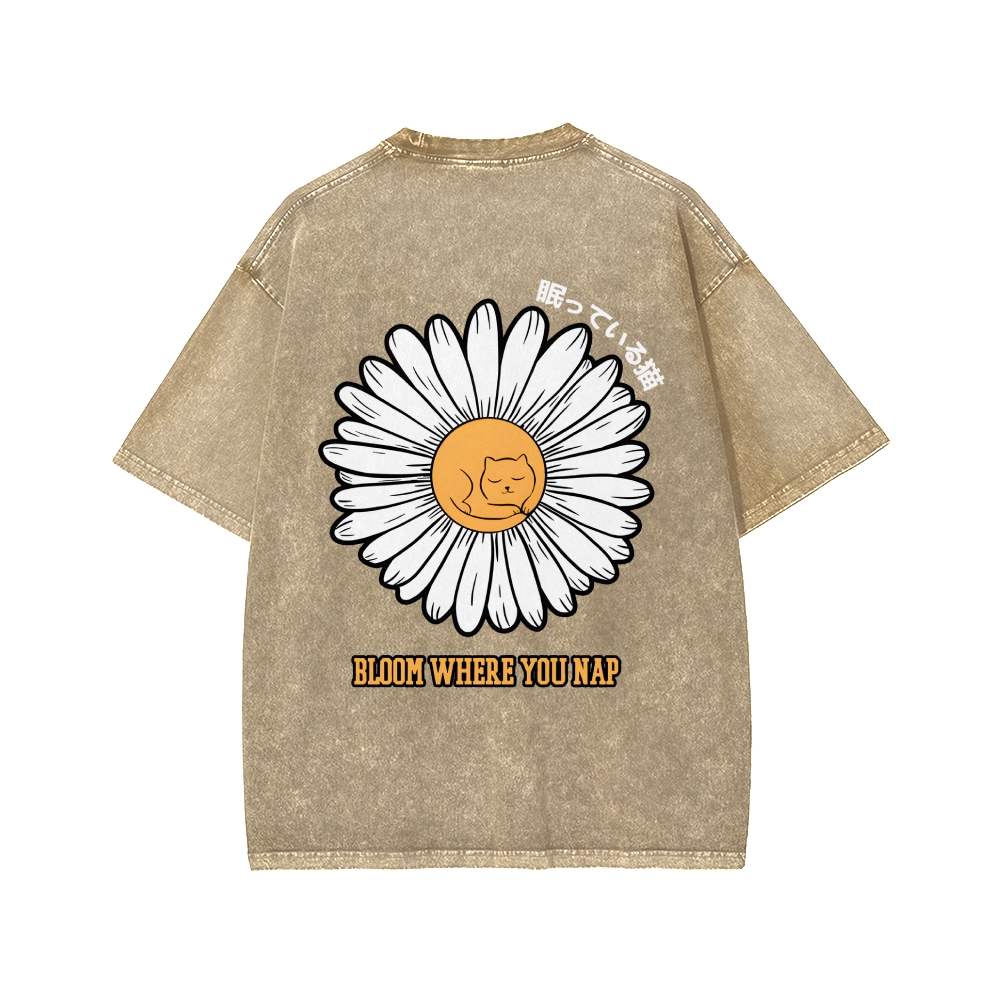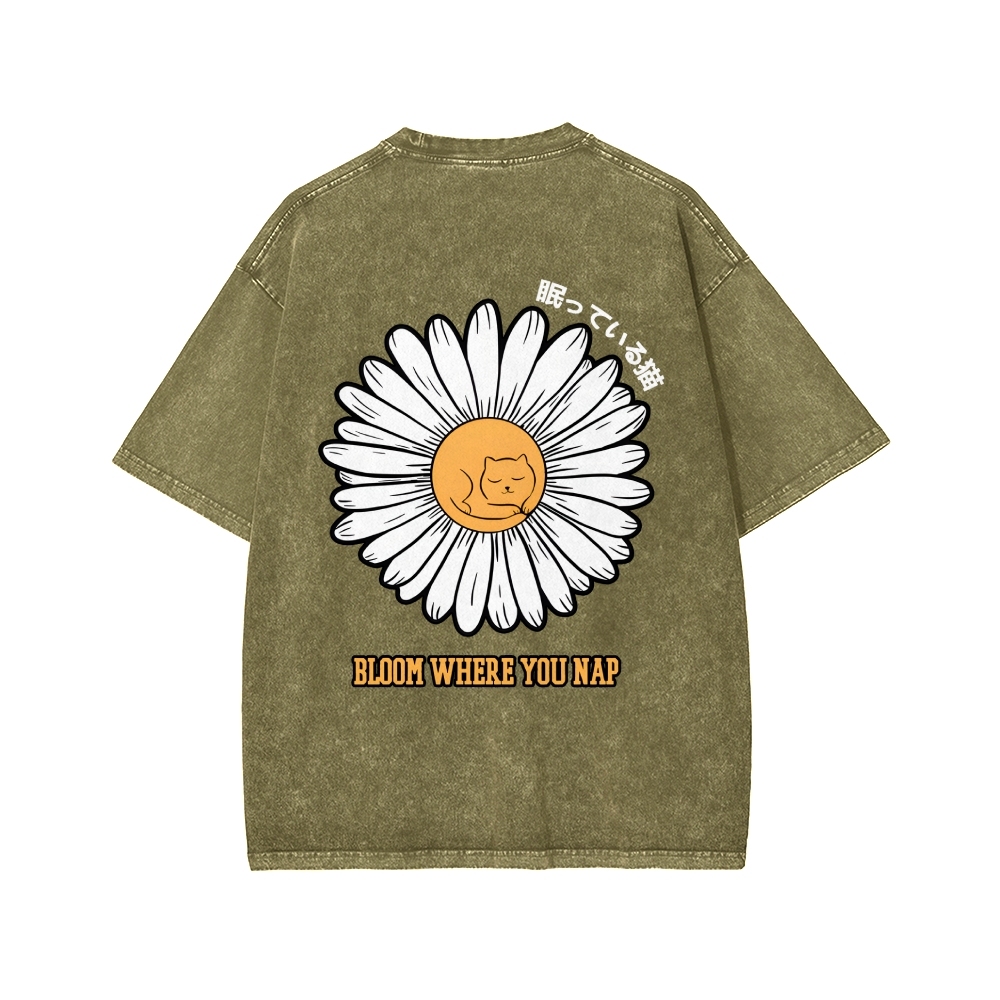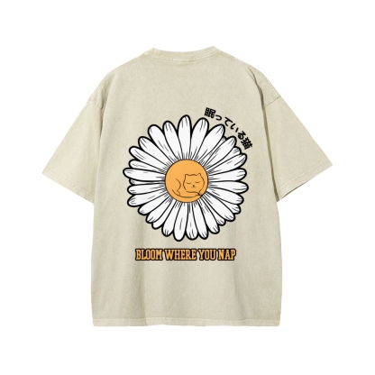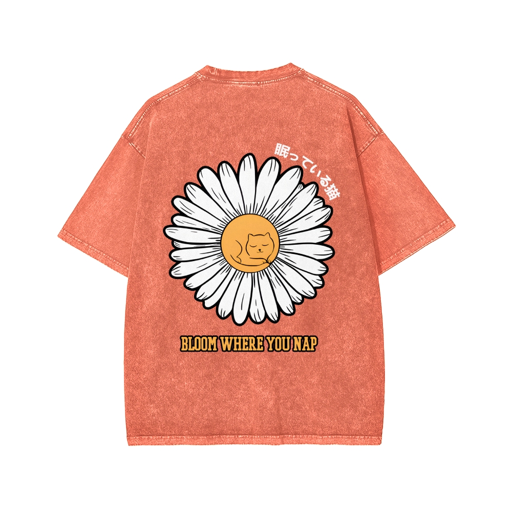 Tokyo-Assassin Daisy Cat Front And Back Printing Washed T-shirt