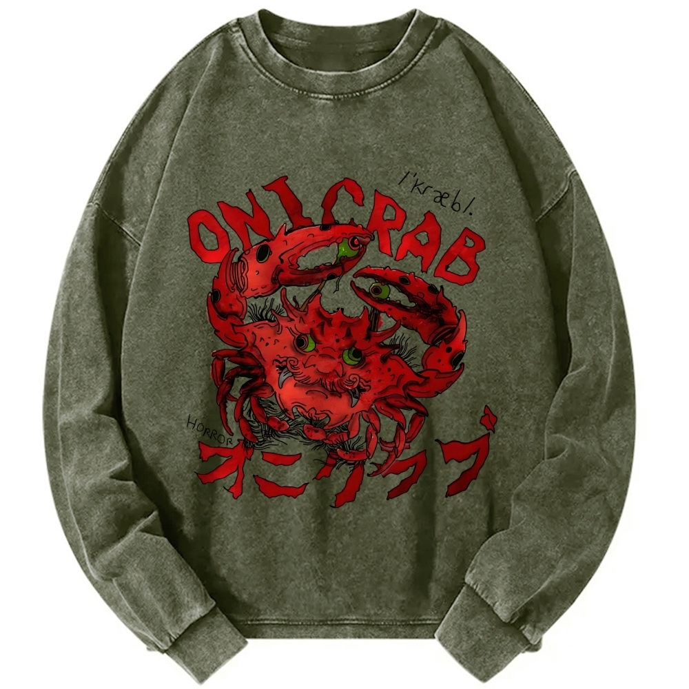 Tokyo-Assassin Evil Horror Oni Crab Yokai Japanese Vintage Washed Sweatshirts