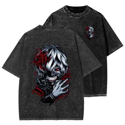 Tokyo-Assassin Front And Back Printing Washed T-shirt