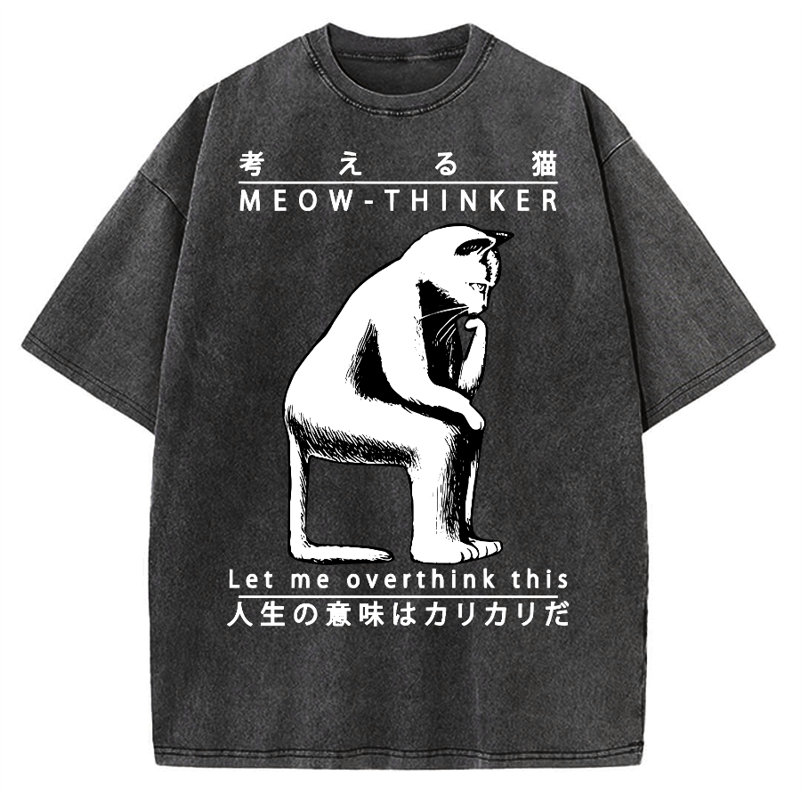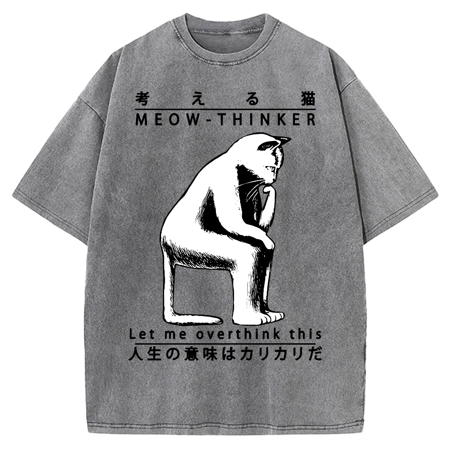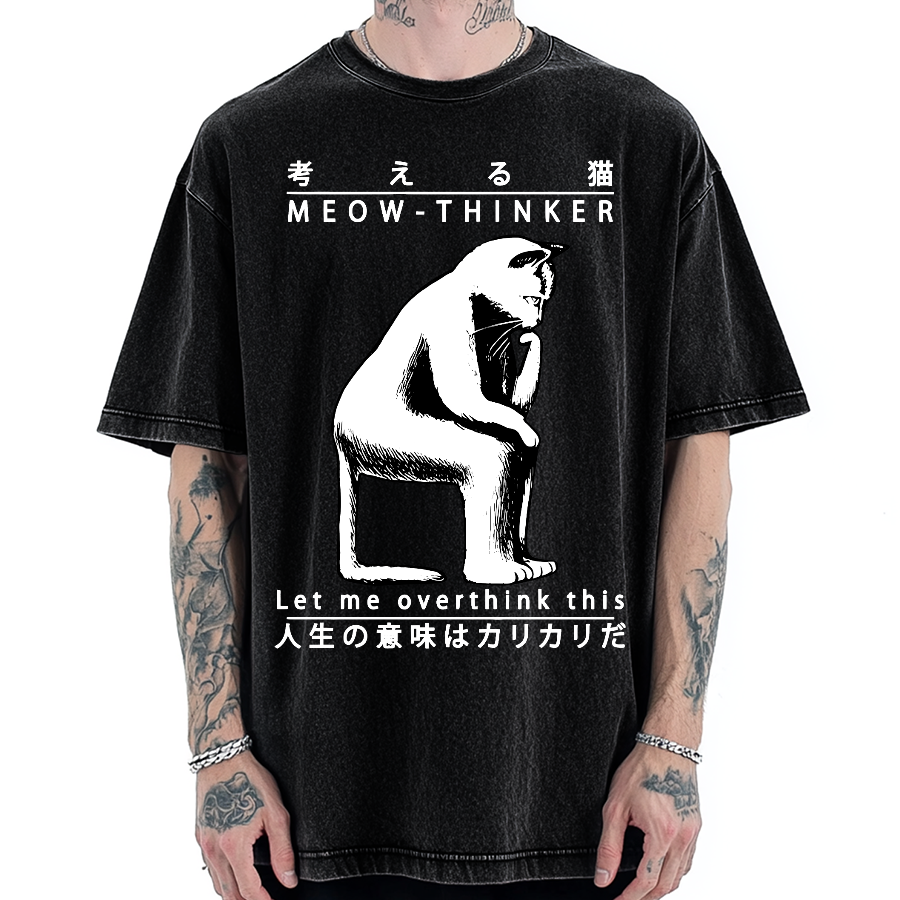 Tokyo-Assassin Funny Cat Thinker Vintage Washed T-shirt
