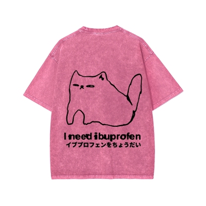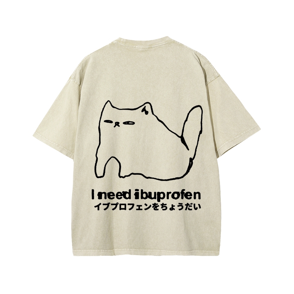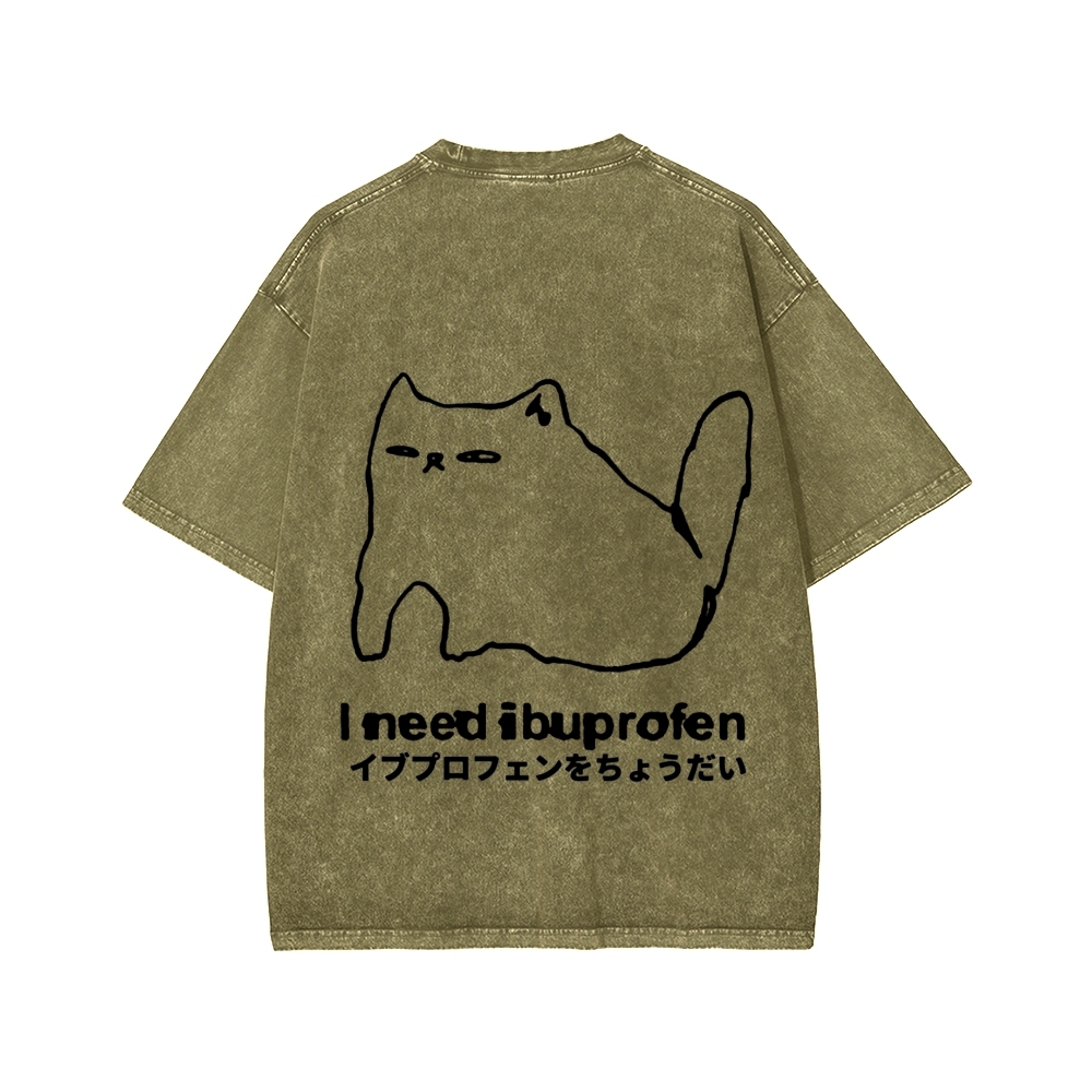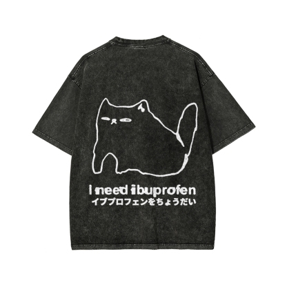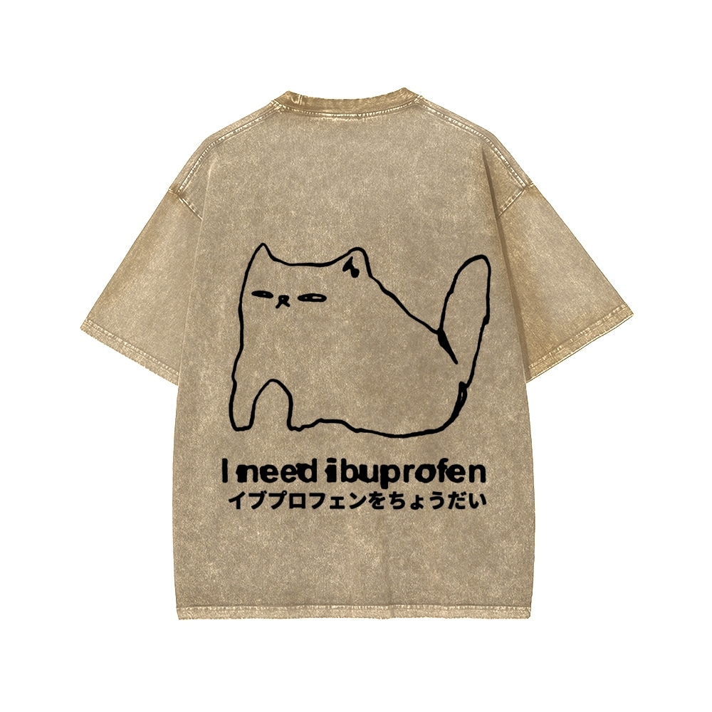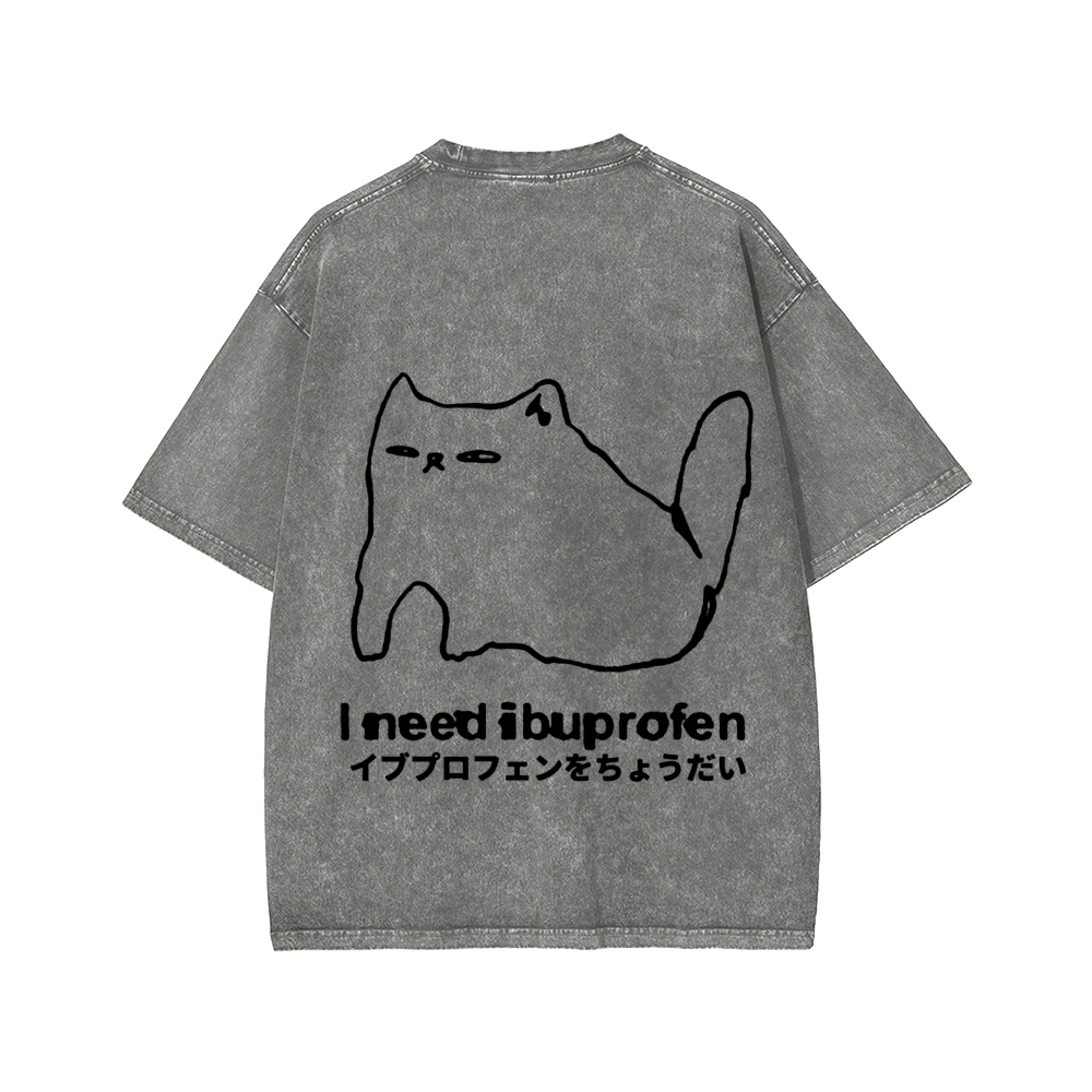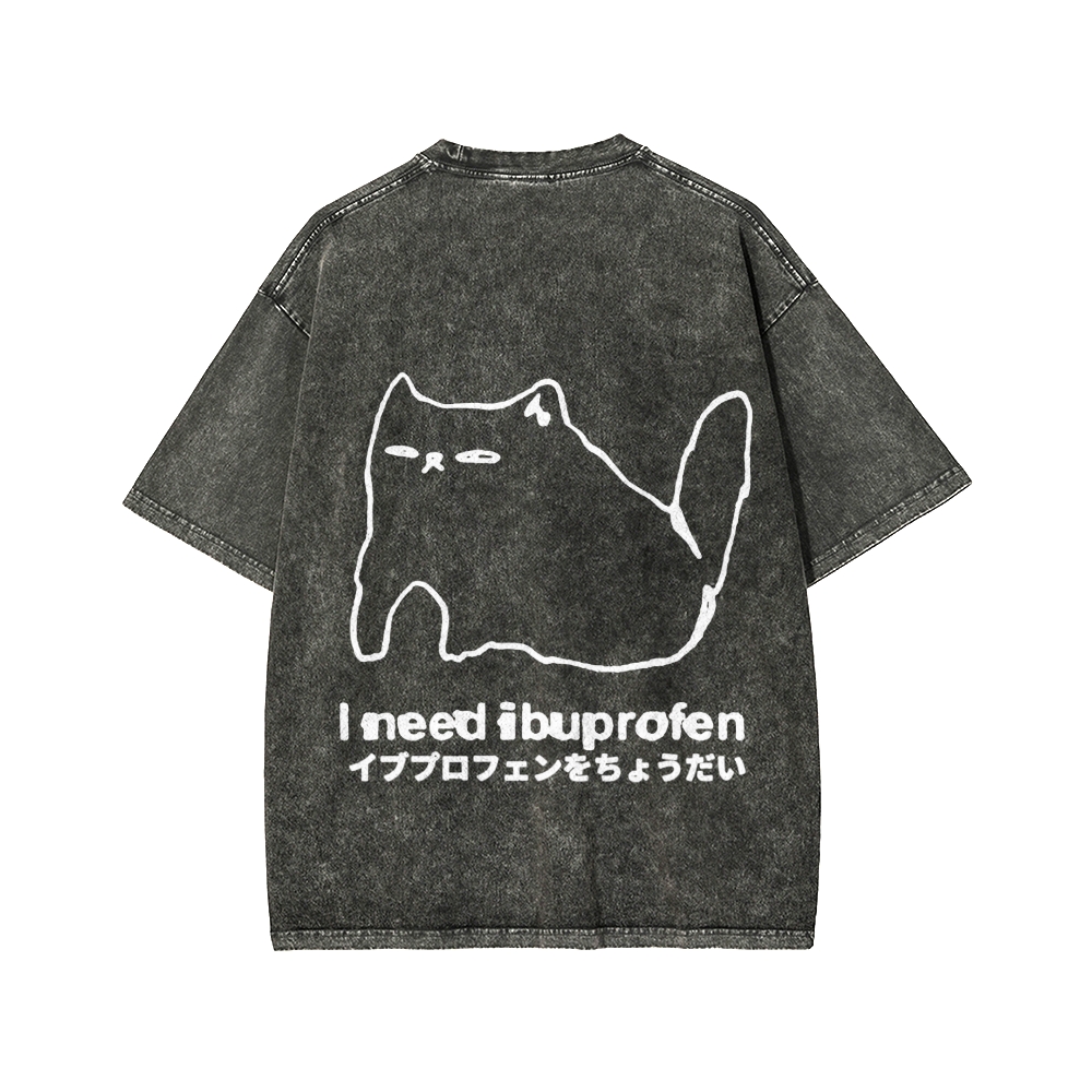 Tokyo-Assassin I need ibuprofen Cat Vintage Distressed Front And Back Printing Washed T-shirt