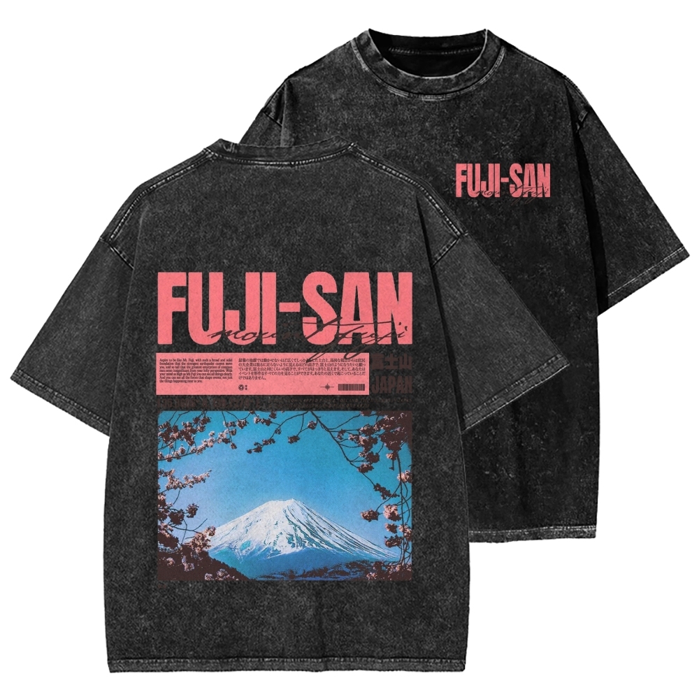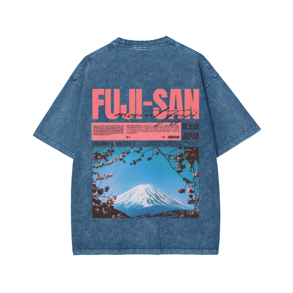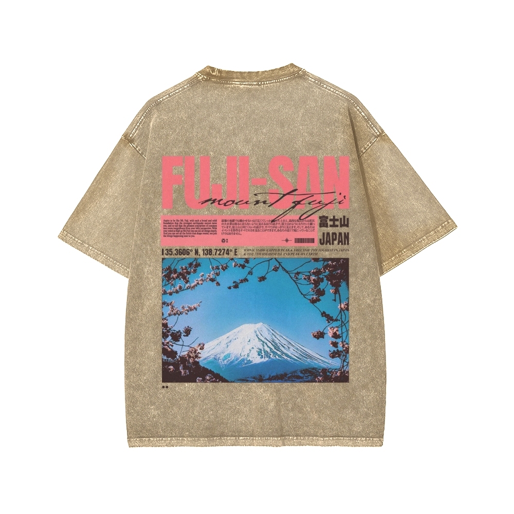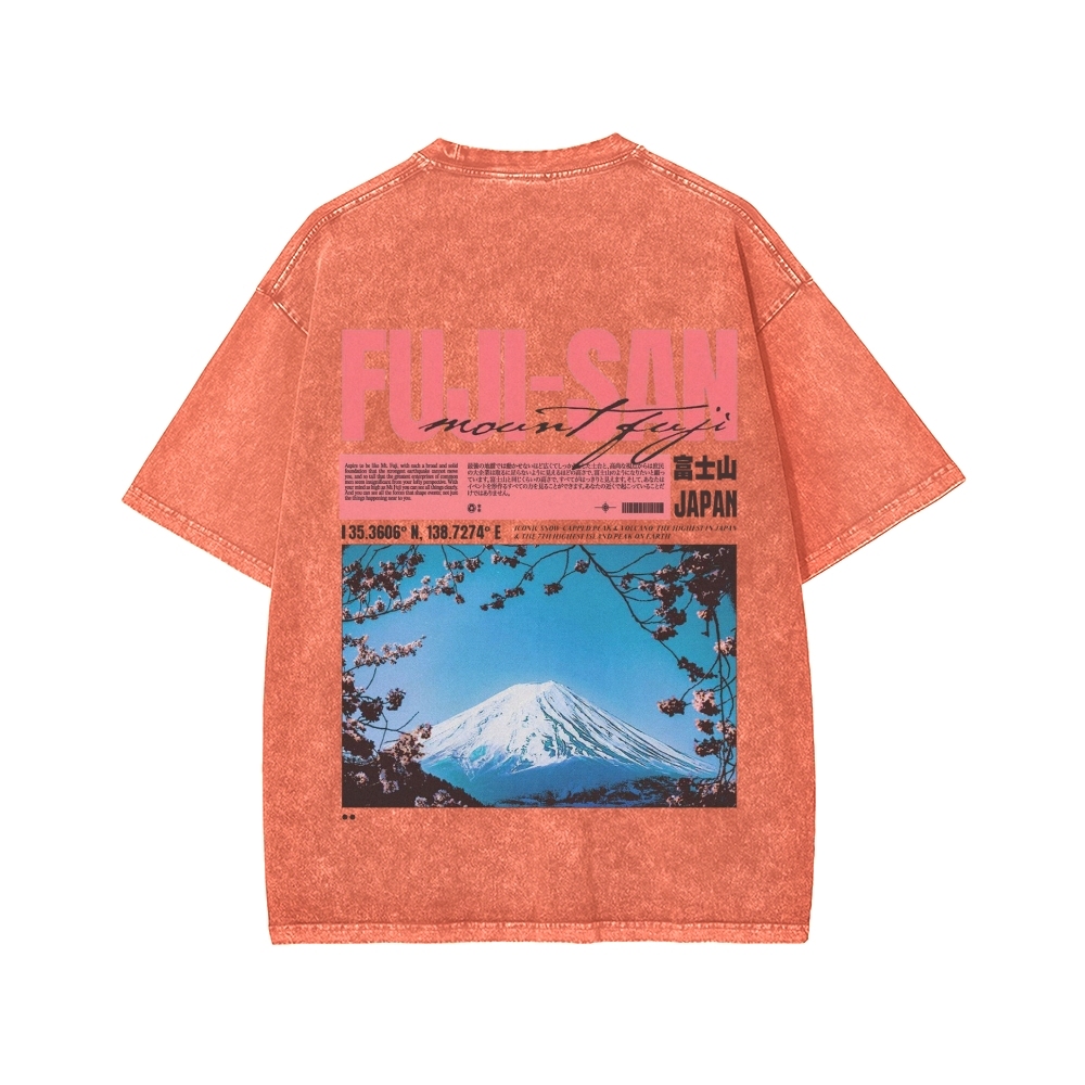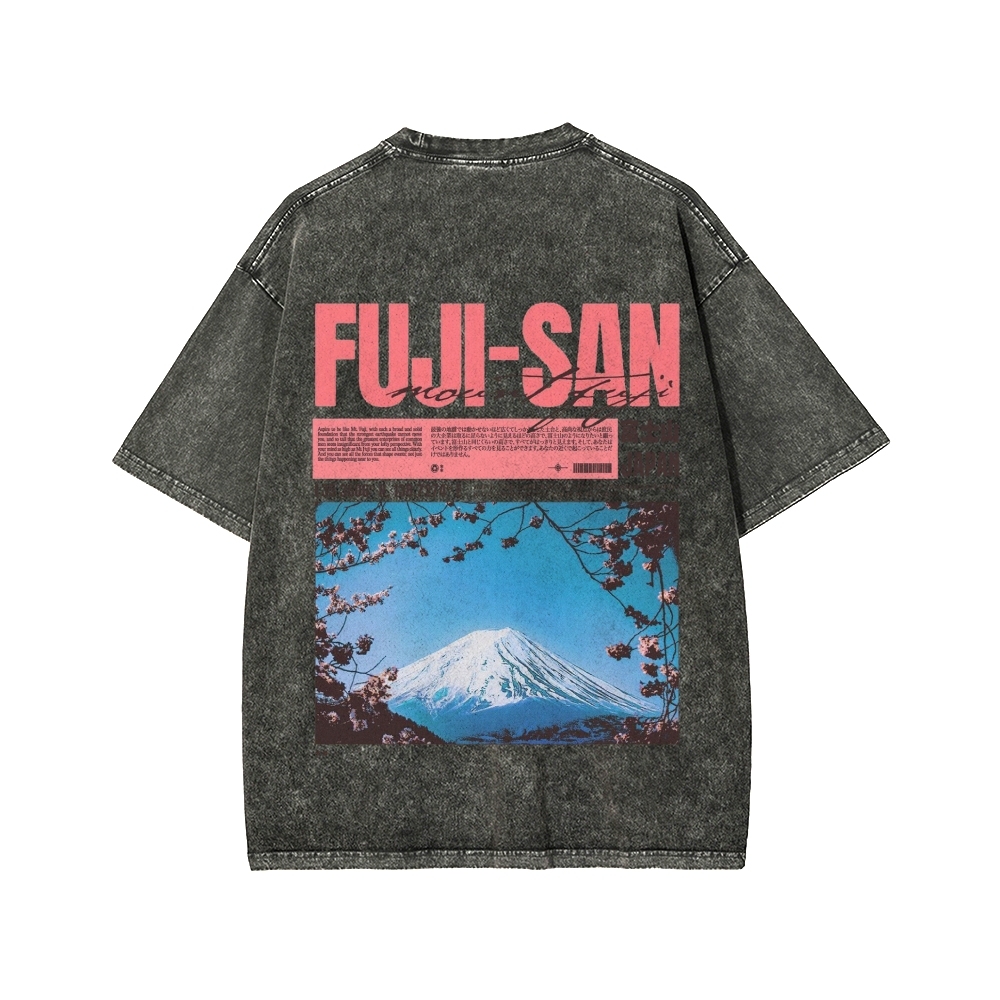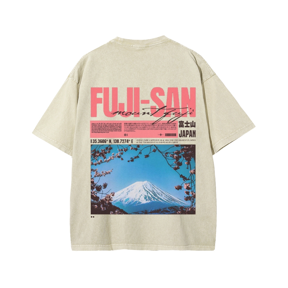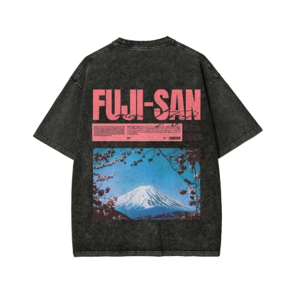 Tokyo-Assassin Mt Fuji Fuji-san Front And Back Printing Washed T-shirt