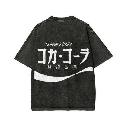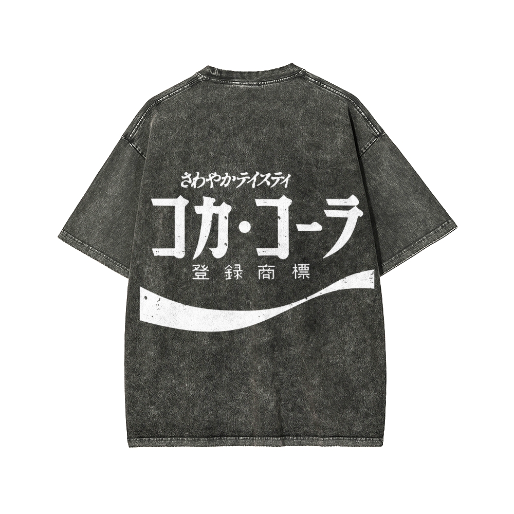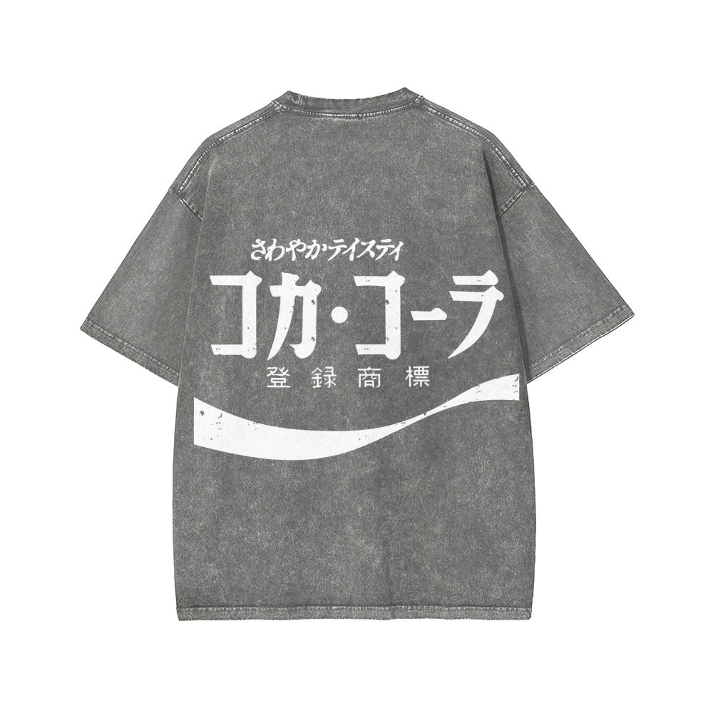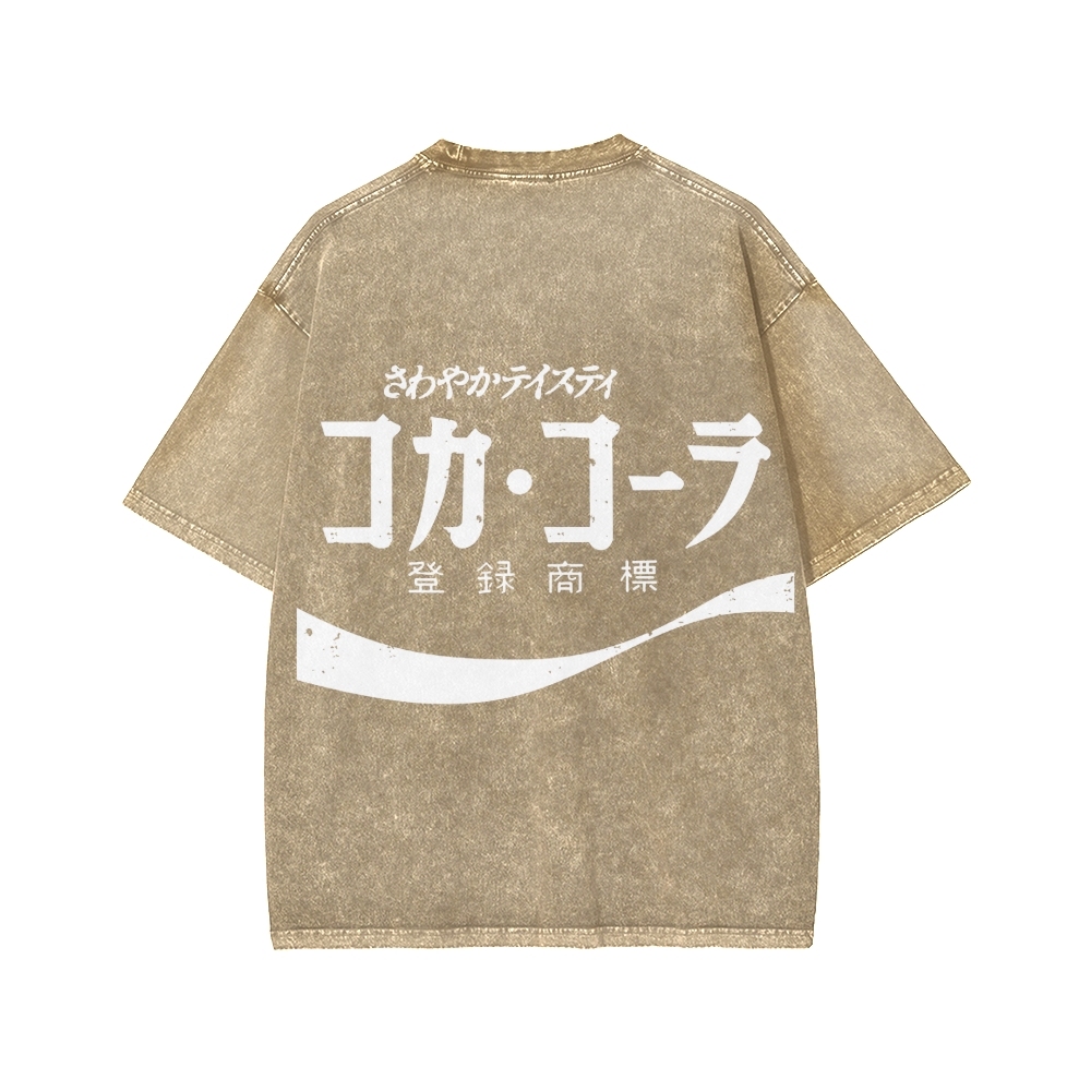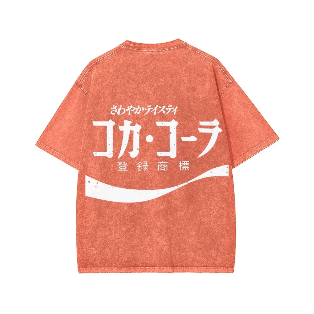 Tokyo-Assassin Retro Coke Cola Japanese Front And Back Printing Washed T-shirt