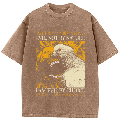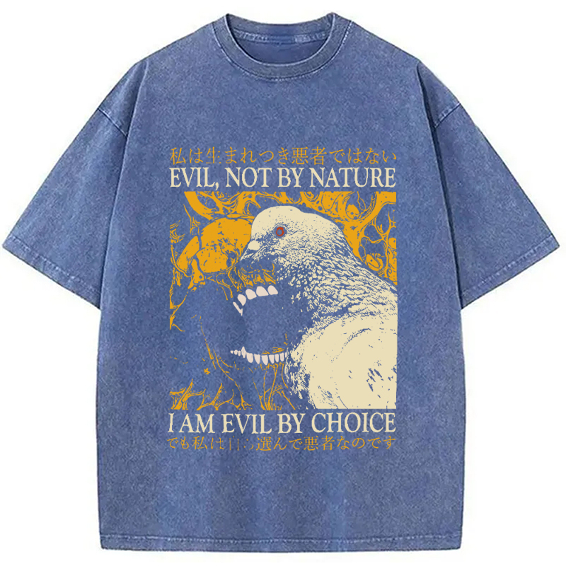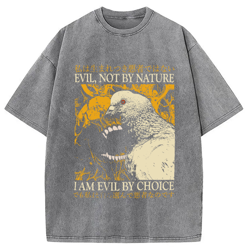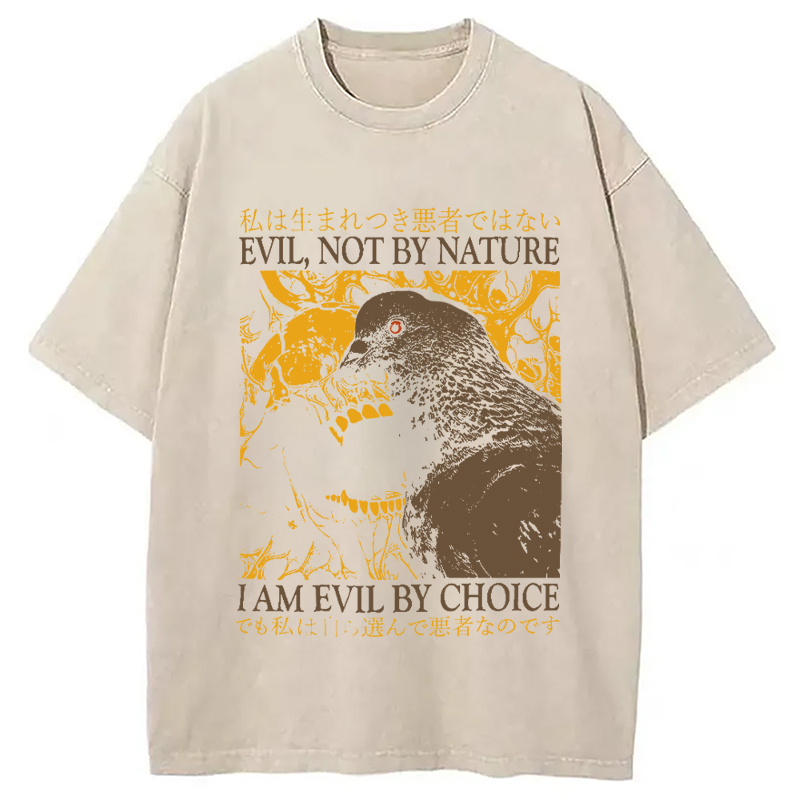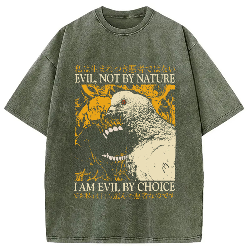 Tokyo-Assassin Evil By Choice Funny Japanese Pigeon Washed T-Shirt