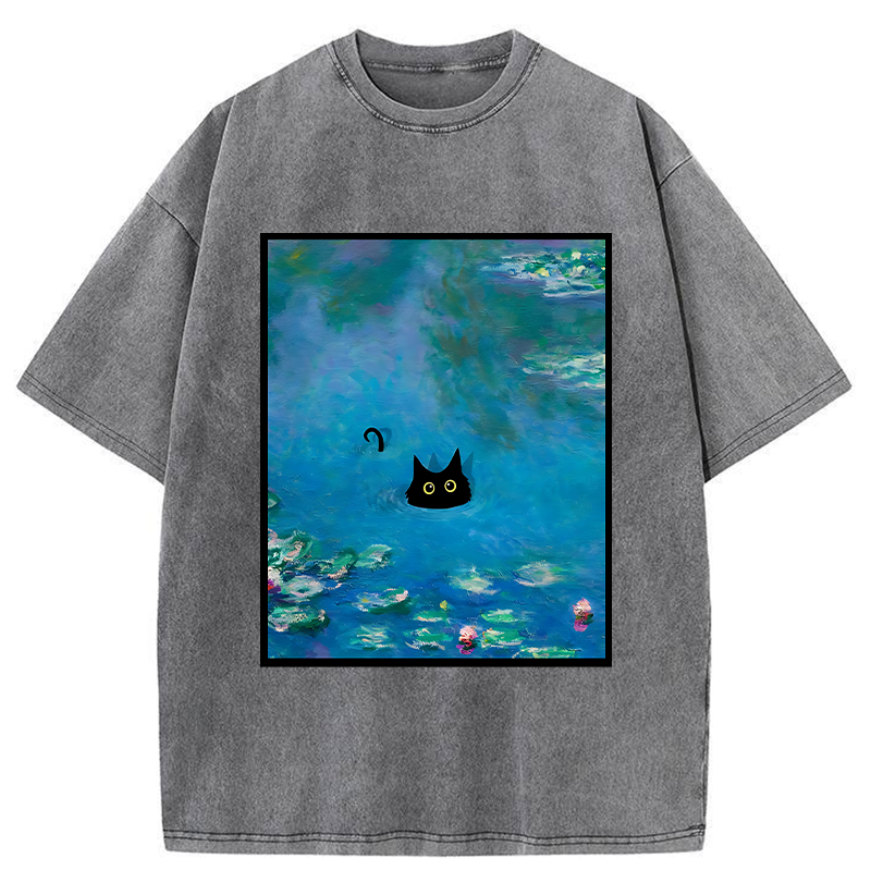 Tokyo-Assassin Monet Water Lily Cat Washed T-Shirt