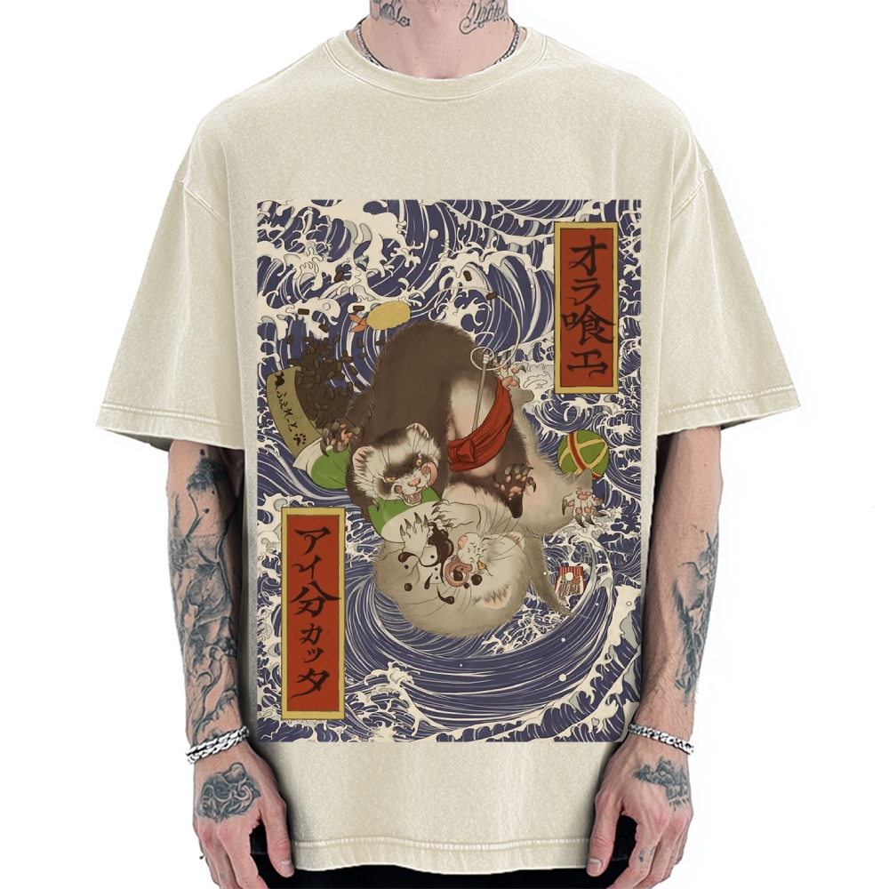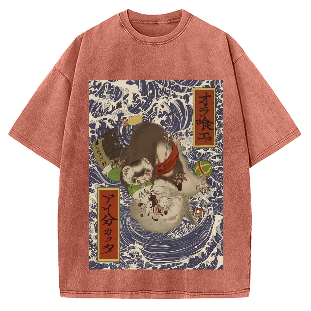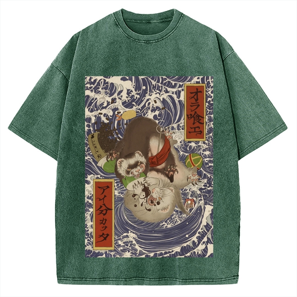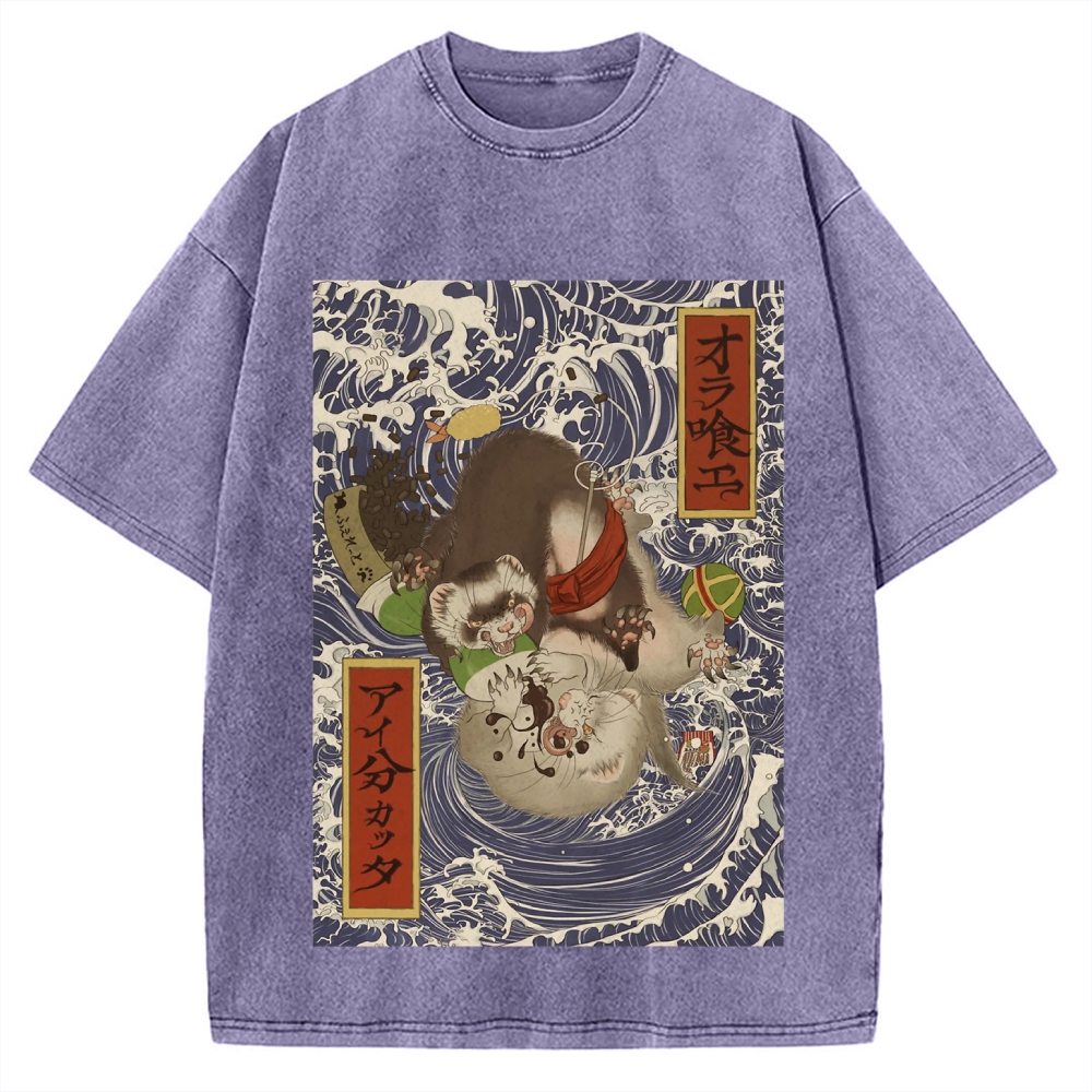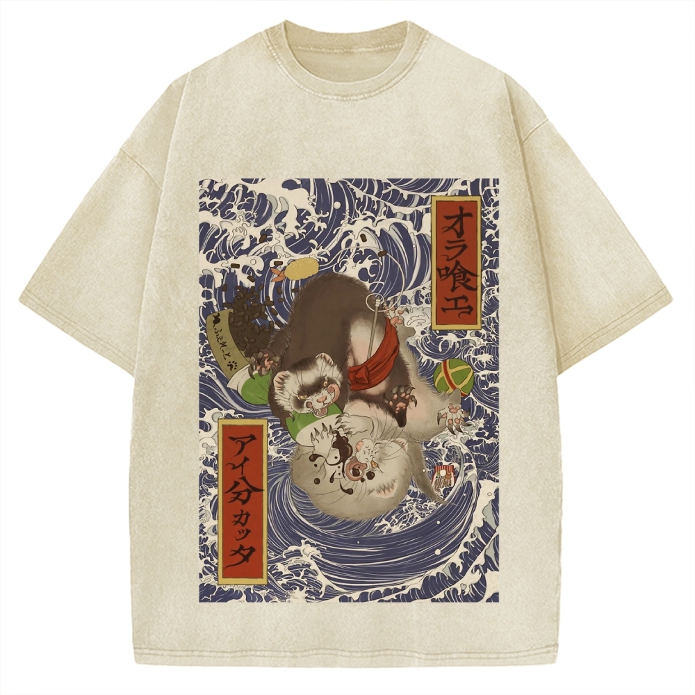 Tokyo-Assassin Ukiyoe style ferret Vintage Washed T-shirt
