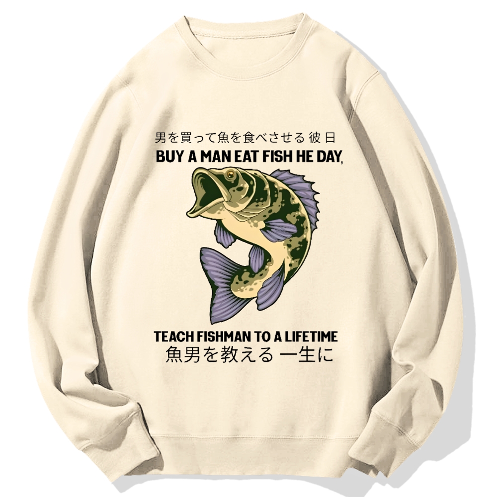 Tokyo-Assassin Buy A Man Eat Fish He Day, Teach Fishman To A Lifetime Cotton Sweatshirt
