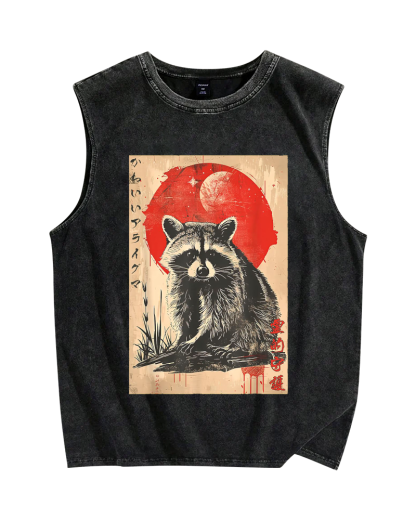Tokyo-Assassin Cute raccoon Vintage Distressed Washed Tank Top