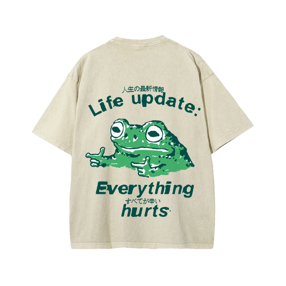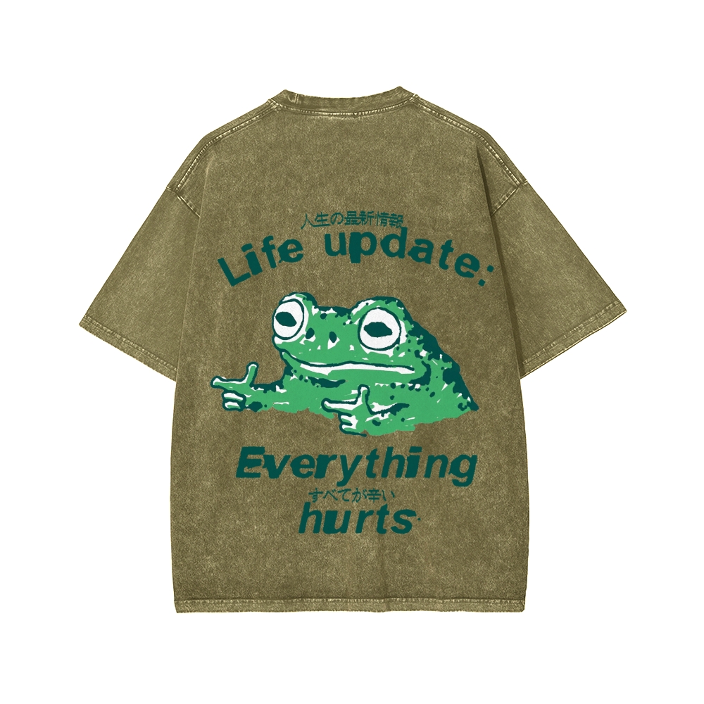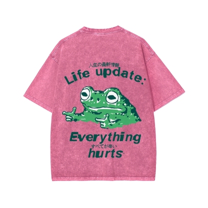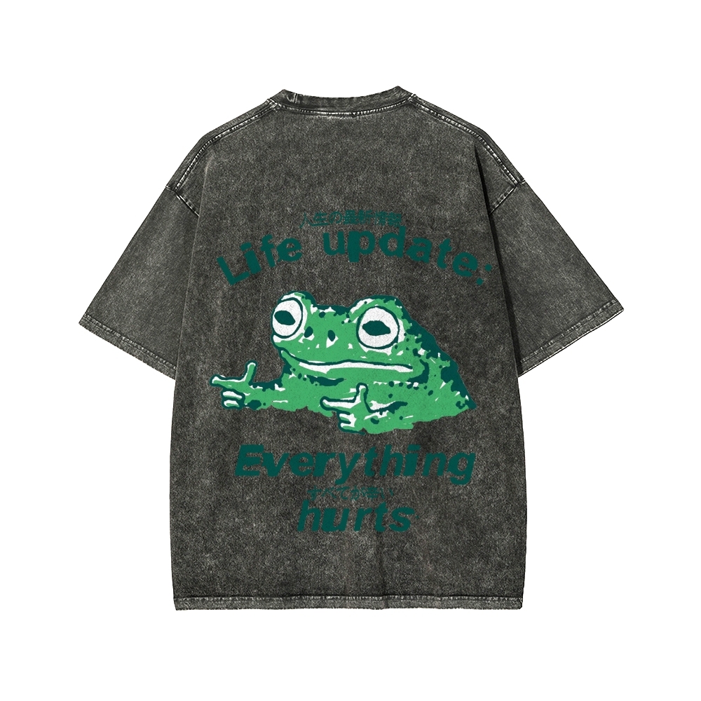 Tokyo-Assassin Everything Hard Frog Front And Back Printing Washed T-shirt