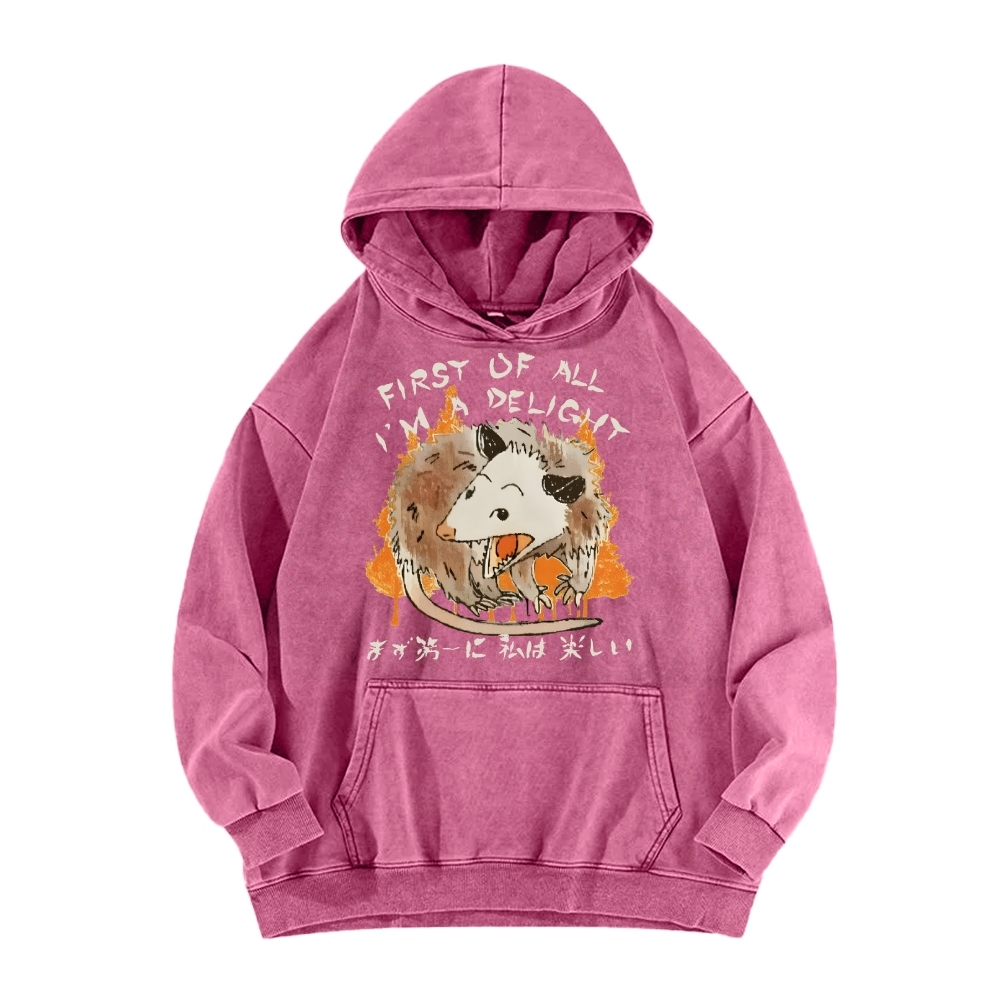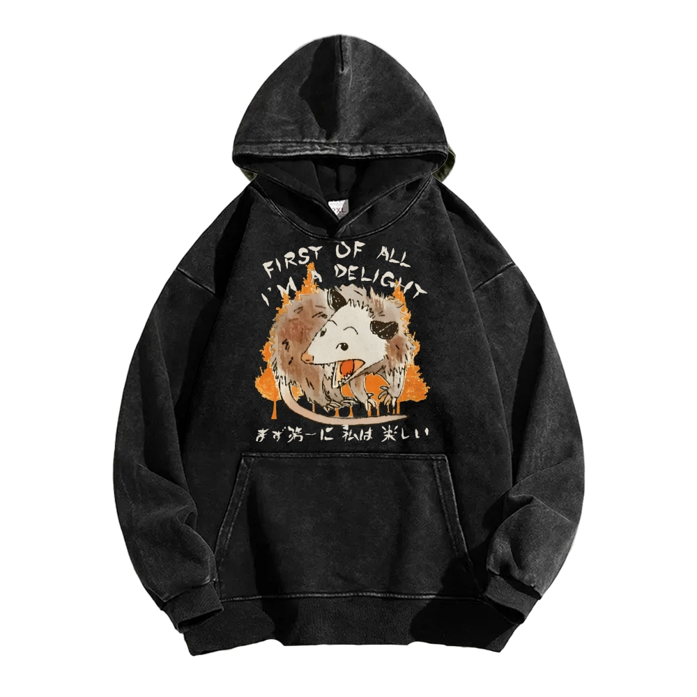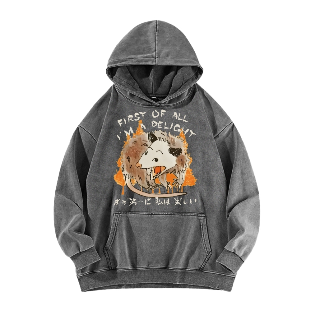 Tokyo-Assassin First Of All Im A Delight Opossum Harajuku Animal Vintage Washed Hoodie