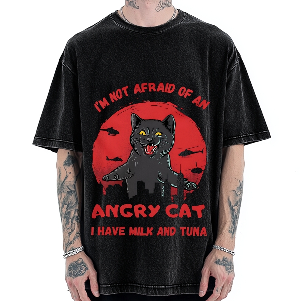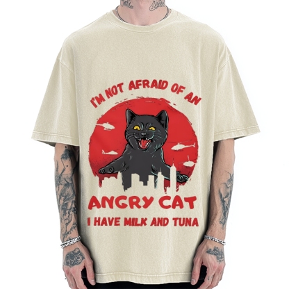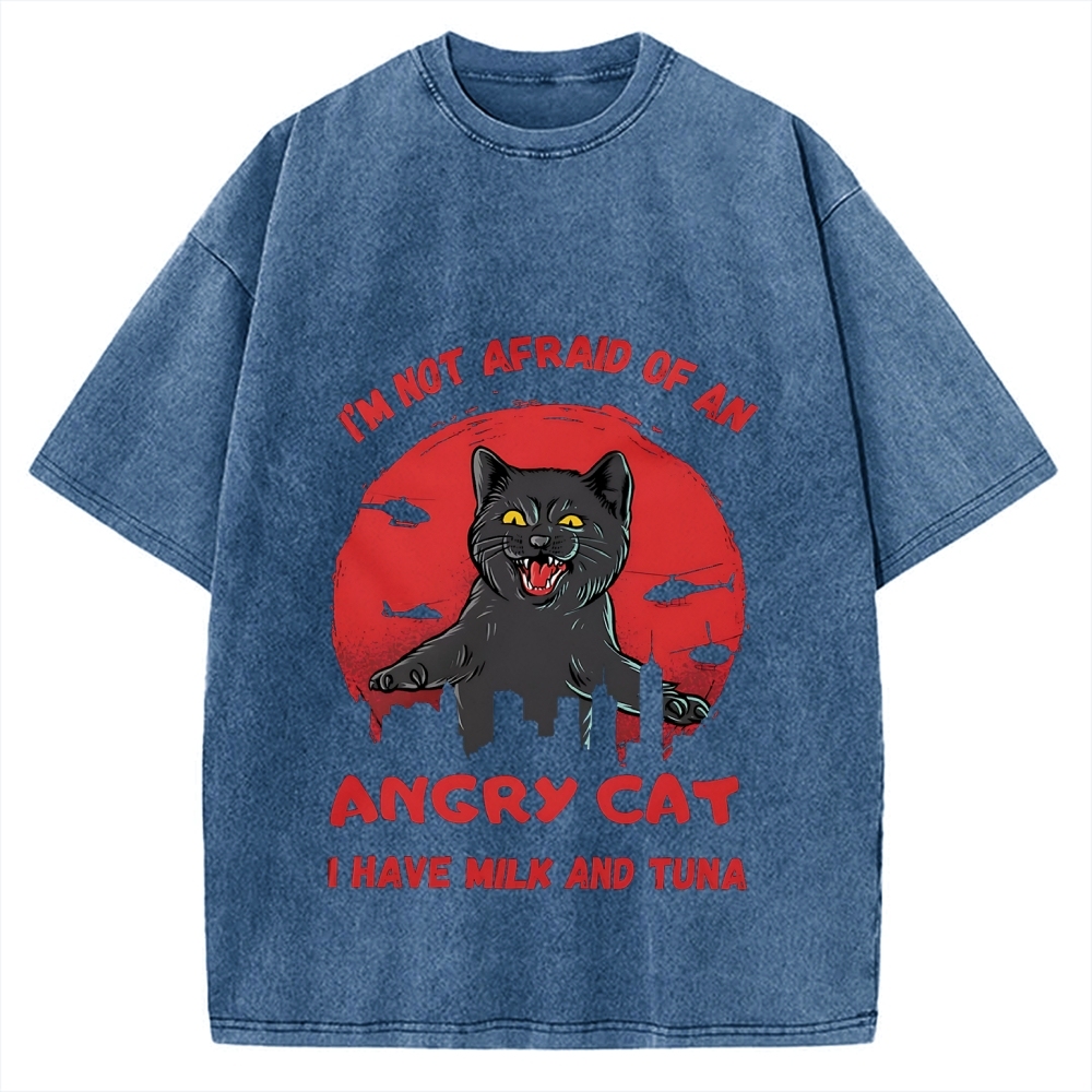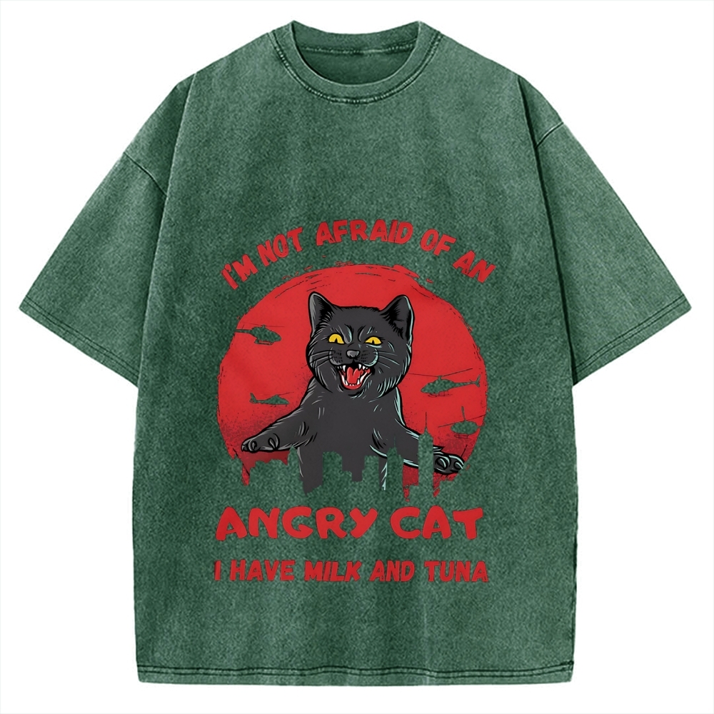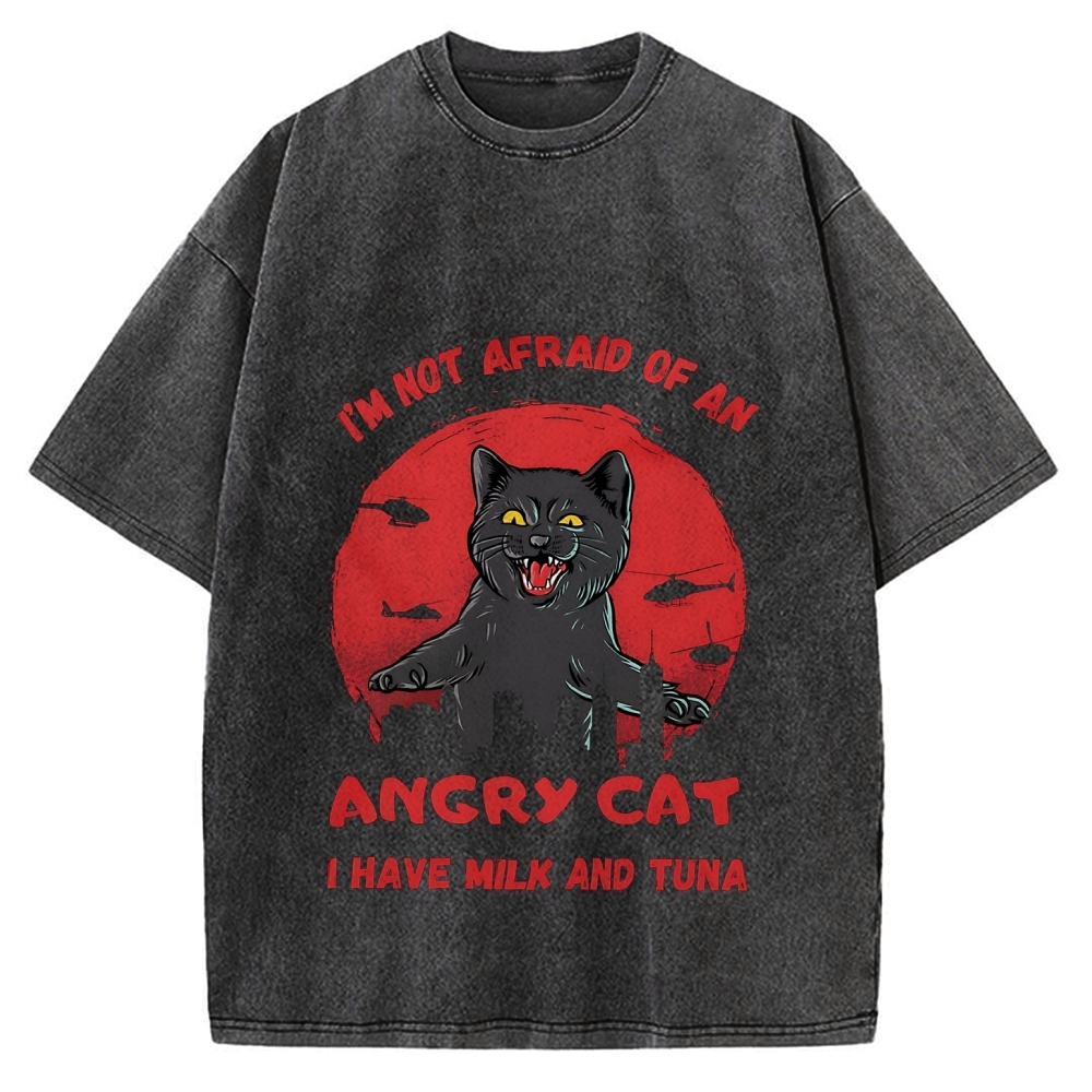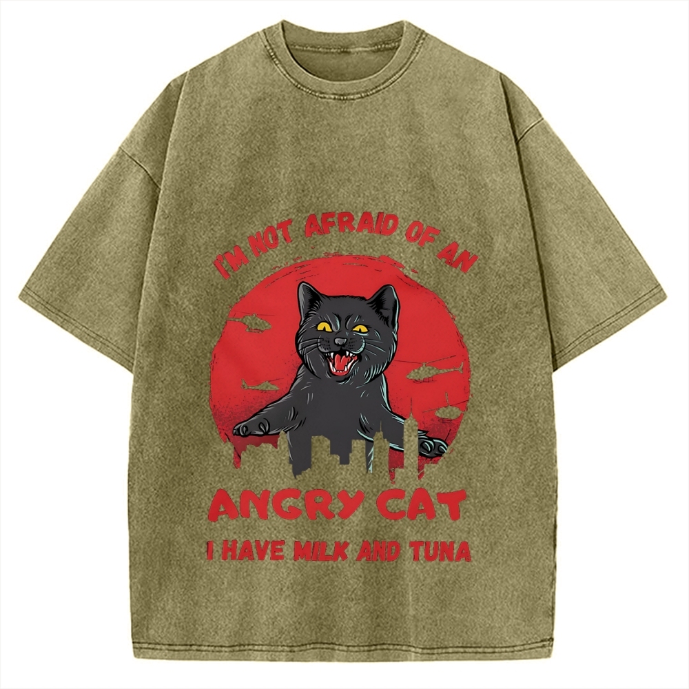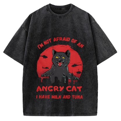 Tokyo-Assassin I'm not afraid of an angry cat. I have milk and tuna: Cat beast. Furious cat Vintage Washed T-shirt